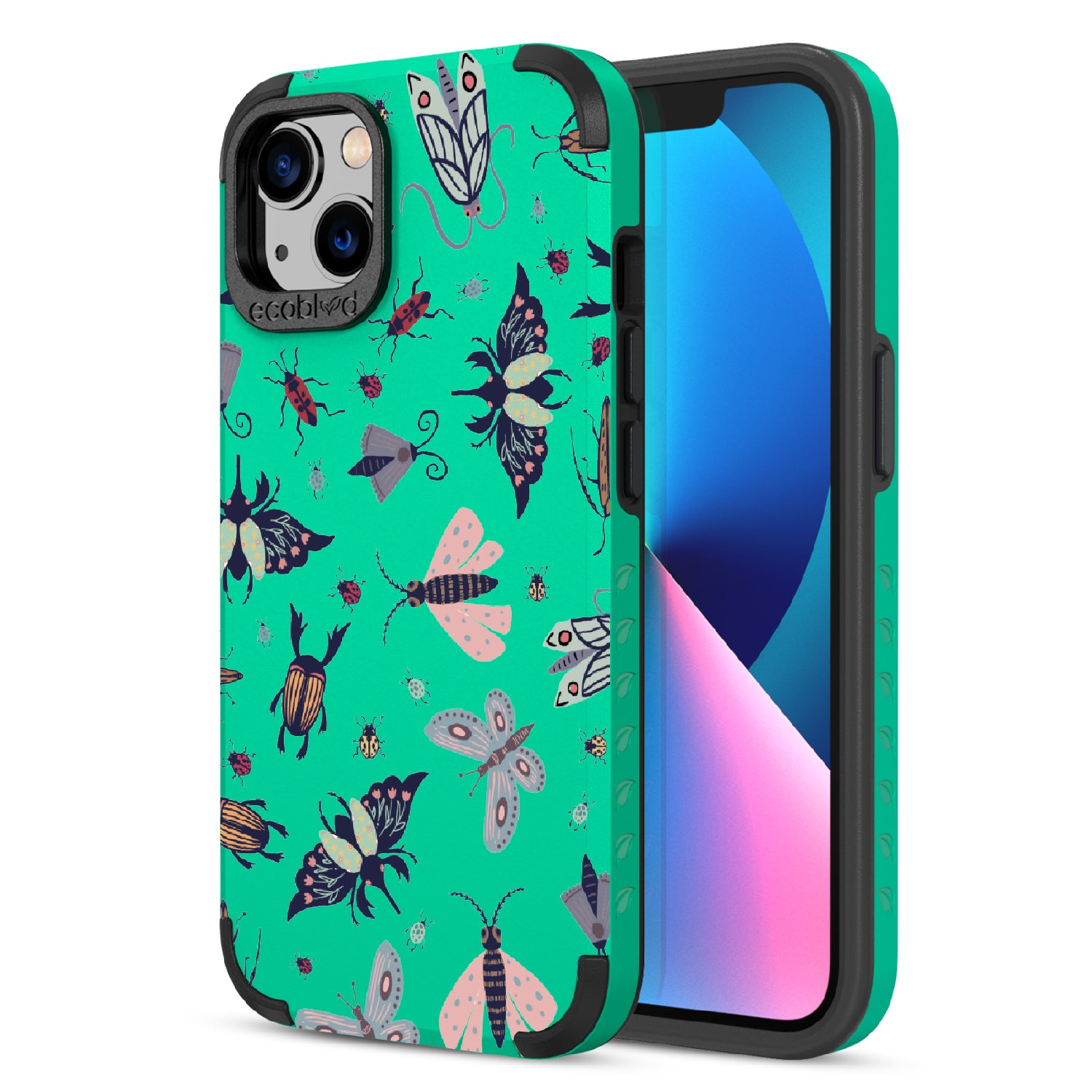 Want to make your phone stand out from the swarm? The Bug Out design on our Mojave rugged and compostable iPhone 13 case features a delightful array of whimsical insects, including fluttering butterflies and speedy dragonflies, that will keep you feeling playful and carefree in five captivating colors: Midnight Black, Cascade Blue, Foliage Green, Illuminating Yellow, and Wildflower Pink.