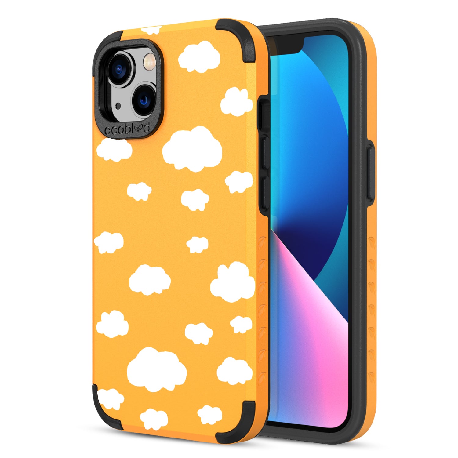 Keeping your phone on cloud nine is no problem as the Clouds design on our Mojave rugged and compostable iPhone 13 case surrounds your phone with a light, airy, and incredibly dreamy look that comes in five vibrant colors: Midnight Black, Cascade Blue, Foliage Green, Illuminating Yellow, and Wildflower Pink.