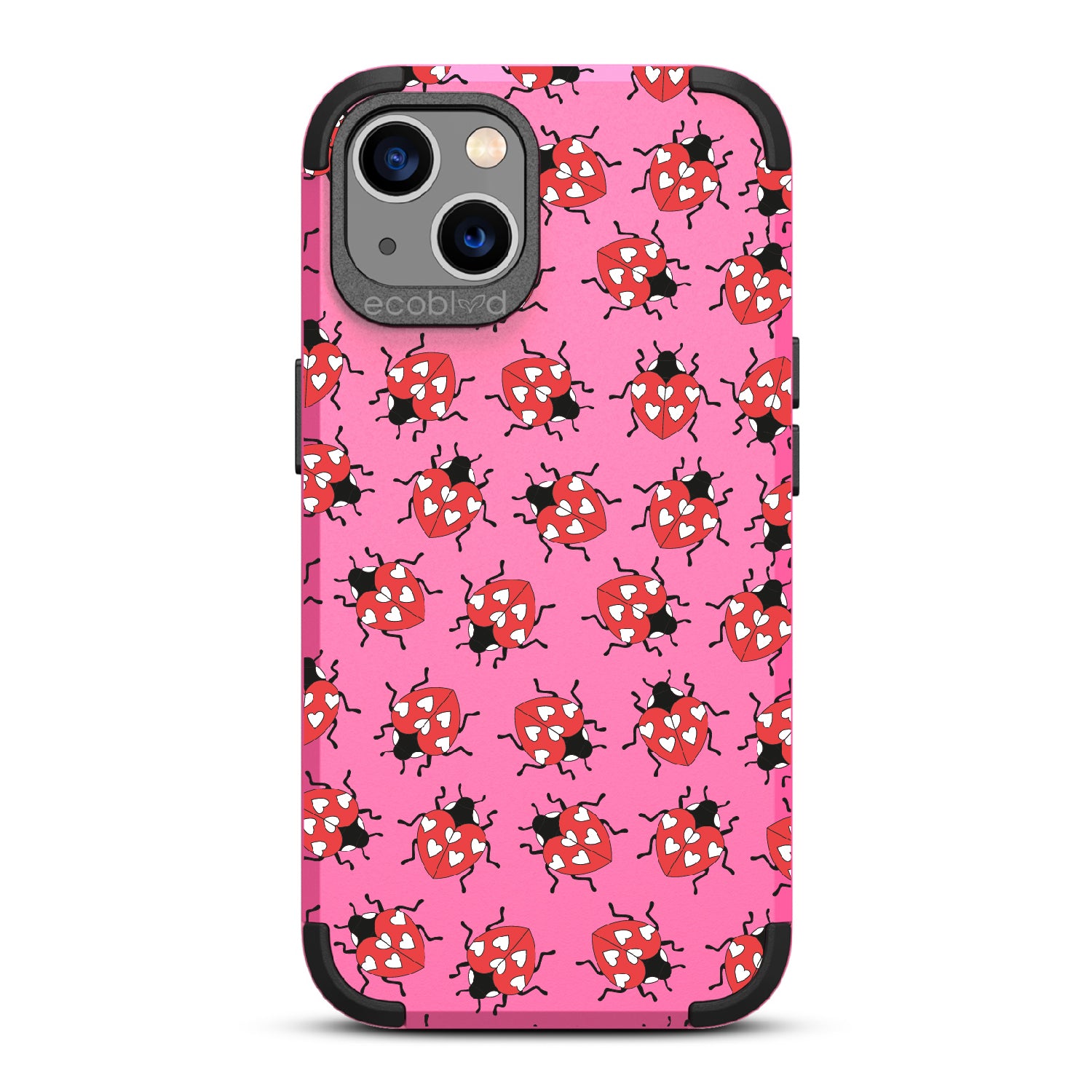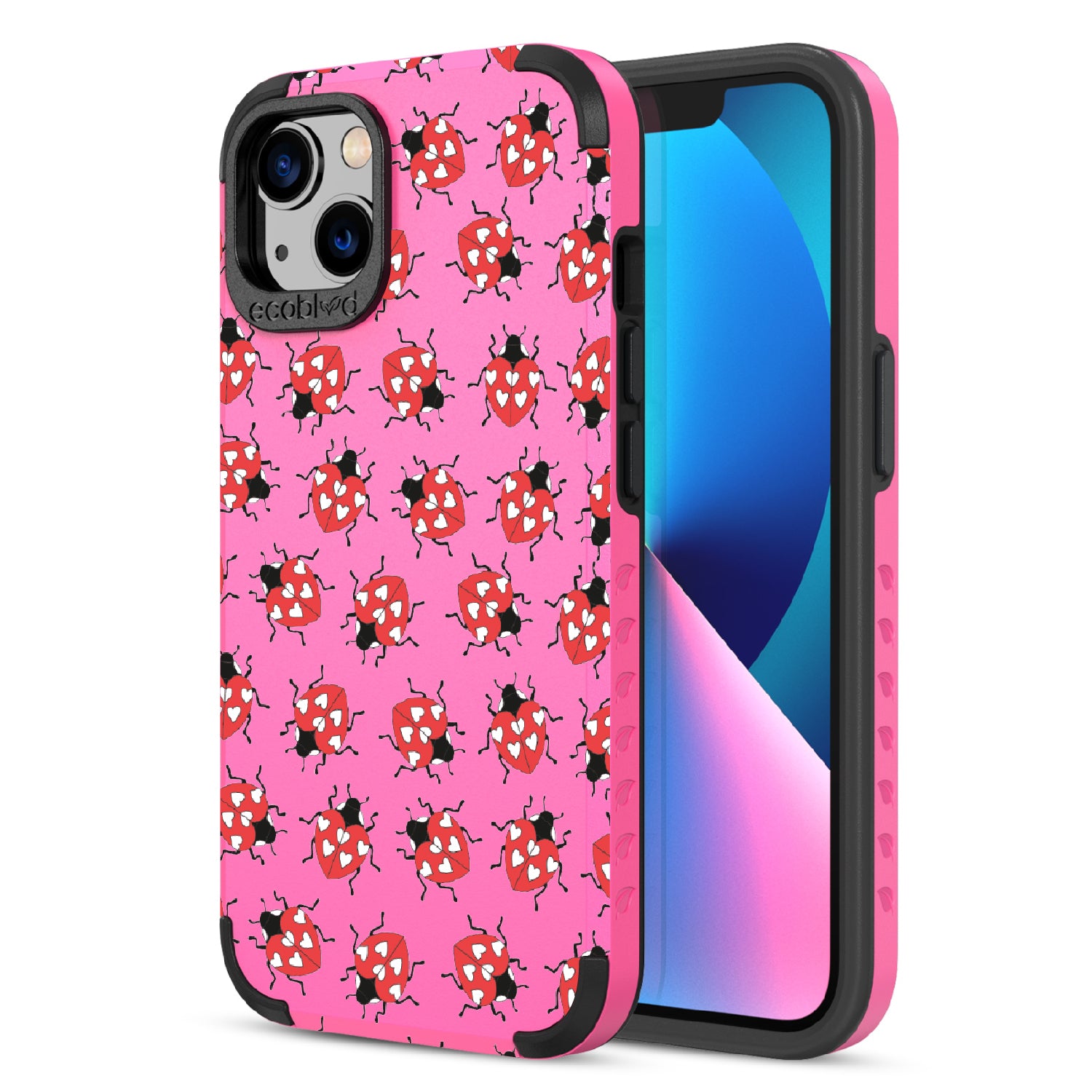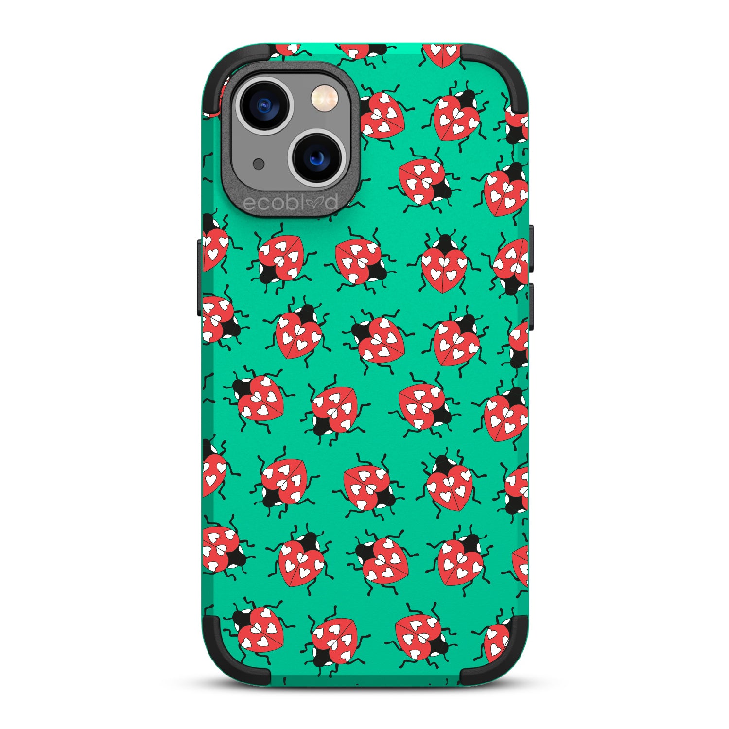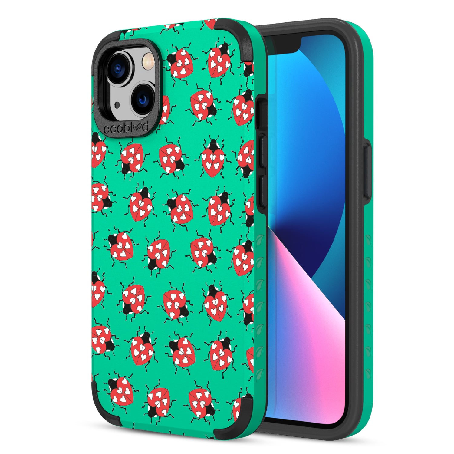 Invite the Love Bug into your heart with our Mojave rugged and compostable iPhone 13 phone case. This charming insect, with its heart-shaped wings, becomes a delightful partner, symbolizing the affectionate and loving moments that buzz around.
