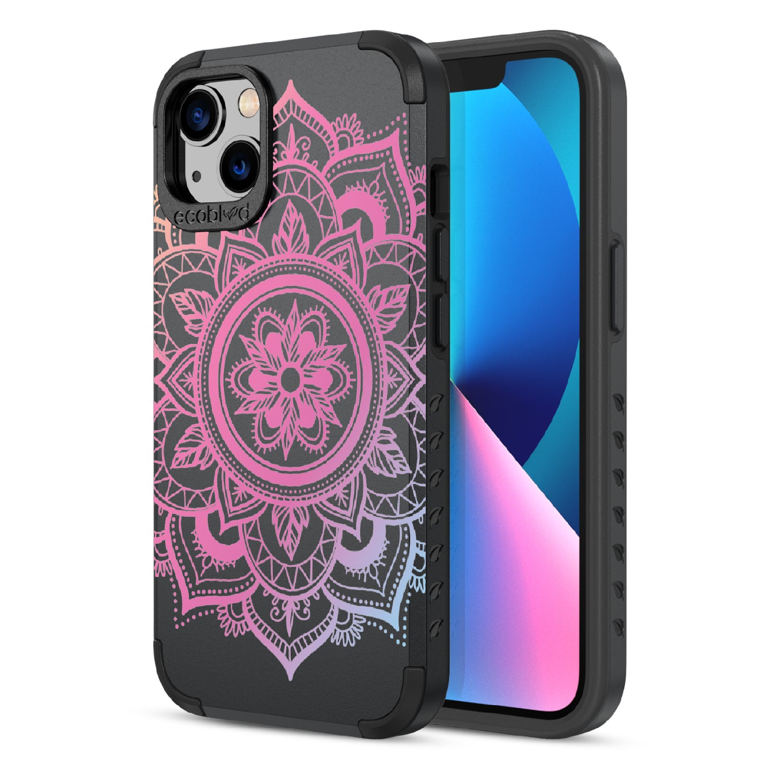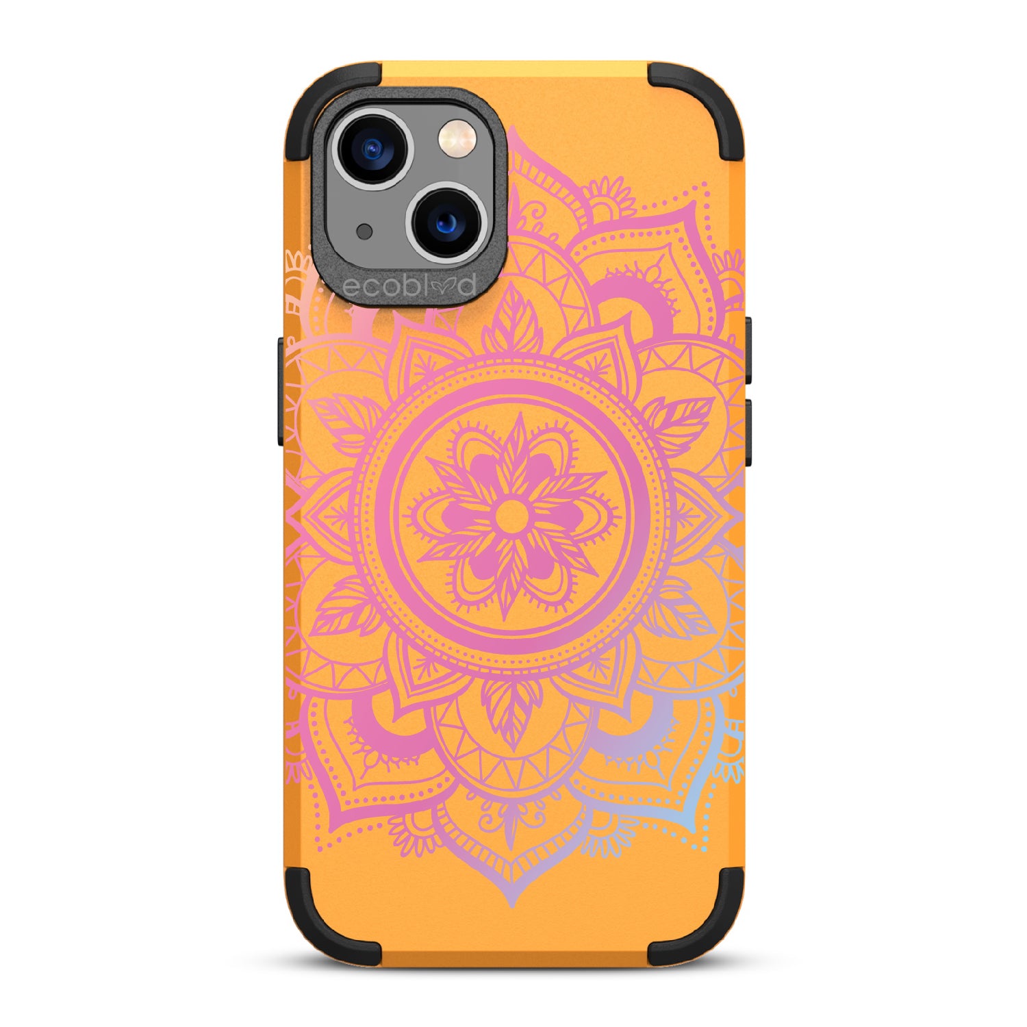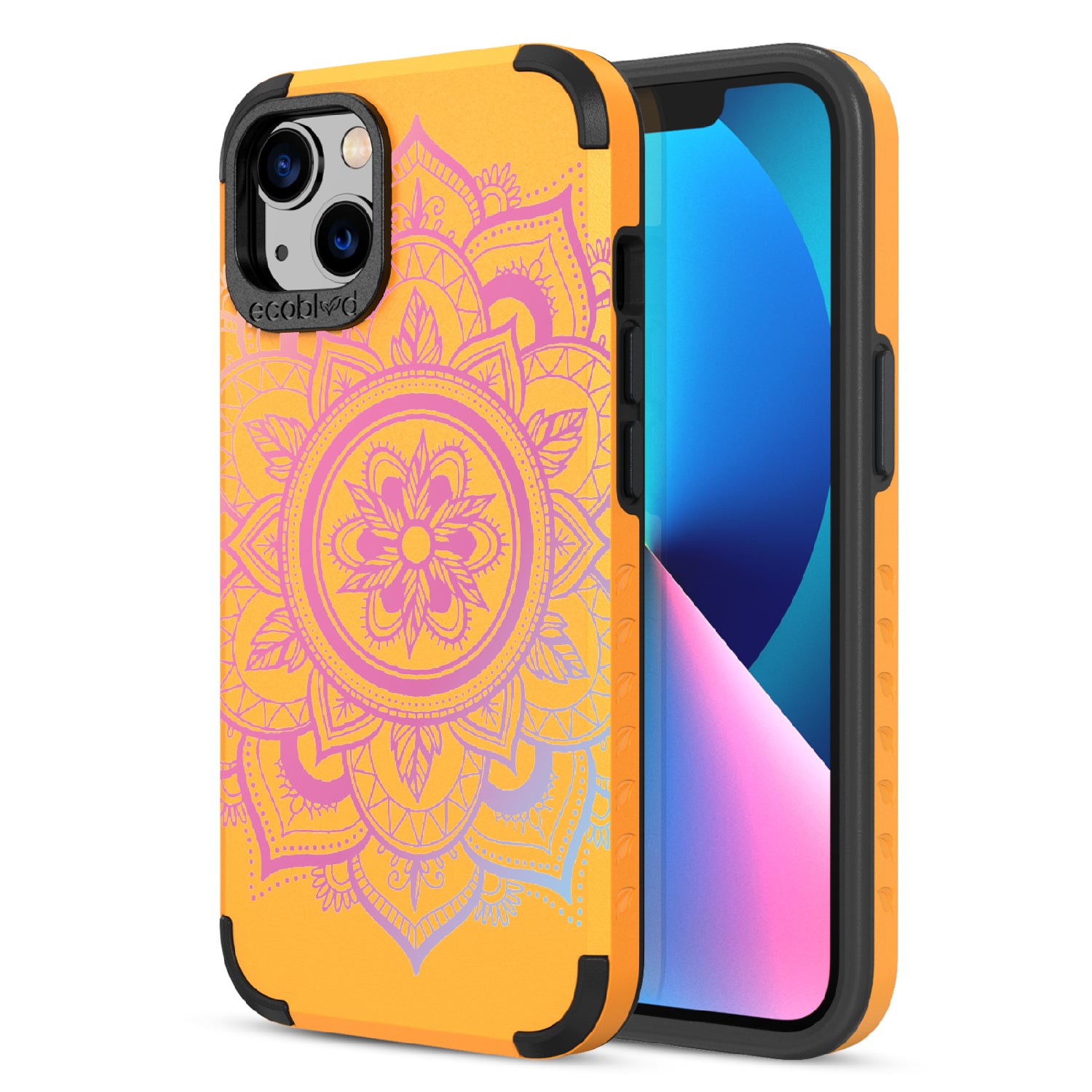 Get closer to inner peace and let your spiritual side shine in the Mandala design on our Mojave rugged and compostable iPhone 13 phone case as it centers your phone and style! Choose from five vibrant colors: Midnight Black, Cascade Blue, Foliage Green, Illuminating Yellow, and Wildflower Pink.