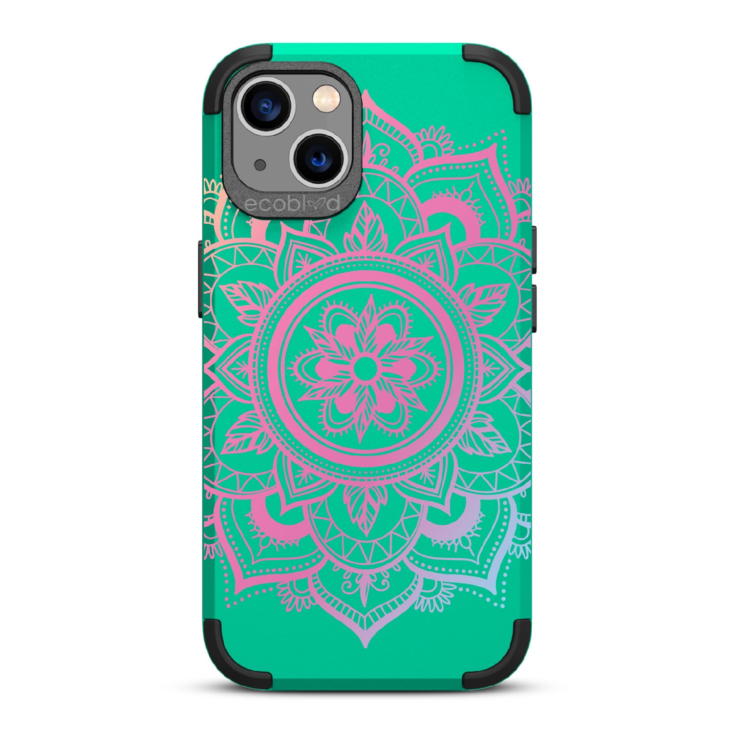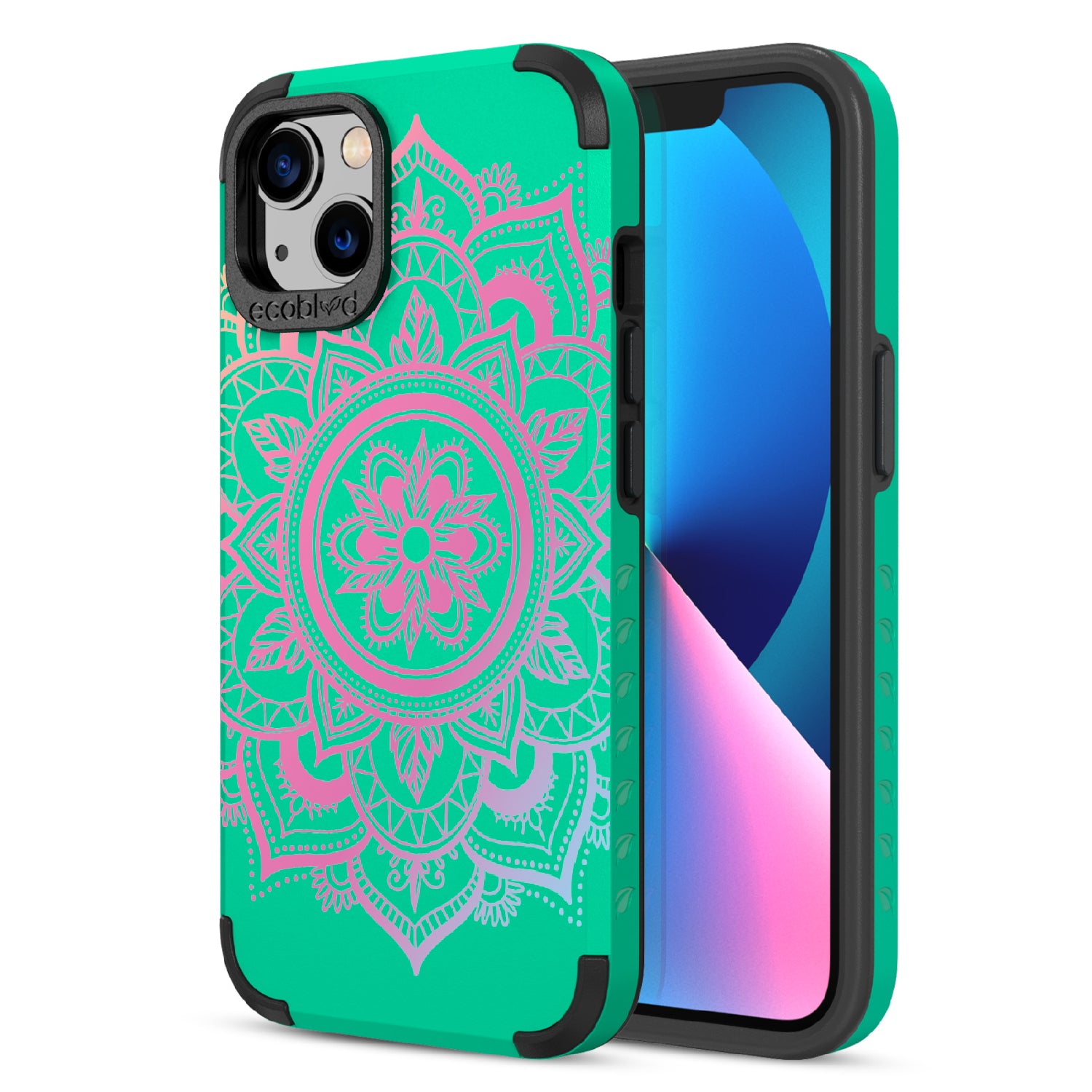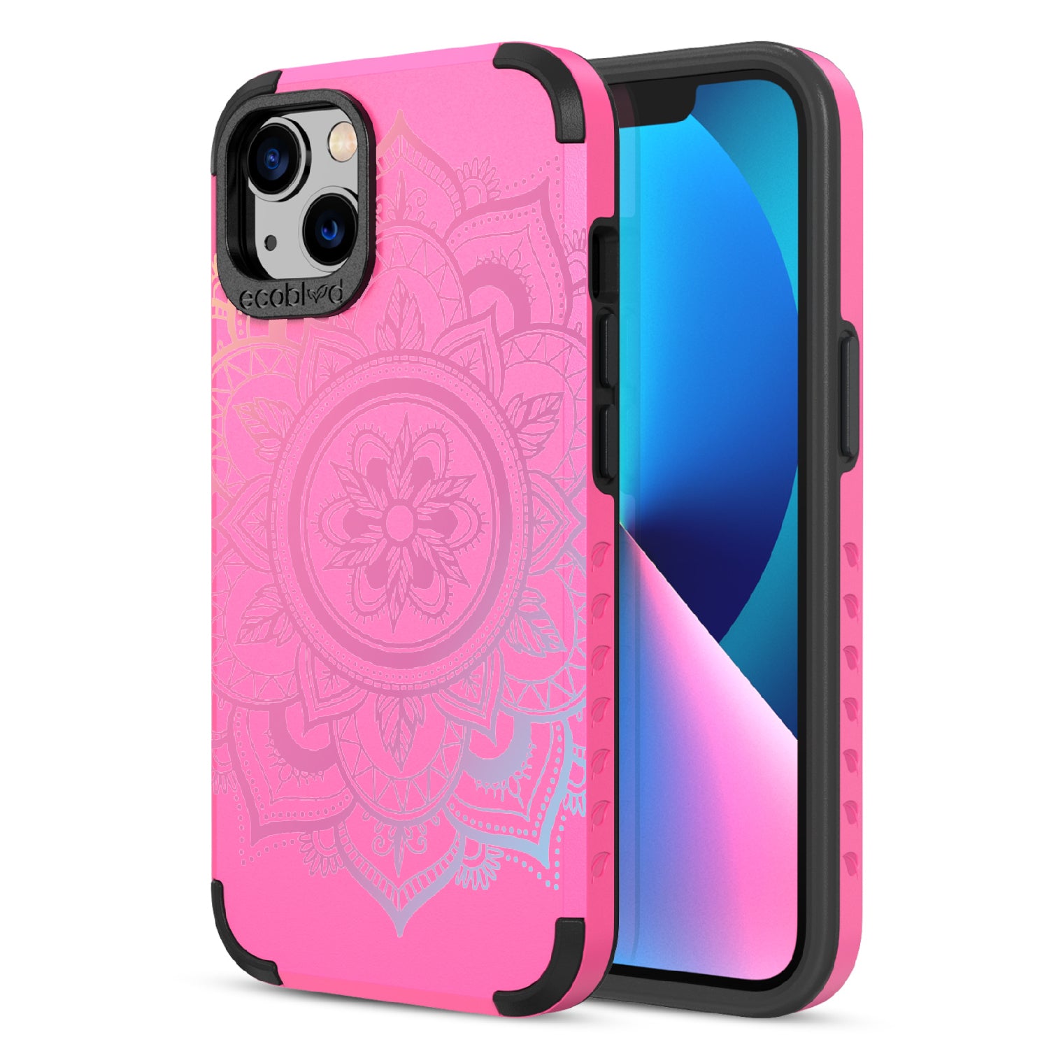 Get closer to inner peace and let your spiritual side shine in the Mandala design on our Mojave rugged and compostable iPhone 13 phone case as it centers your phone and style! Choose from five vibrant colors: Midnight Black, Cascade Blue, Foliage Green, Illuminating Yellow, and Wildflower Pink.