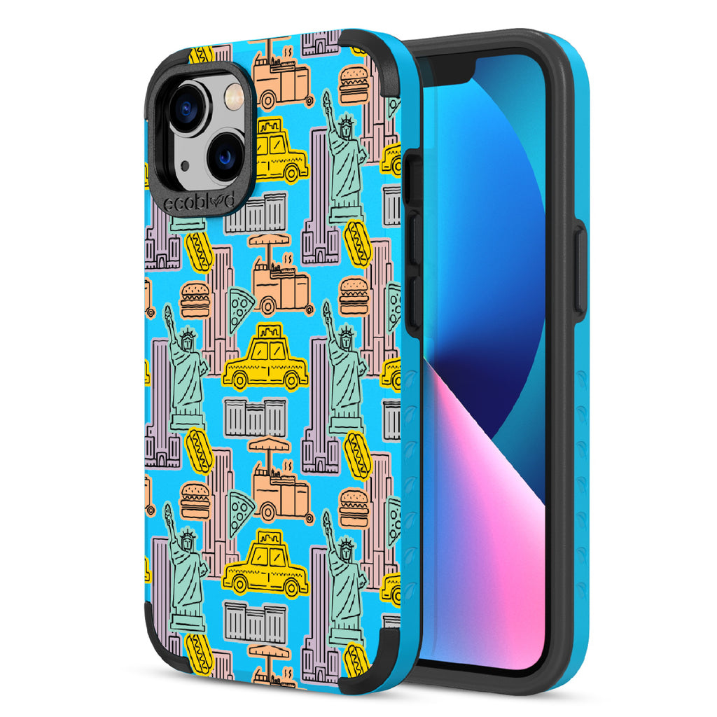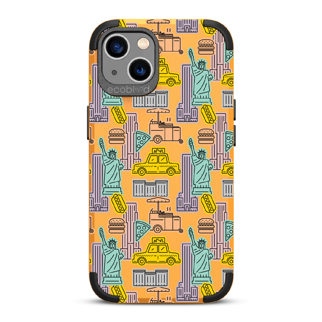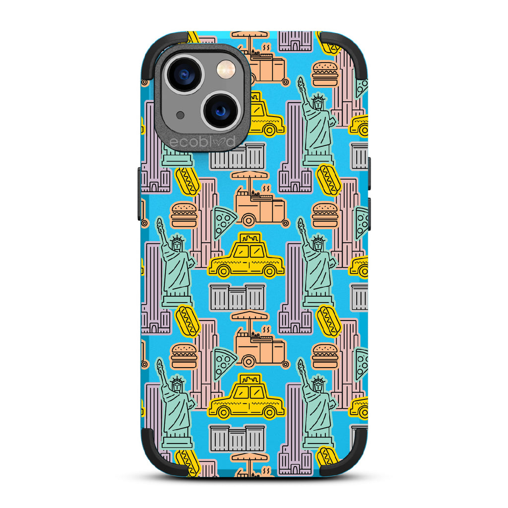 Capture the buzz of the city that never sleeps with the New York Minute design on our Mojave rugged iPhone 13 phone case. It's a slice of the Big Apple, with iconic yellow cabs, steaming hotdogs, and Lady Liberty herself, all wrapped up in that unmistakable NYC rhythm.