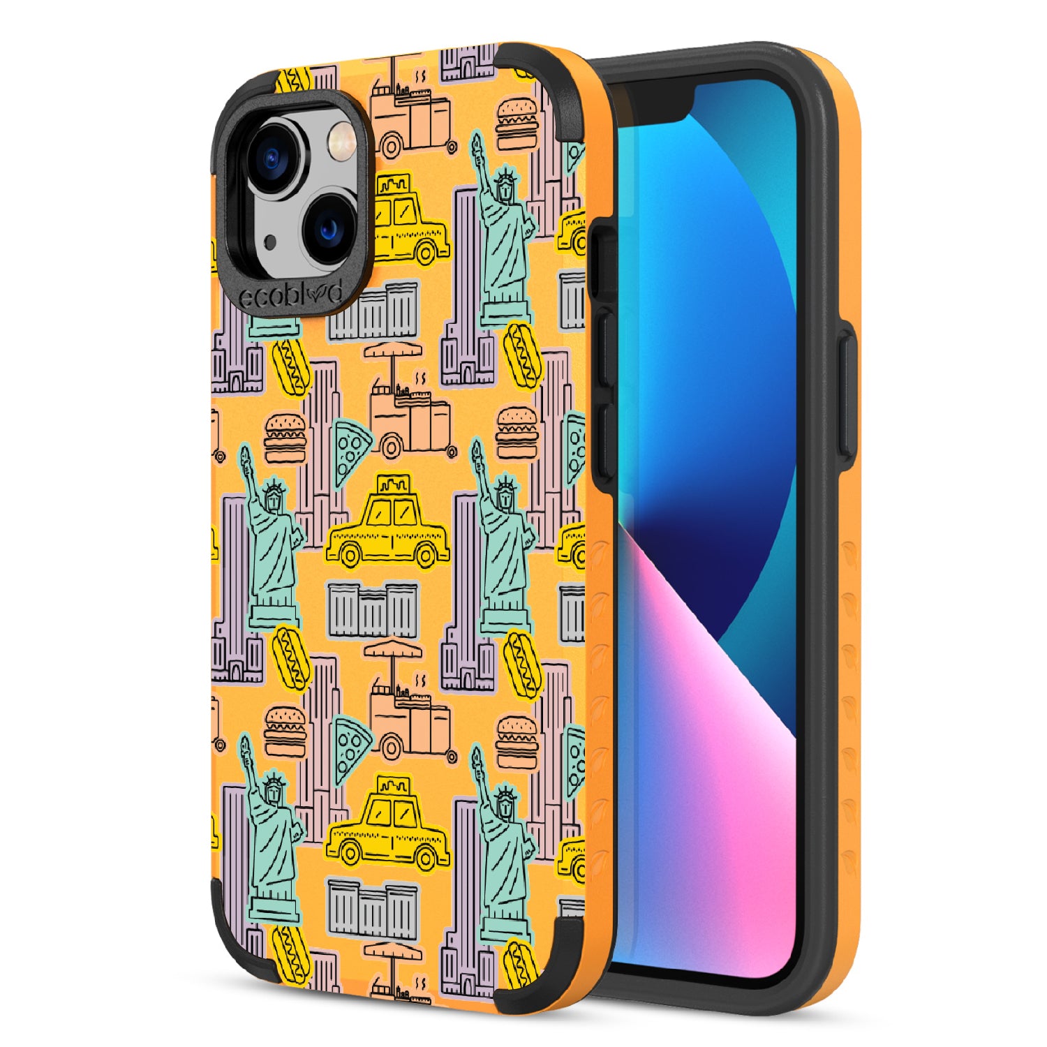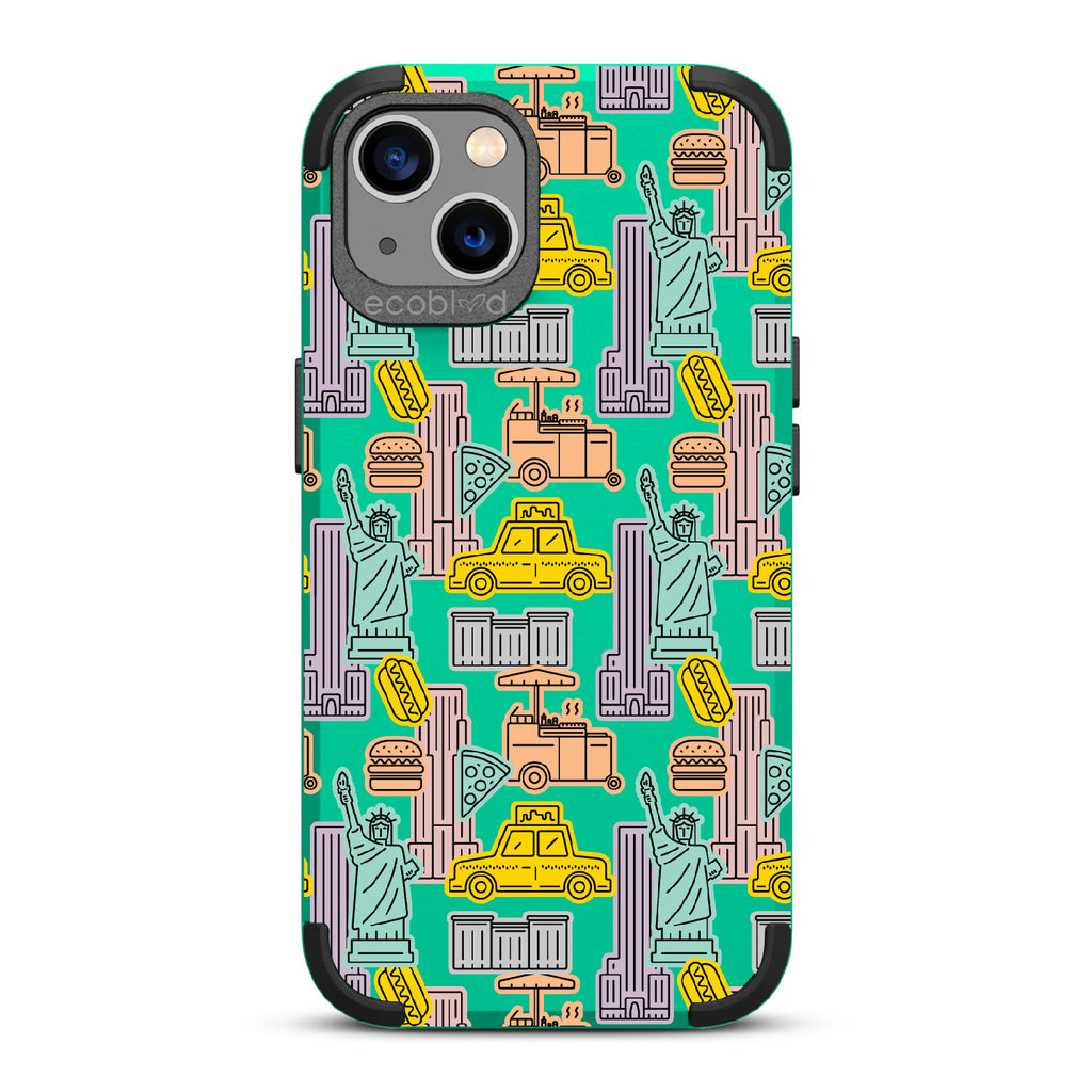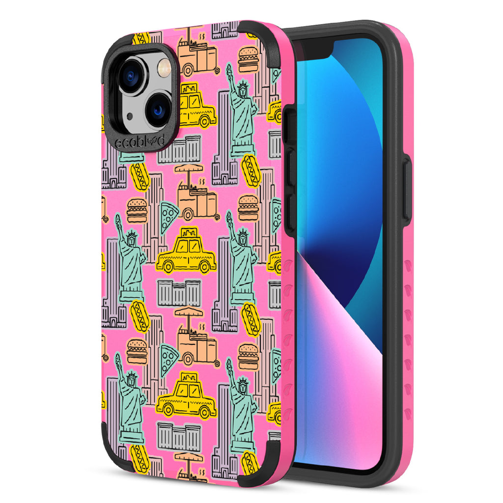 Capture the buzz of the city that never sleeps with the New York Minute design on our Mojave rugged iPhone 13 phone case. It's a slice of the Big Apple, with iconic yellow cabs, steaming hotdogs, and Lady Liberty herself, all wrapped up in that unmistakable NYC rhythm.