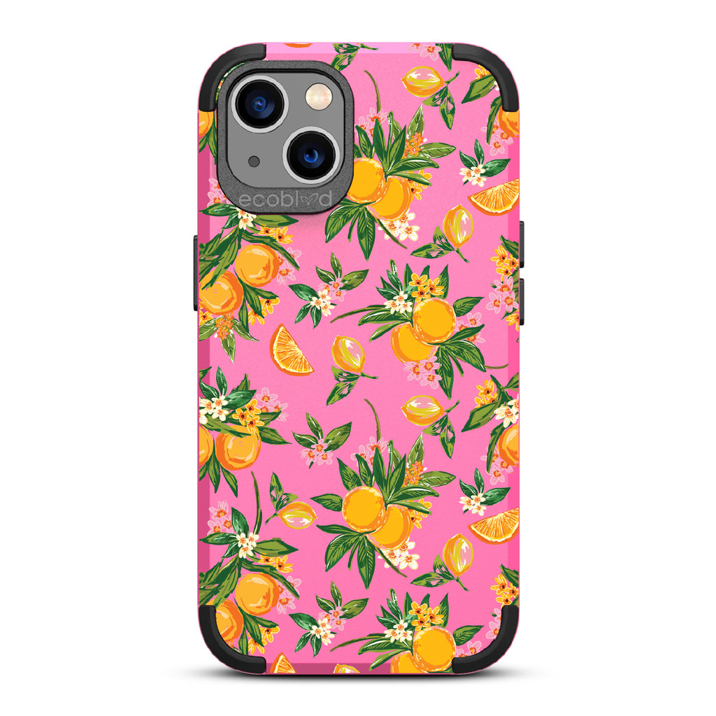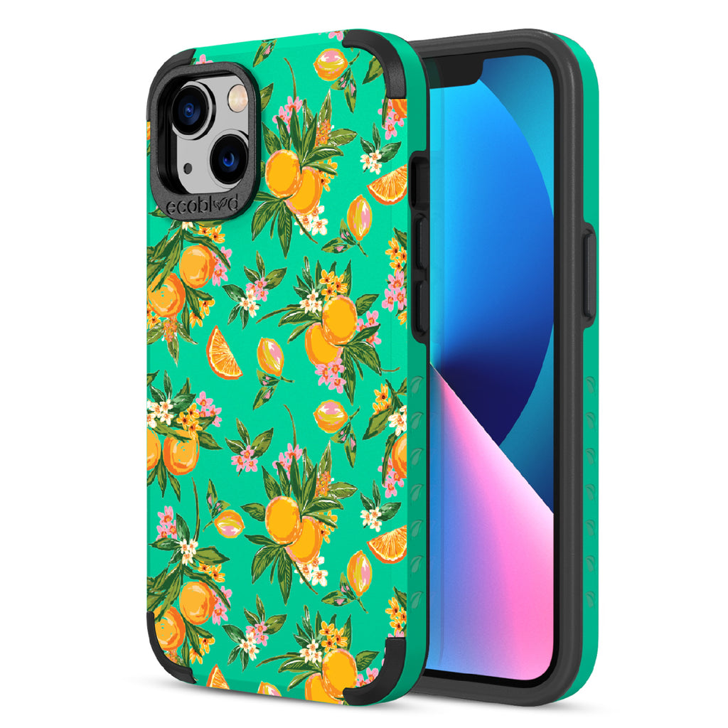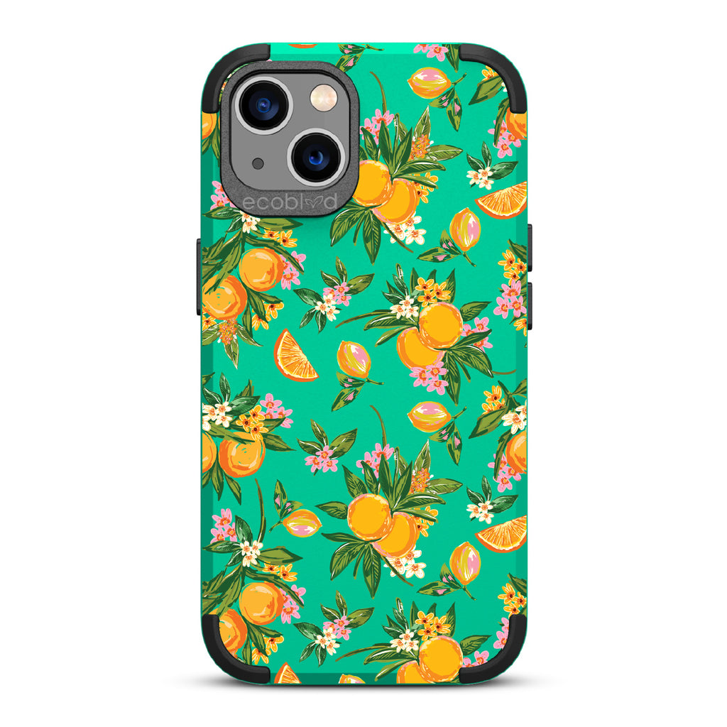 Quench your thirst for summer with our Orange Bliss design on our Mojave rugged and compostable iPhone 13 case, as it is infused with the refreshing essence of citrus delights. This vibrant design showcases fresh oranges and slices that evoke the sensation of coolness and rejuvenation. Feel the tangy aroma and vibrant colors transport you to sunny orchards, where every moment is filled with refreshing bliss.