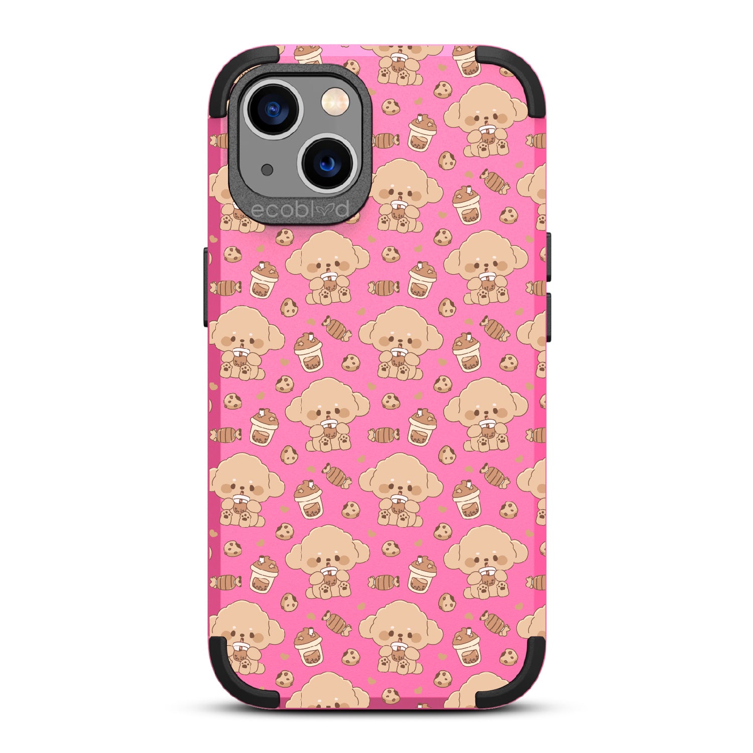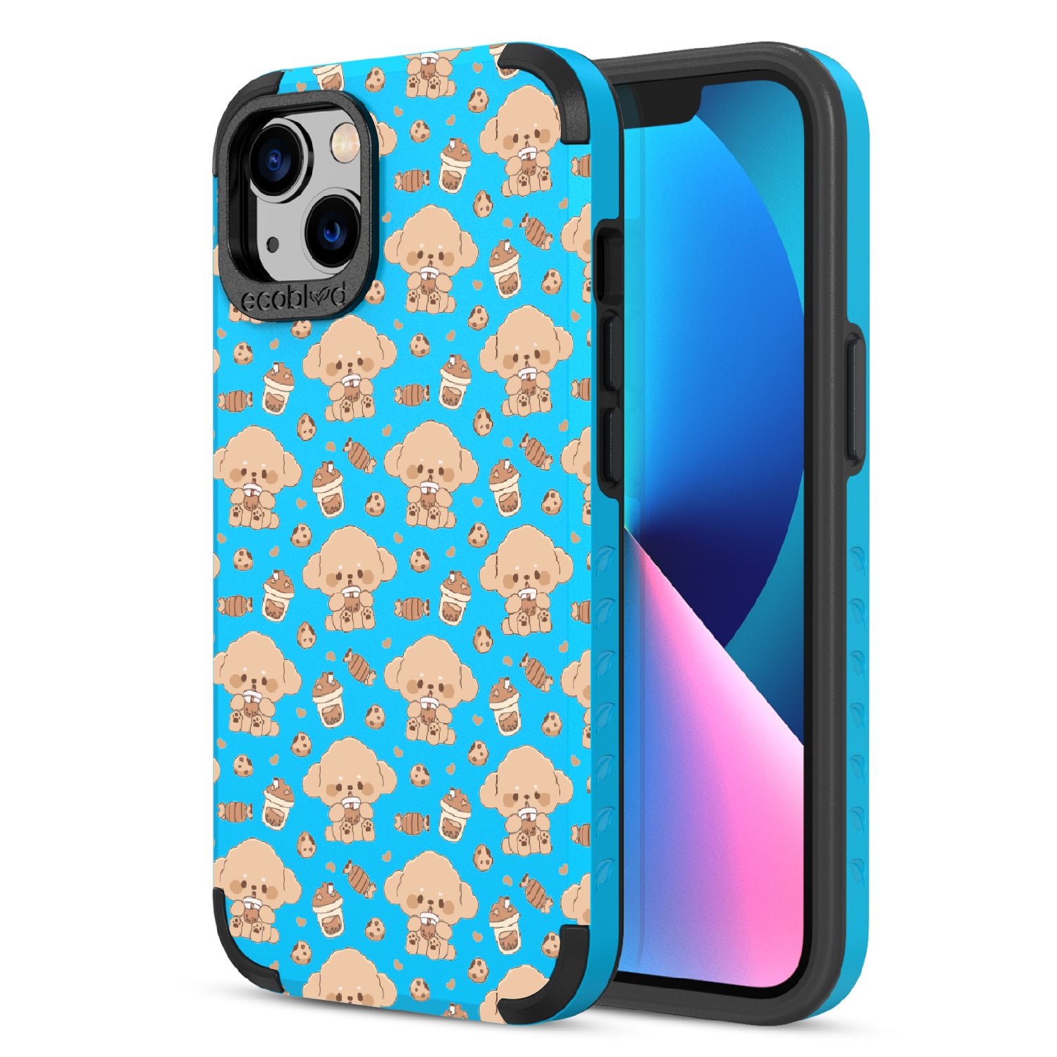 A pup cup for them, a coffee for you. The Pupaccino design on our Mojave rugged and compostable iPhone 13 case captures the joy of coffee runs with your furry best friend, blending happy pups, frothy drinks, and pastries into one delightful look. Perfect for dog lovers who never skip a treat.