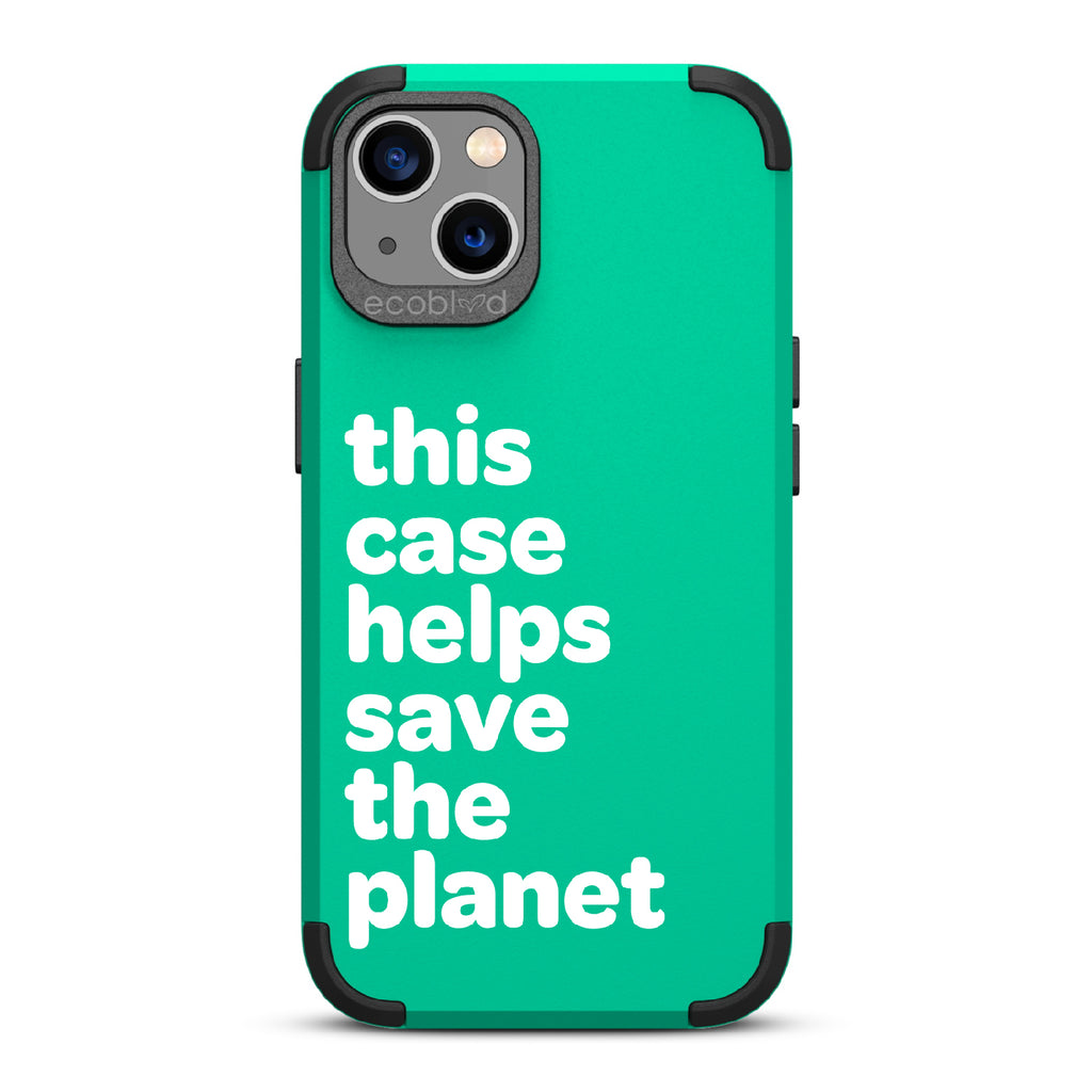 Send a bold message from your phone as the Save The Planet design on our Mojave rugged and compostable iPhone 13 case highlights your case's eco-friendly fashion and your commitment to sustainability. Choose from five vibrant colorways: Midnight Black, Cascade Blue, Foliage Green, Illuminating Yellow, and Wildflower Pink.