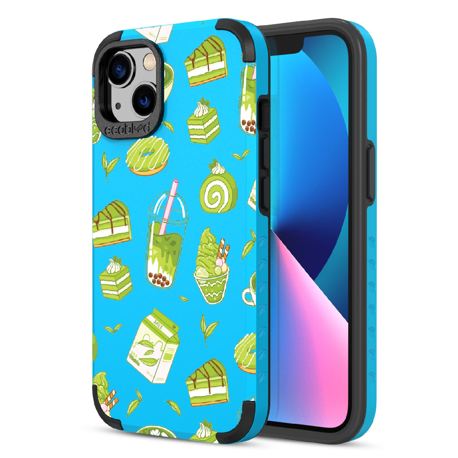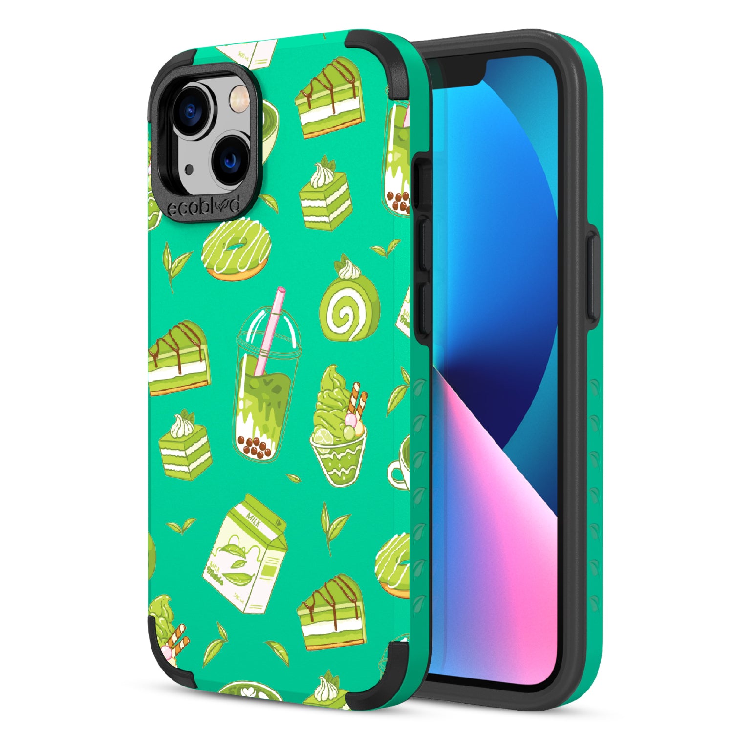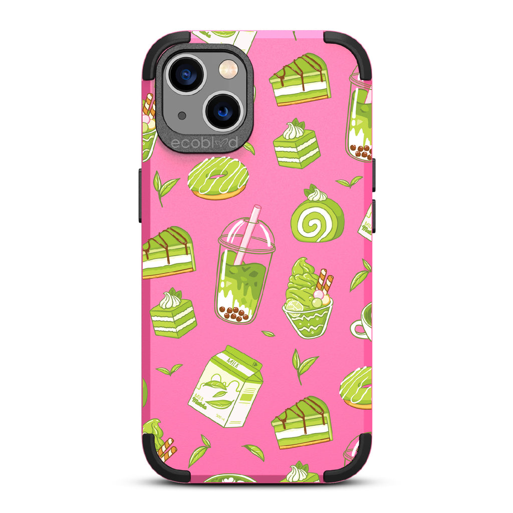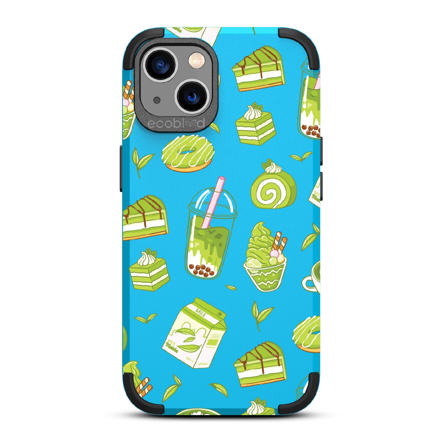 Ice cream and boba, cake, milk, and so matcha more! Overflowing with matcha flavor, this design on our Mojave rugged and compostable iPhone 13 case! brings you a perfect blend of your favorite green treats. Because who ever said there was such a thing as too much matcha?