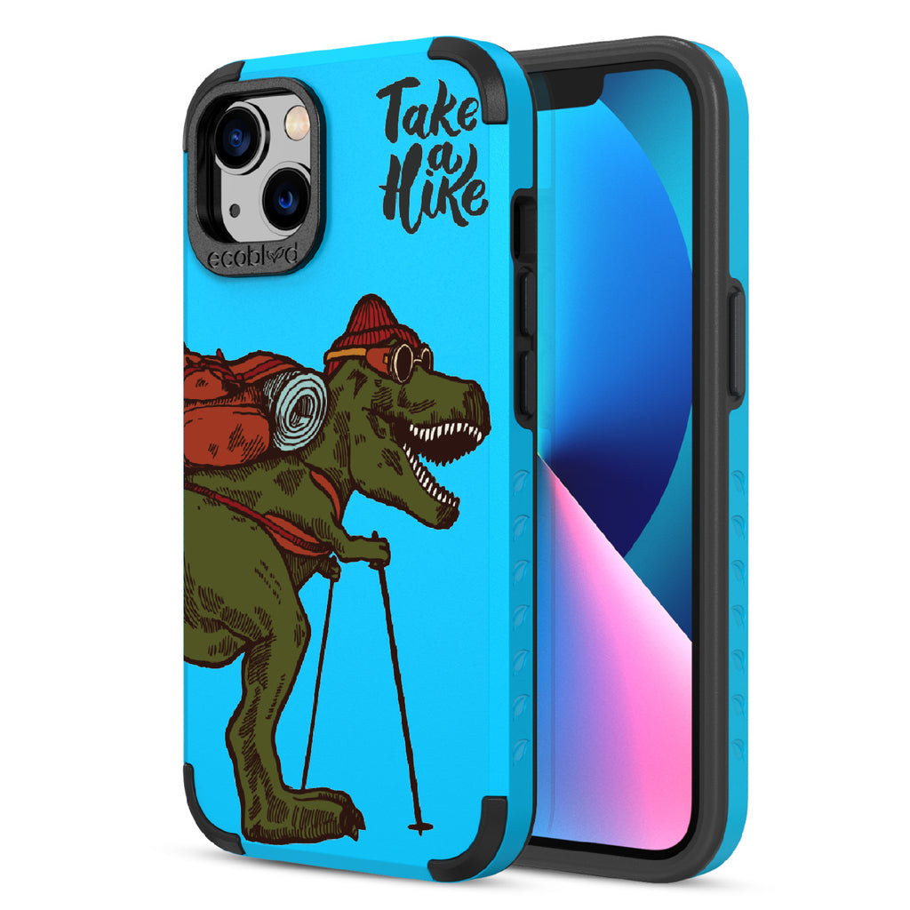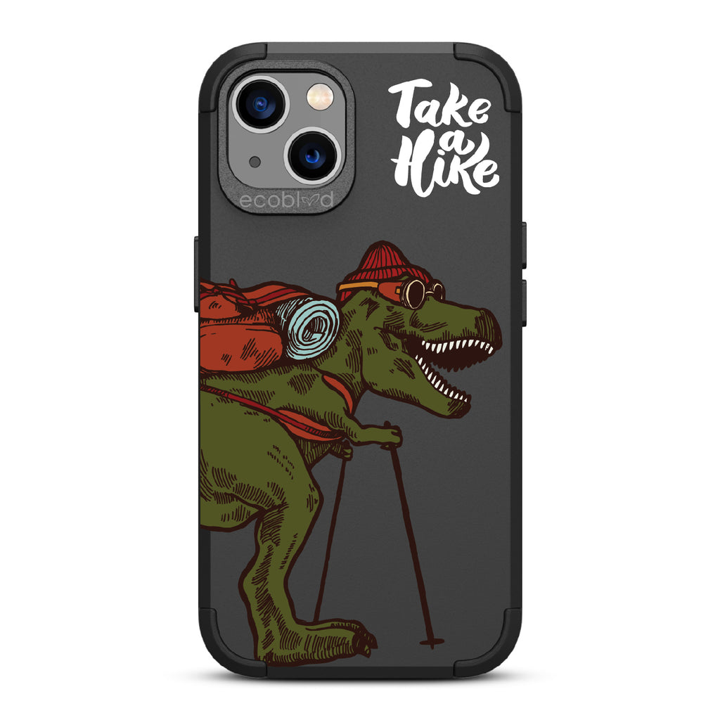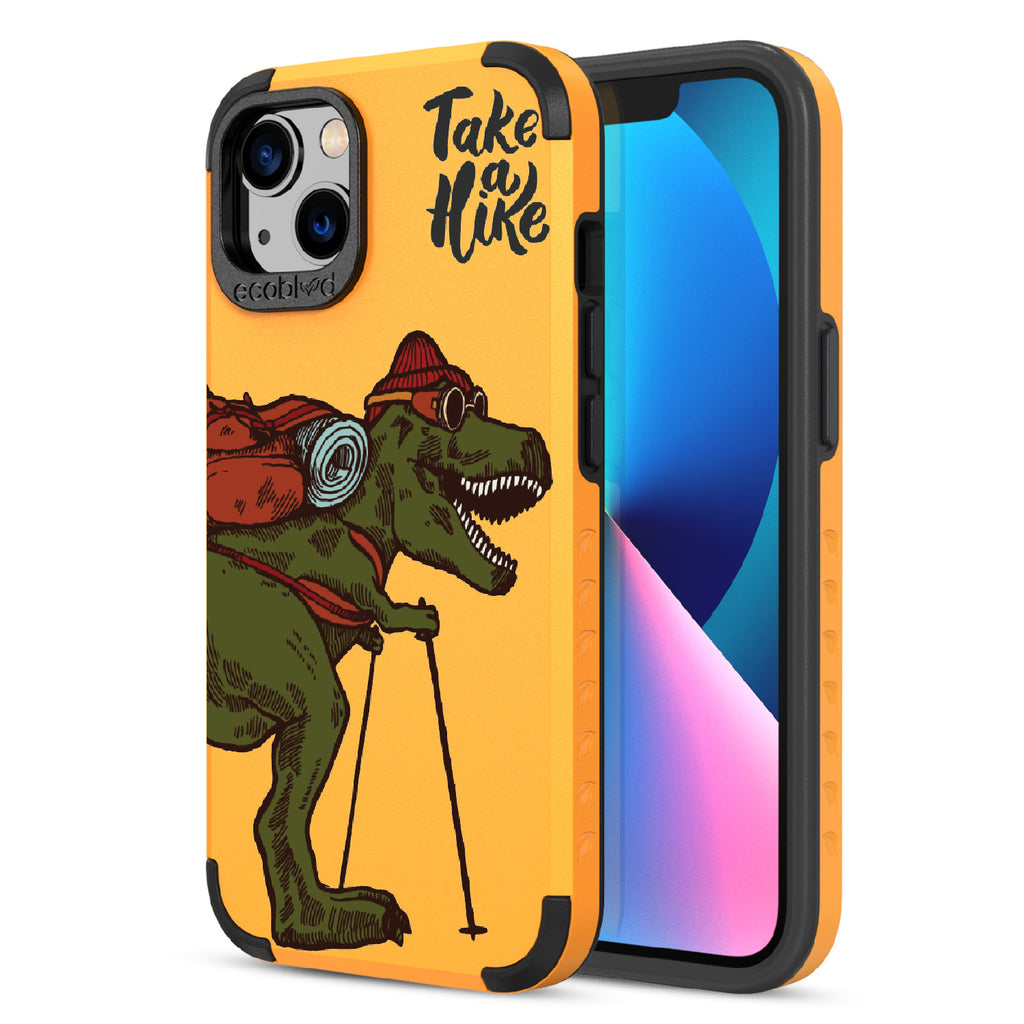 The Take a Hike design on our Mojave rugged and compostable iPhone 13 case puts a "DINORMOUSLY" fun twist on the phrase as a trail-ready T-rex gets ready to wander on a new path.