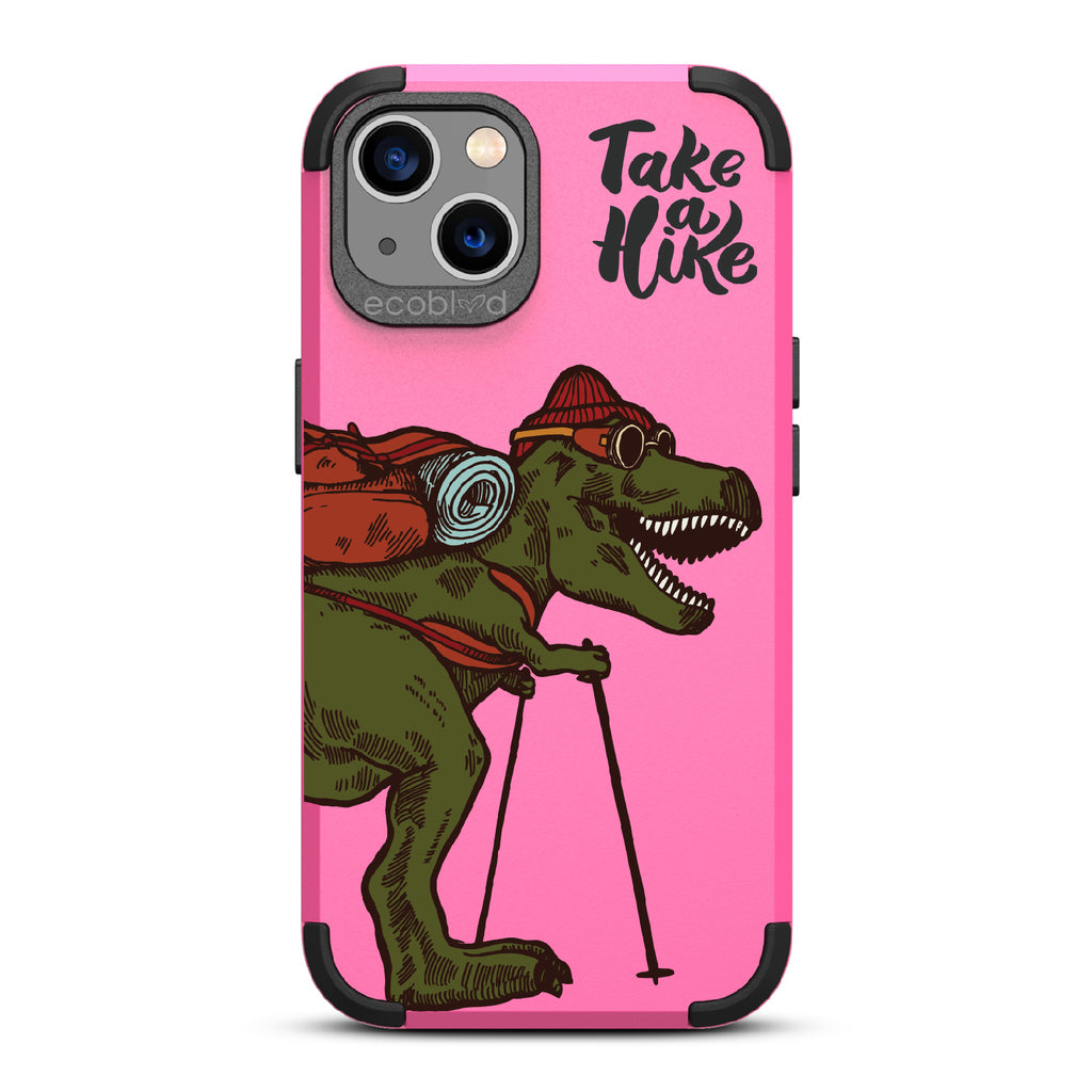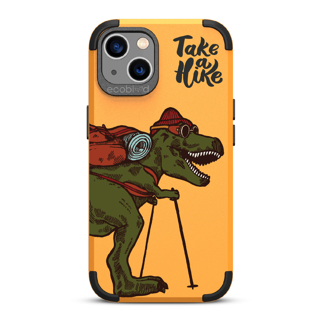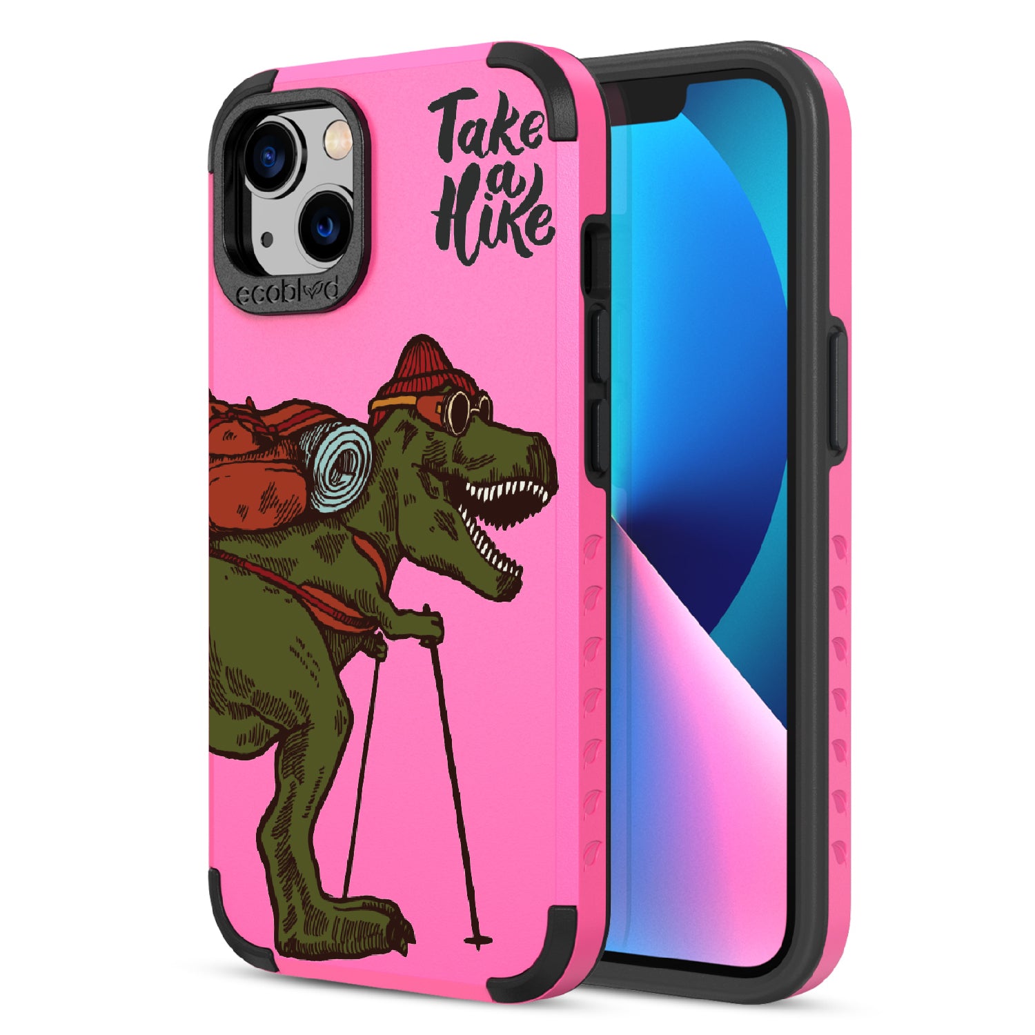 The Take a Hike design on our Mojave rugged and compostable iPhone 13 case puts a "DINORMOUSLY" fun twist on the phrase as a trail-ready T-rex gets ready to wander on a new path.