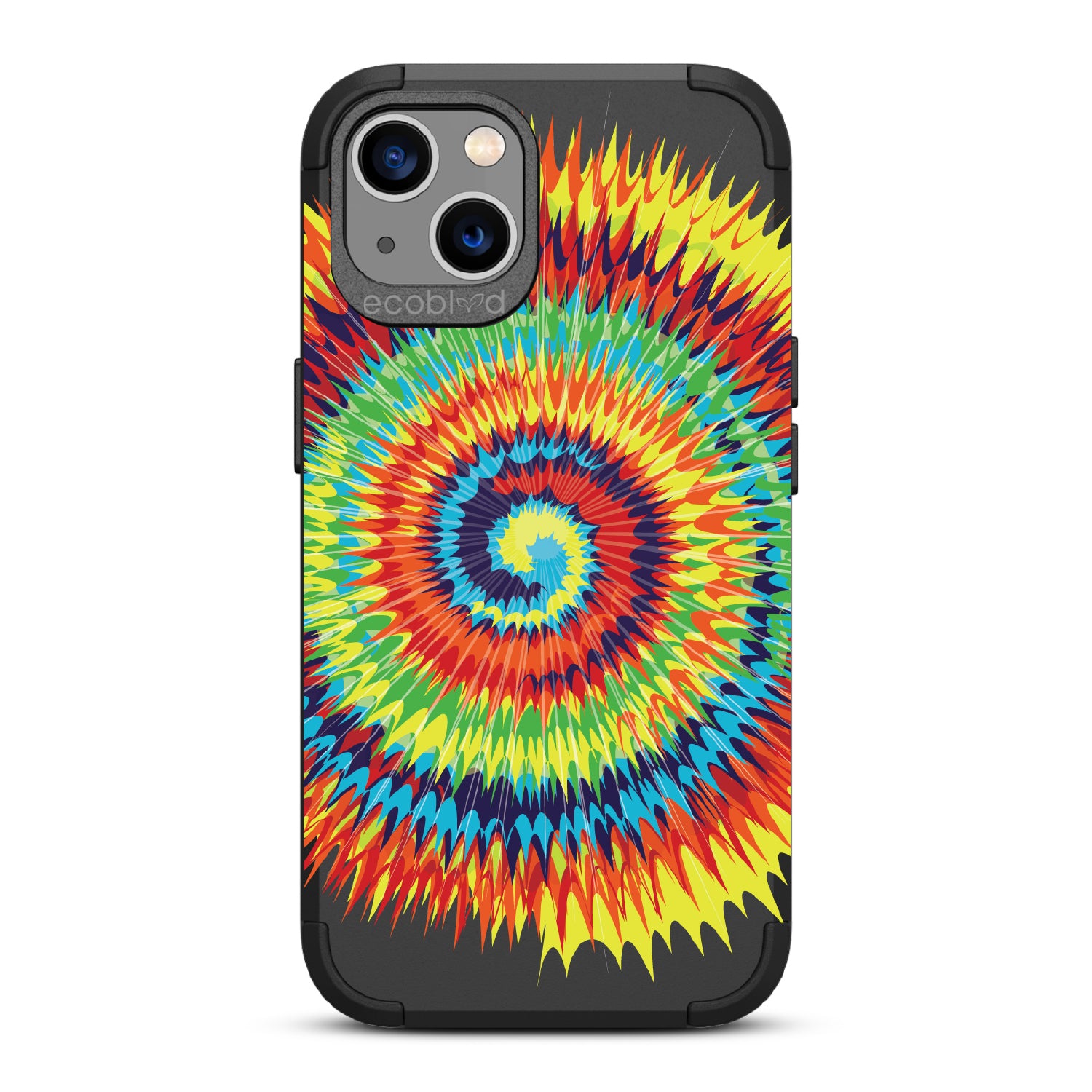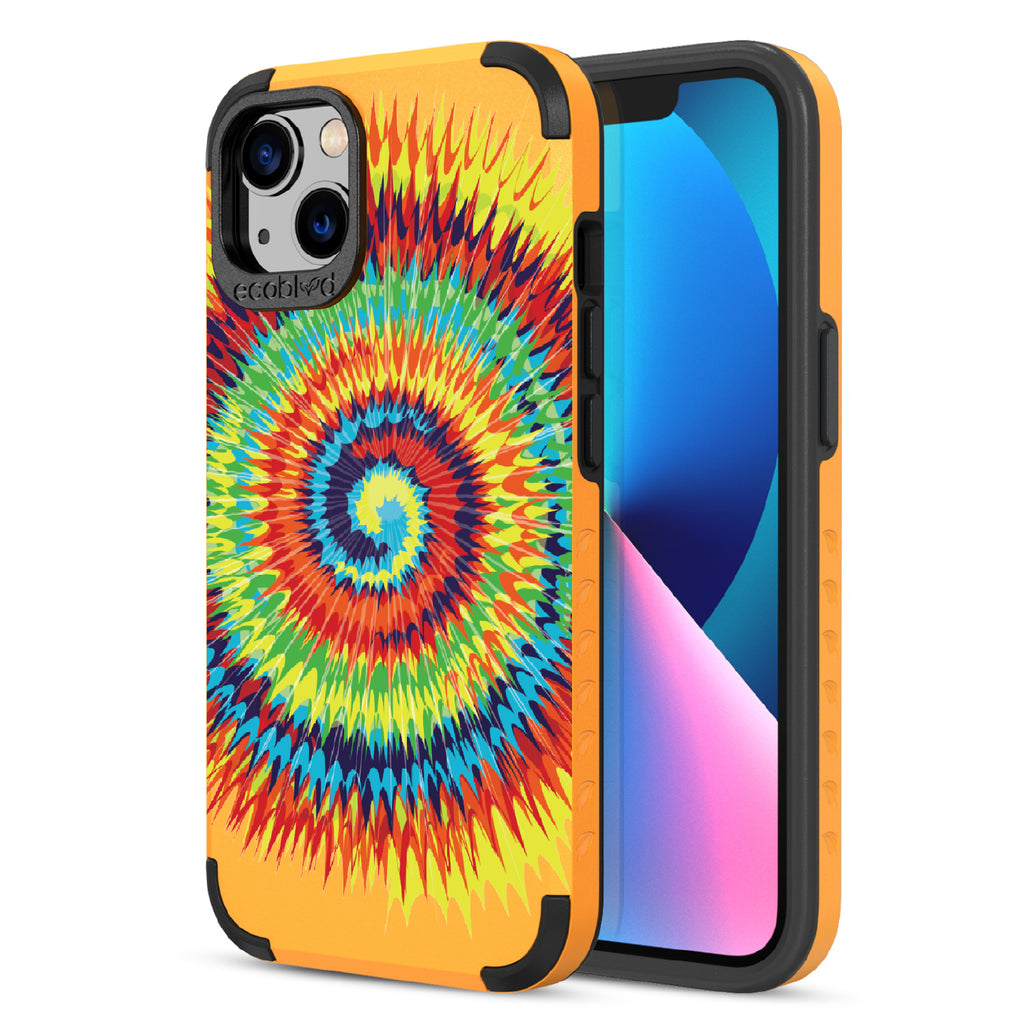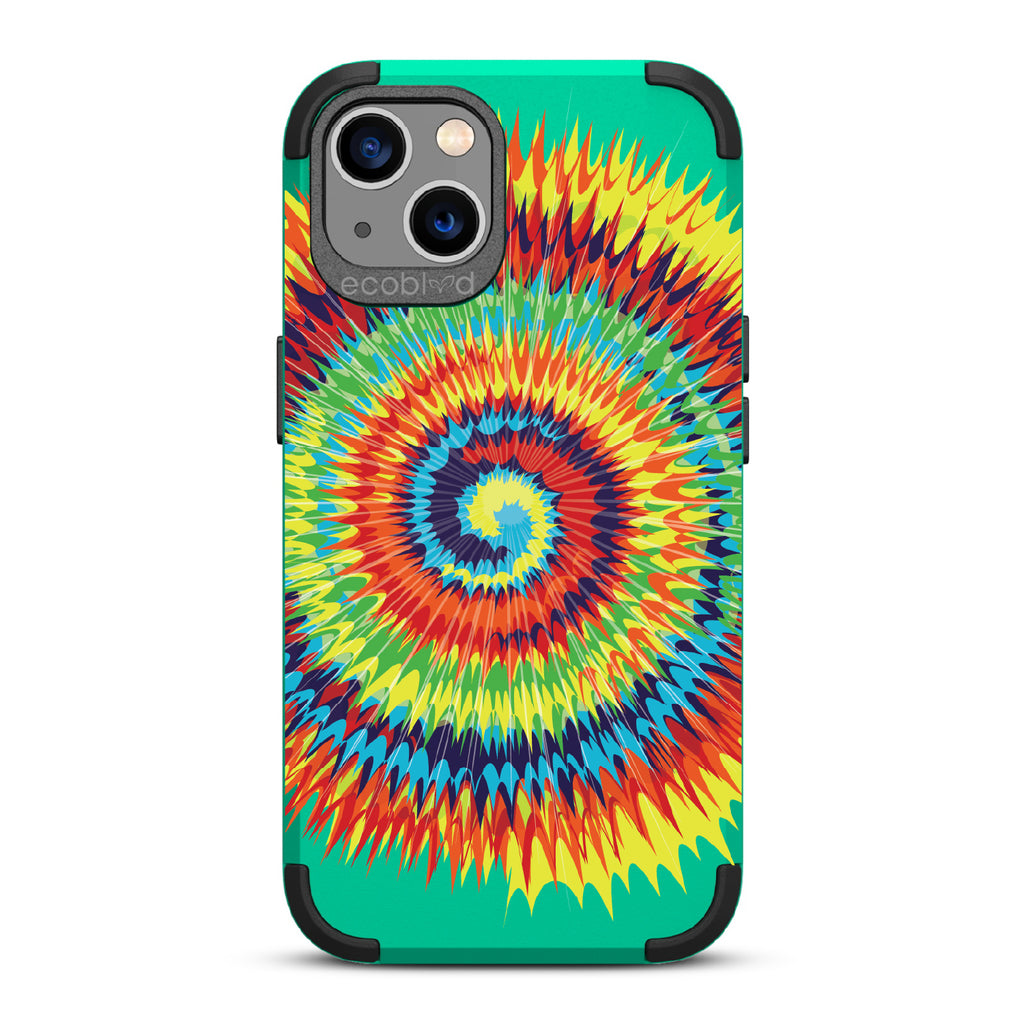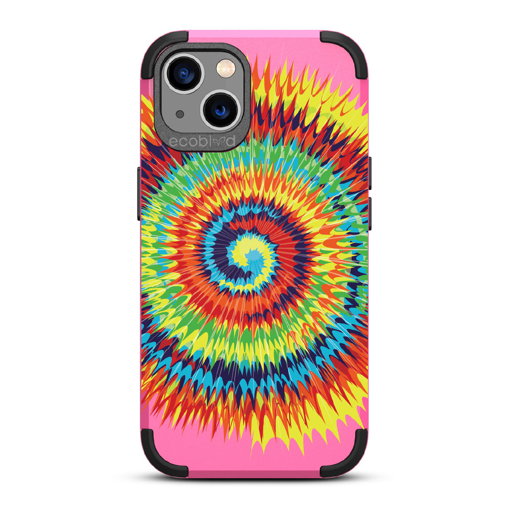 Bringing back the summer days of backyard BBQs, beach days, and fun in the sun, the Tie Dye design on our Mojave rugged and compostable iPhone 13 case has a retro rainbow swirl pattern giving your phone and style an eye-catching twist.