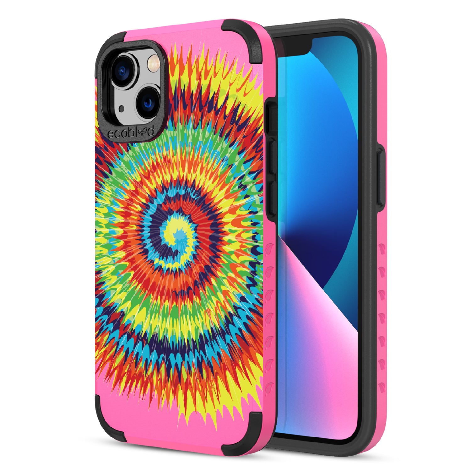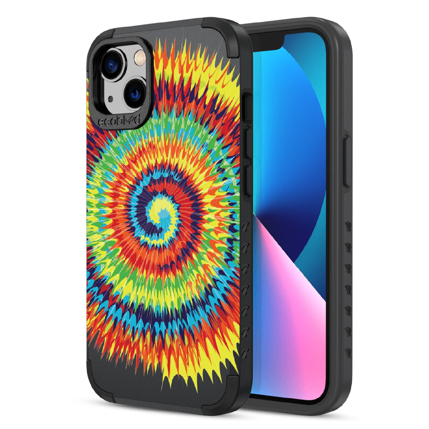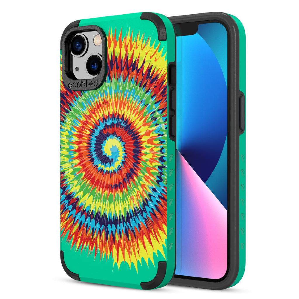 Bringing back the summer days of backyard BBQs, beach days, and fun in the sun, the Tie Dye design on our Mojave rugged and compostable iPhone 13 case has a retro rainbow swirl pattern giving your phone and style an eye-catching twist.