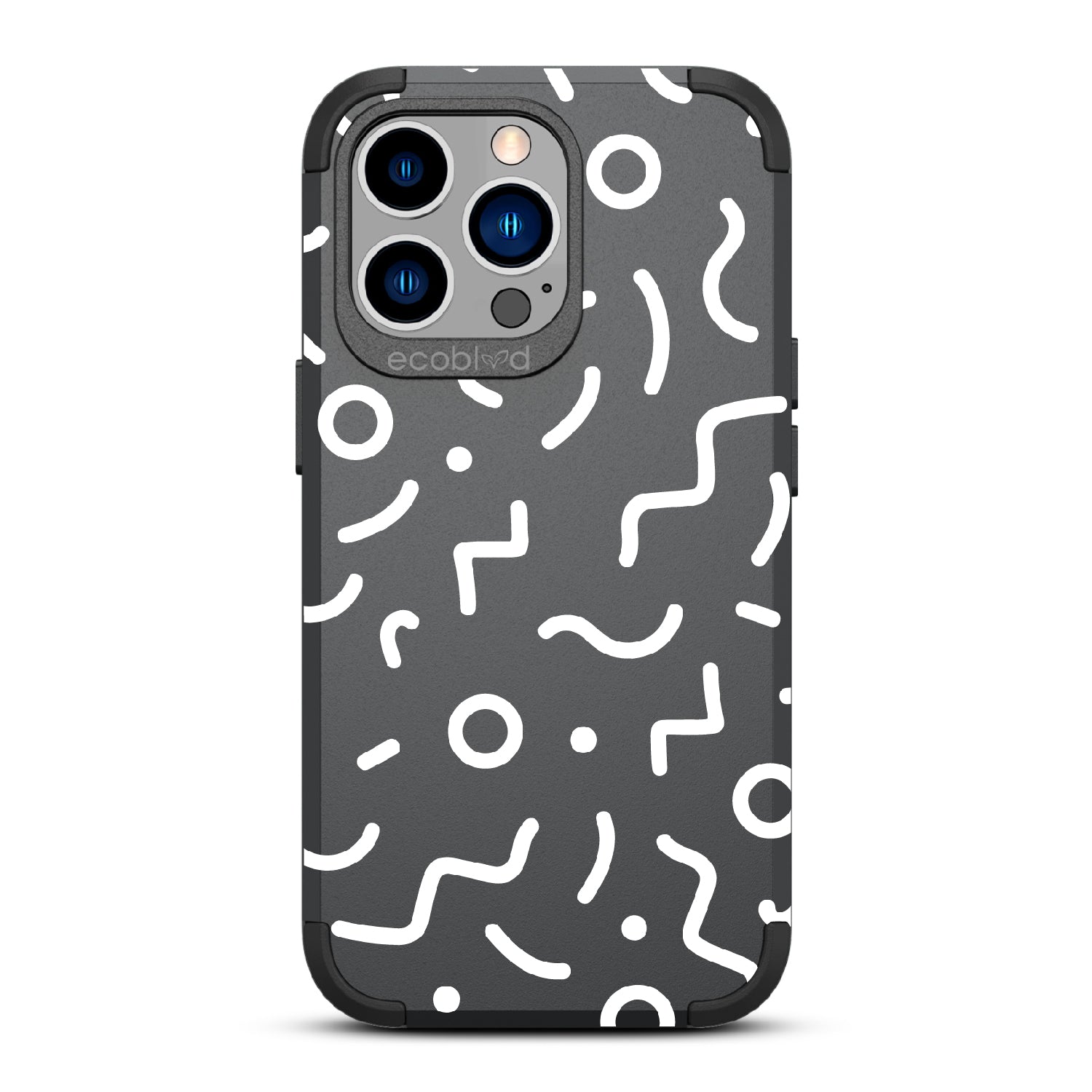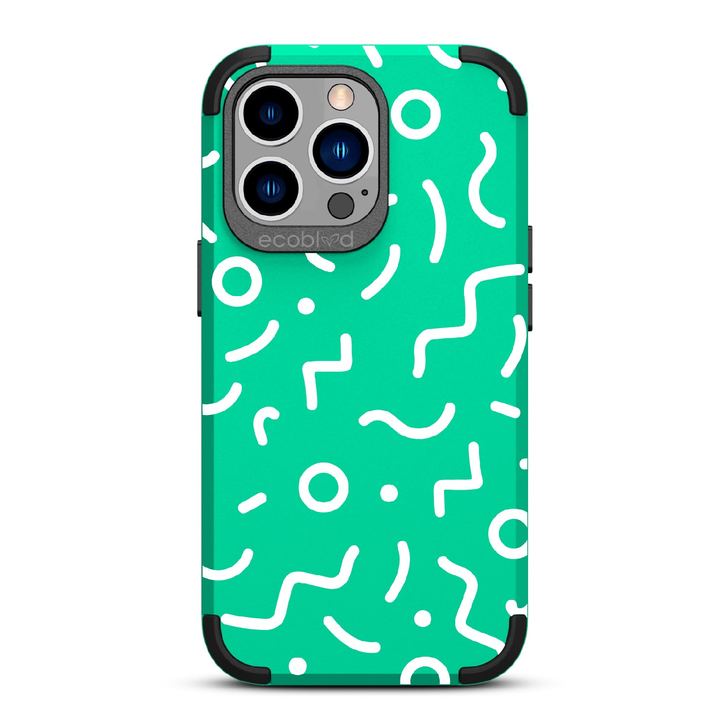 A throwback to Saturday morning cartoons, the 90's Kids design on our Mojave rugged and compostable iPhone 13 Pro case features wavy, squiggly, bold lines and circles offering a "totally radical" look in all five colors: Midnight Black, Cascade Blue, Foliage Green, Illuminating Yellow, and Wildflower Pink.
