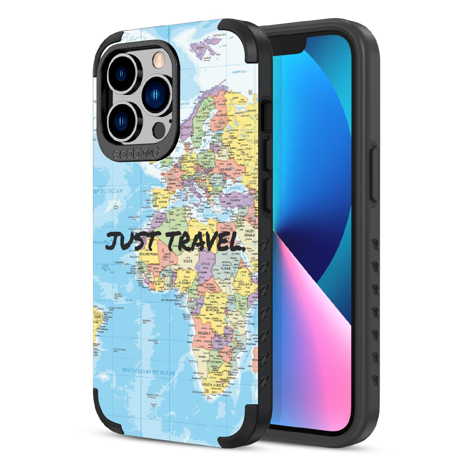 The Just Travel design on our Mojave rugged iPhone 13 Pro case is your daily nudge to let go of the routine and lose yourself in the beauty of the unknown. Its bold map backdrop is a call to action—a call to just travel, to explore without limits, and to discover the rich diversity of cultures that make up our world. With this design, every day is a step closer to your next great adventure.