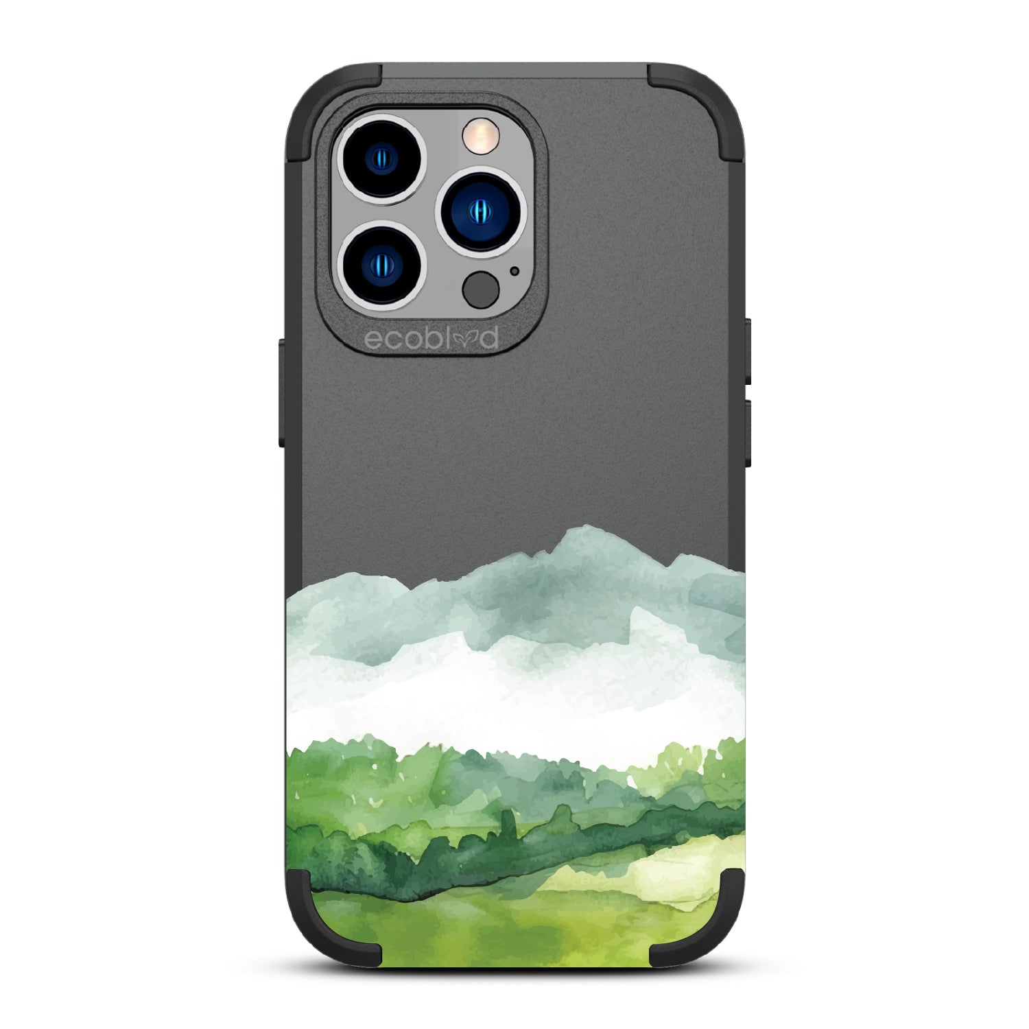 The view is endless, just like the possibilities. The Open Horizon design on our Mojave rugged and compostable iPhone 13 Pro case layers soft washes of green and misty blue, stretching like rolling hills beneath an open sky. The watercolor effect creates a serene, boundless landscape, a quiet reminder that there’s always more to explore.
