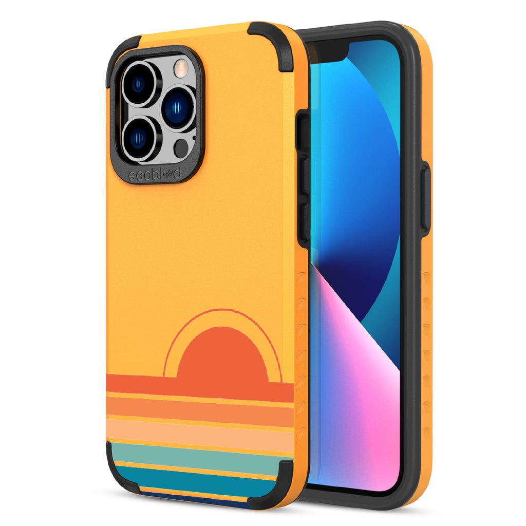 Even for those who aren't early birds, the Rise n' Shine design on our Mojave rugged and compostable iPhone 13 Pro case illuminates your style with a vintage sunny morning glow with beaming gradient rays. Choose from two vibrant colorways: Midnight Black, and Illuminating Yellow.