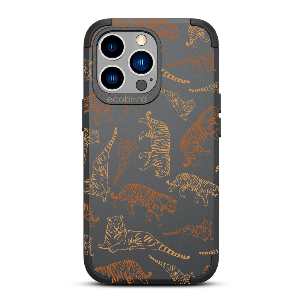 Embrace the untamed allure of the jungle with the Tiger Pride design on our Mojave rugged and compostable iPhone 13 Pro case. Let the fierce presence of tigers transport you to a world of unparalleled elegance and strength. Experience the perfect blend of impeccable style and protection while championing ocean conservation efforts. Unleash your party animal instincts and show off your Tiger Pride! With its eye-catching orange and yellow tiger silhouettes, this case adds a touch of playful ferocity to your device, ensuring it becomes the center of attention and the symbol of your wild, fun-loving personality.