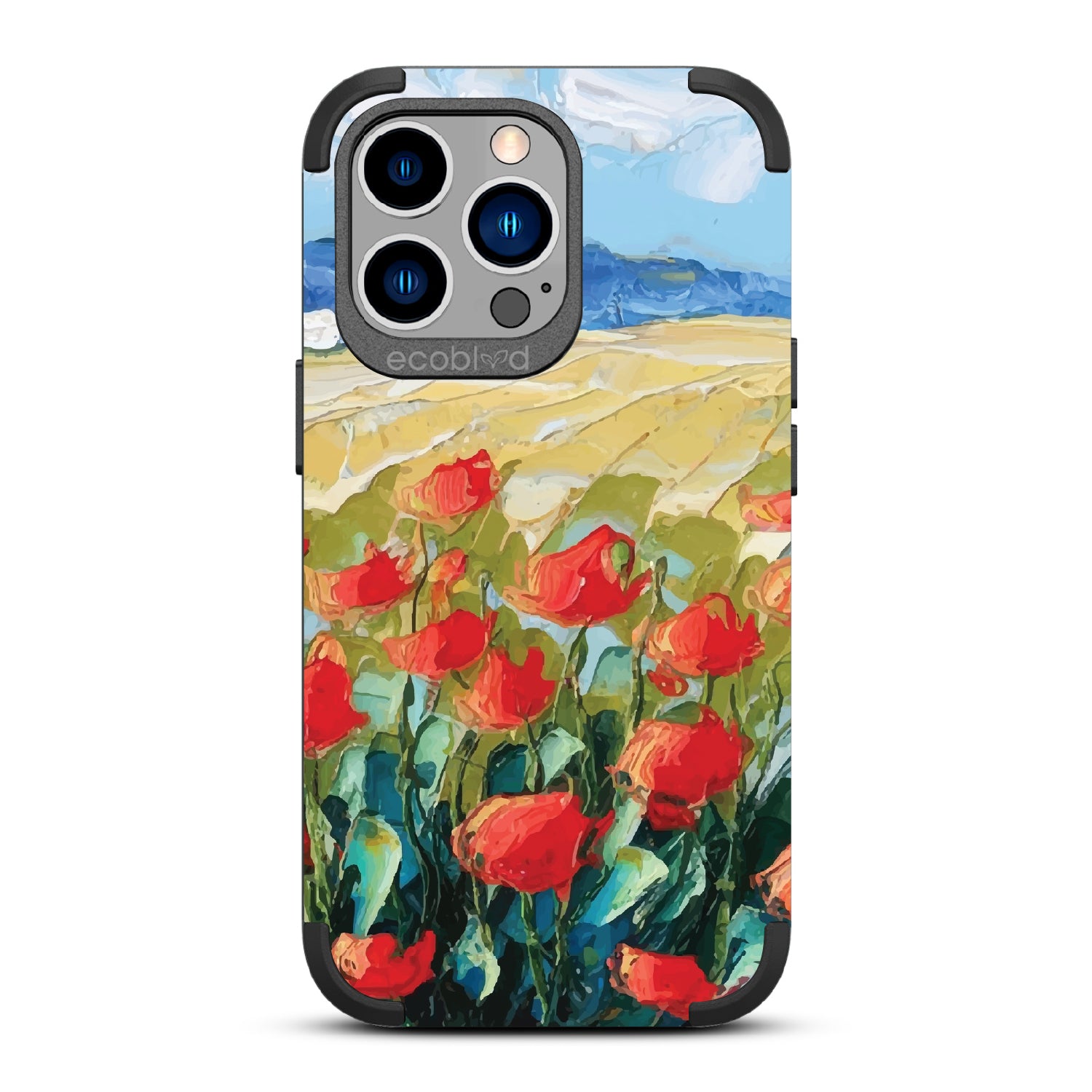 Looks can lull. The Sleepy Bloom design on our Mojave rugged and compostable iPhone 14 Pro Max case surrounds bold poppies with diffused light and stillness, creating a moment so vivid it could almost close your eyes for you. Soft. Lush. Spell-like.