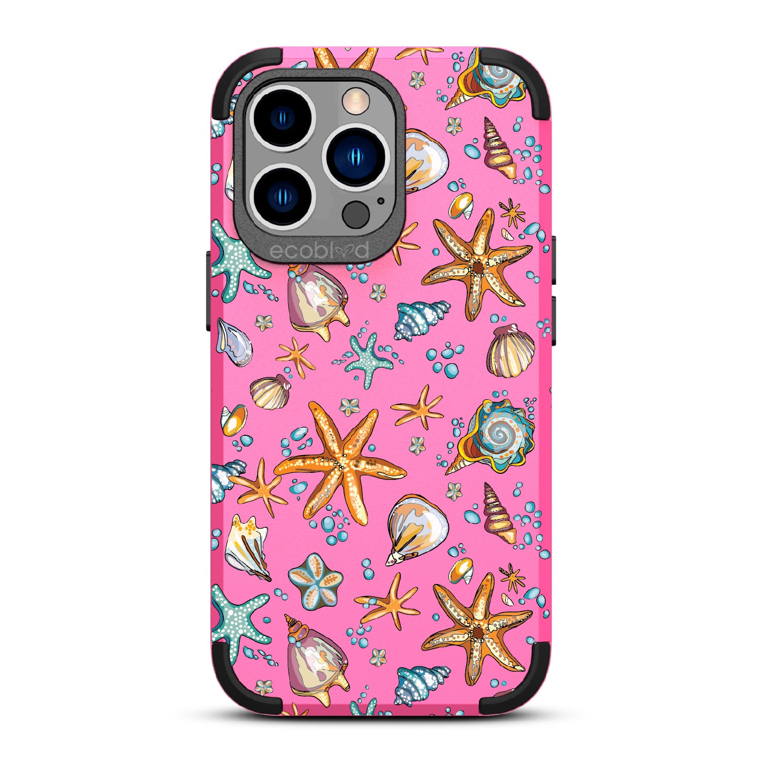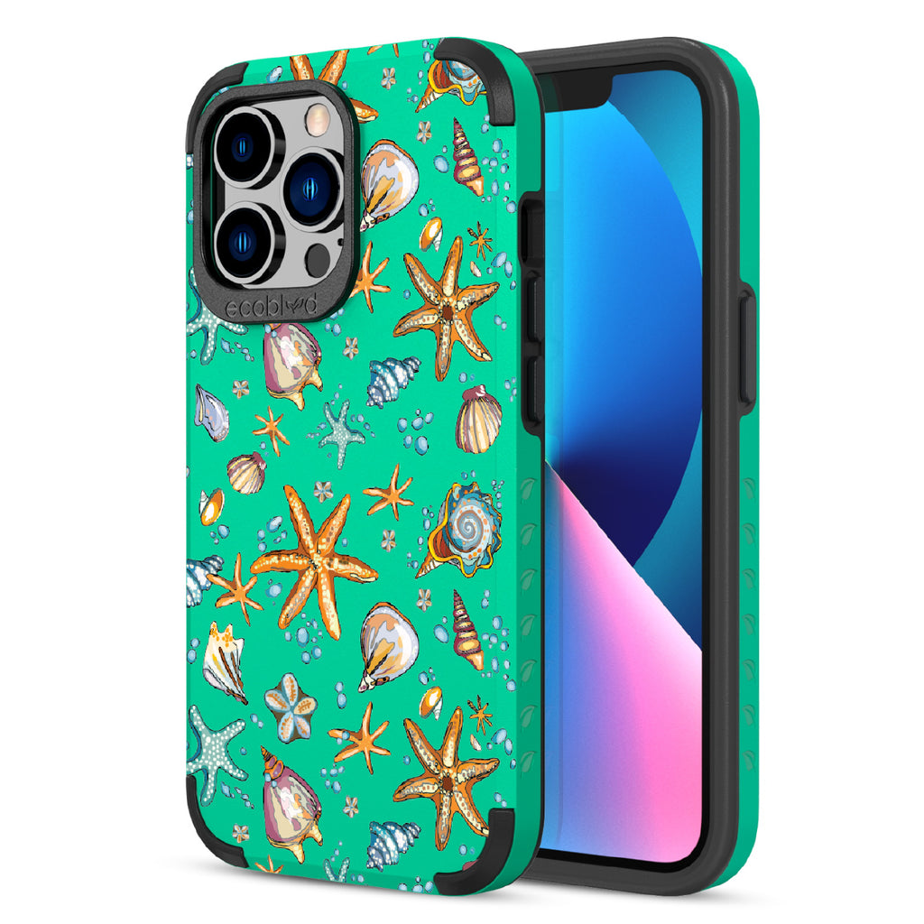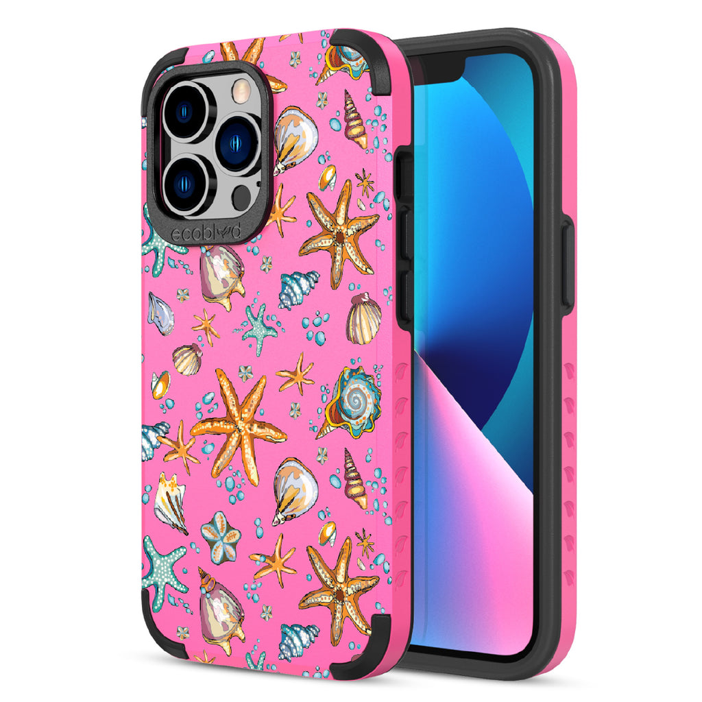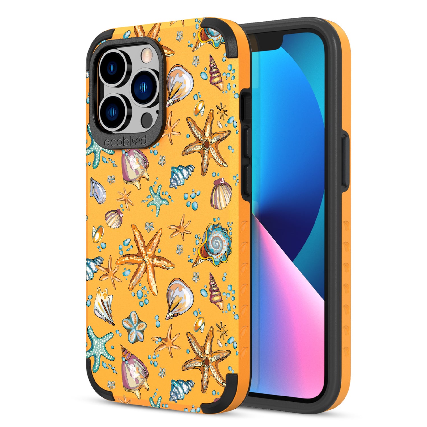 She sells seashells… and now you can carry them with you wherever you go! The By The Sea Shore design on our Mojave rugged and compostable iPhone 12 Pro Max phone case & iPhone 13 Pro Max phone case is a beachcomber’s dream, featuring an array of seashells and starfish scattered across a sandy seashore. It’s like a walk on the beach, minus the sand between your toes.