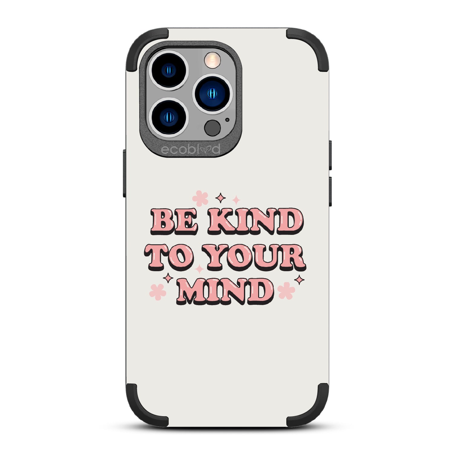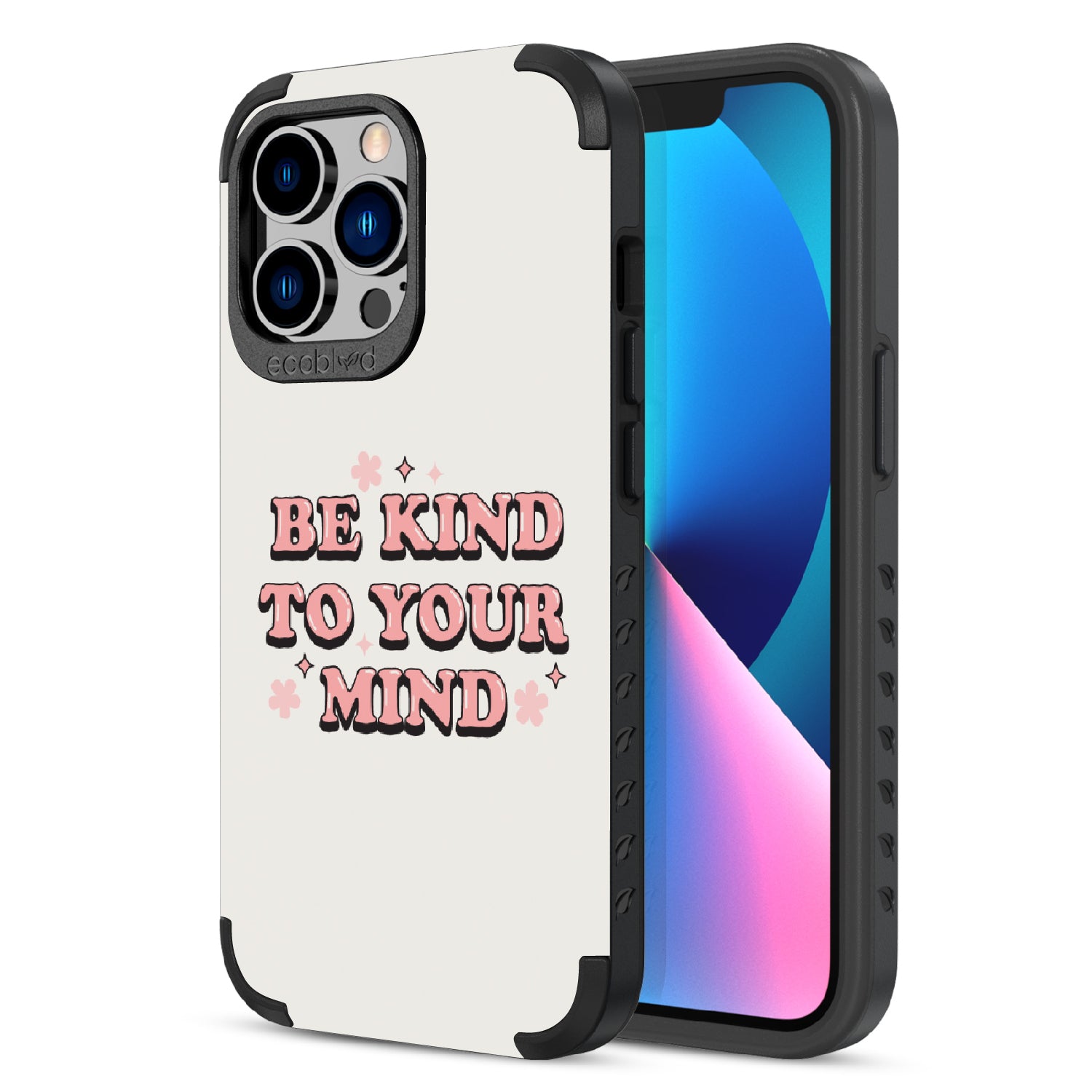 Unwind and nurture your mind with the motivational Be Kind To Your Mind design on our Mojave rugged and compostable iPhone 12 Pro Max case & iPhone 13 Pro Max case. This design is an active participant in your journey toward self-kindness, helping you foster a positive and nurturing connection with your mind. You can use each interaction as an opportunity to be kind to yourself.