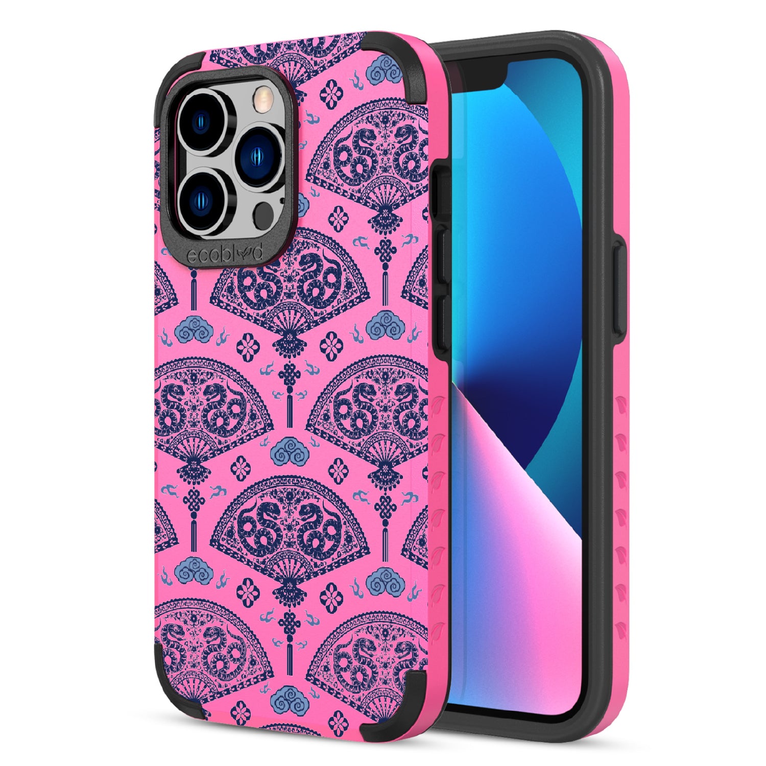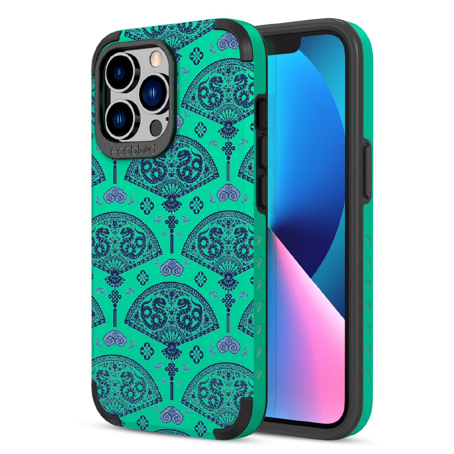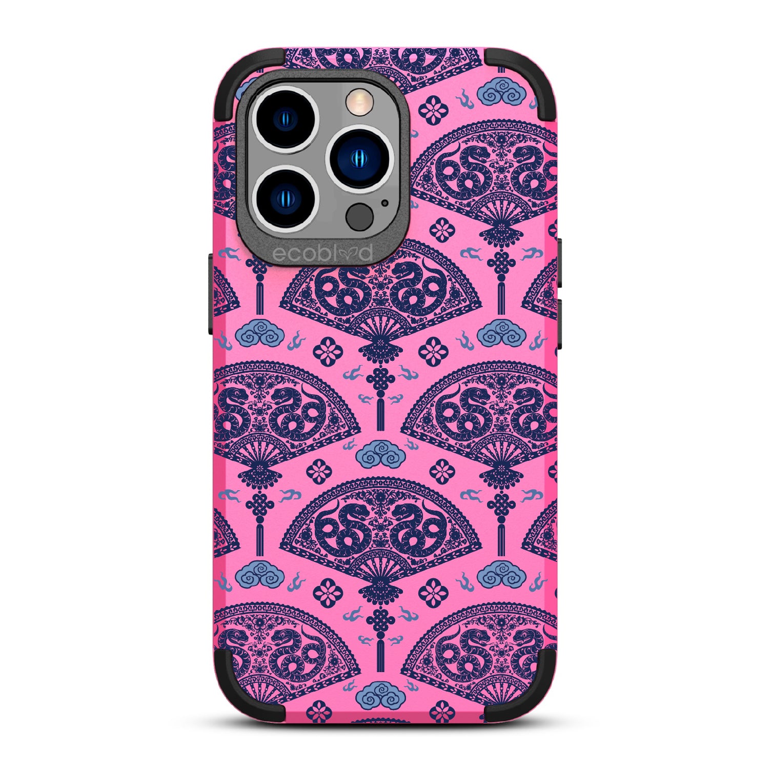 Let the winds of good fortune blow your way with the Fanning Fortune design on our Mojave rugged and compostable iPhone 13 Pro Max case and iPhone 12 Pro Max case. Golden serpents coil through beautifully detailed fans, a symbol of protection and prosperity for the Year of the Snake. The blue and yellow hues reflect the harmony between calmness and vitality, setting the tone for a year filled with new opportunities and growth.