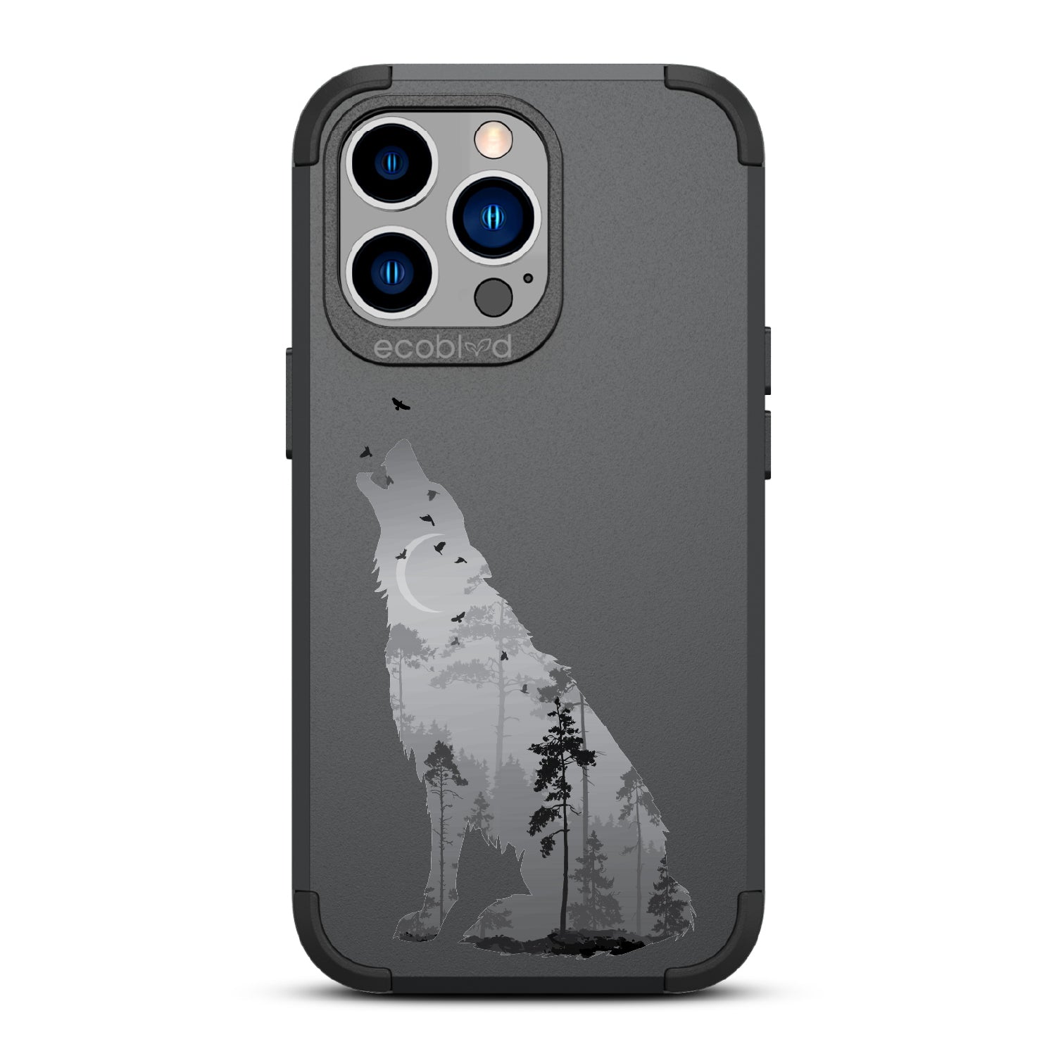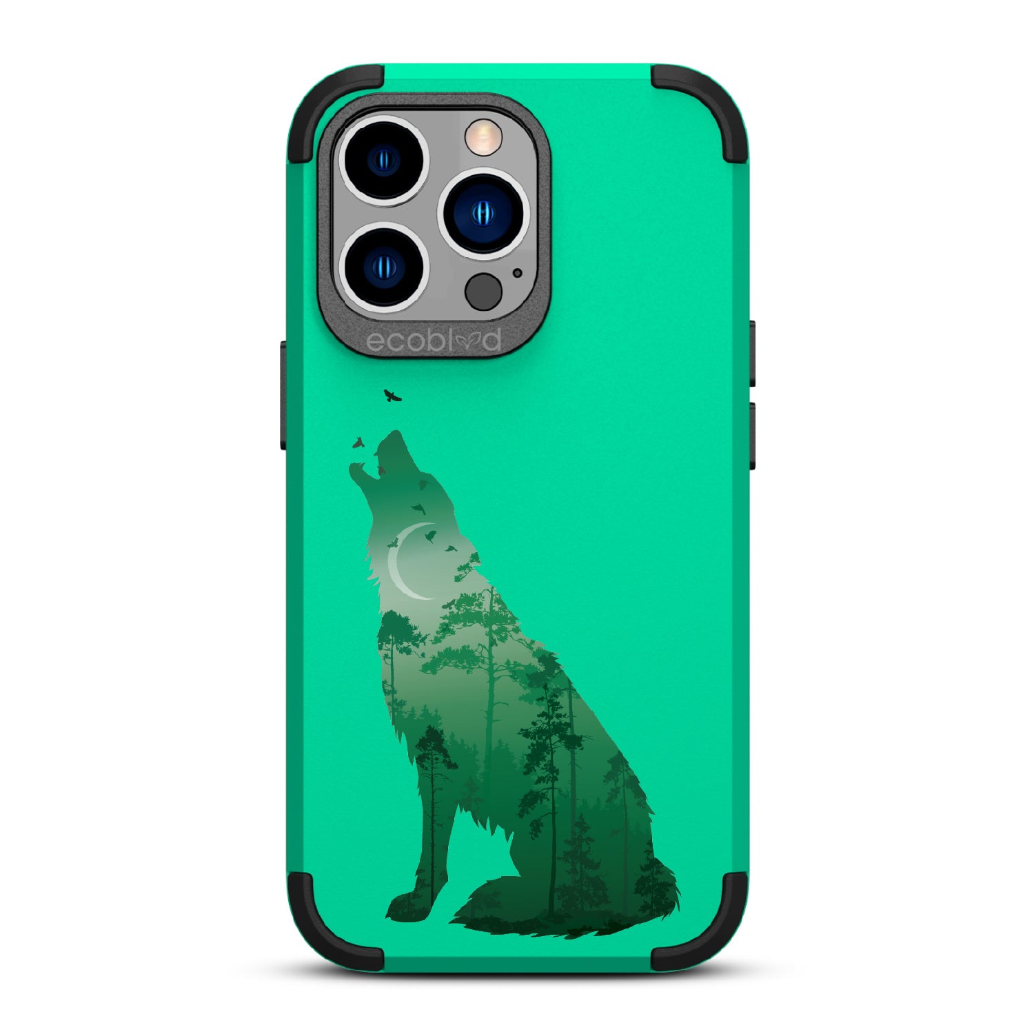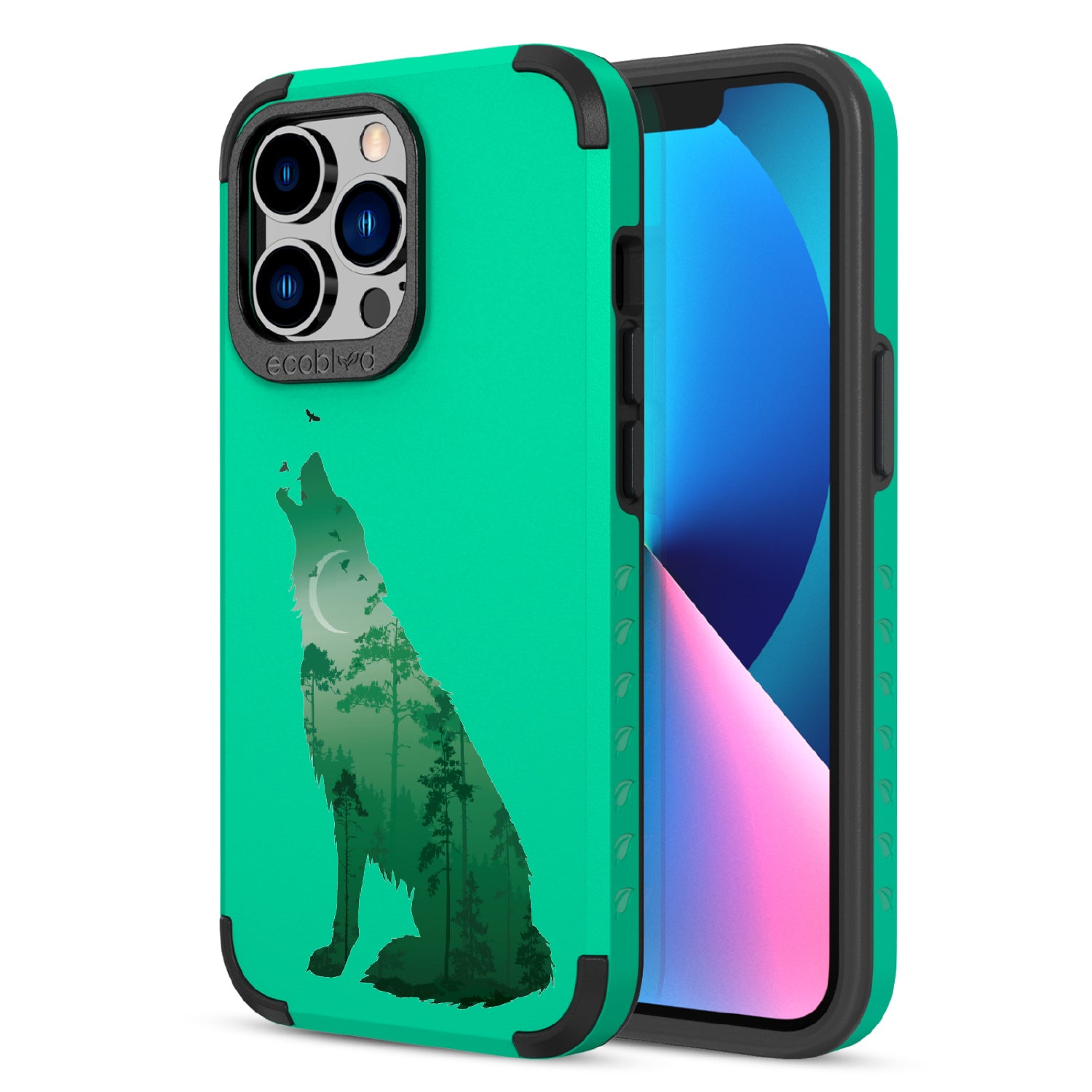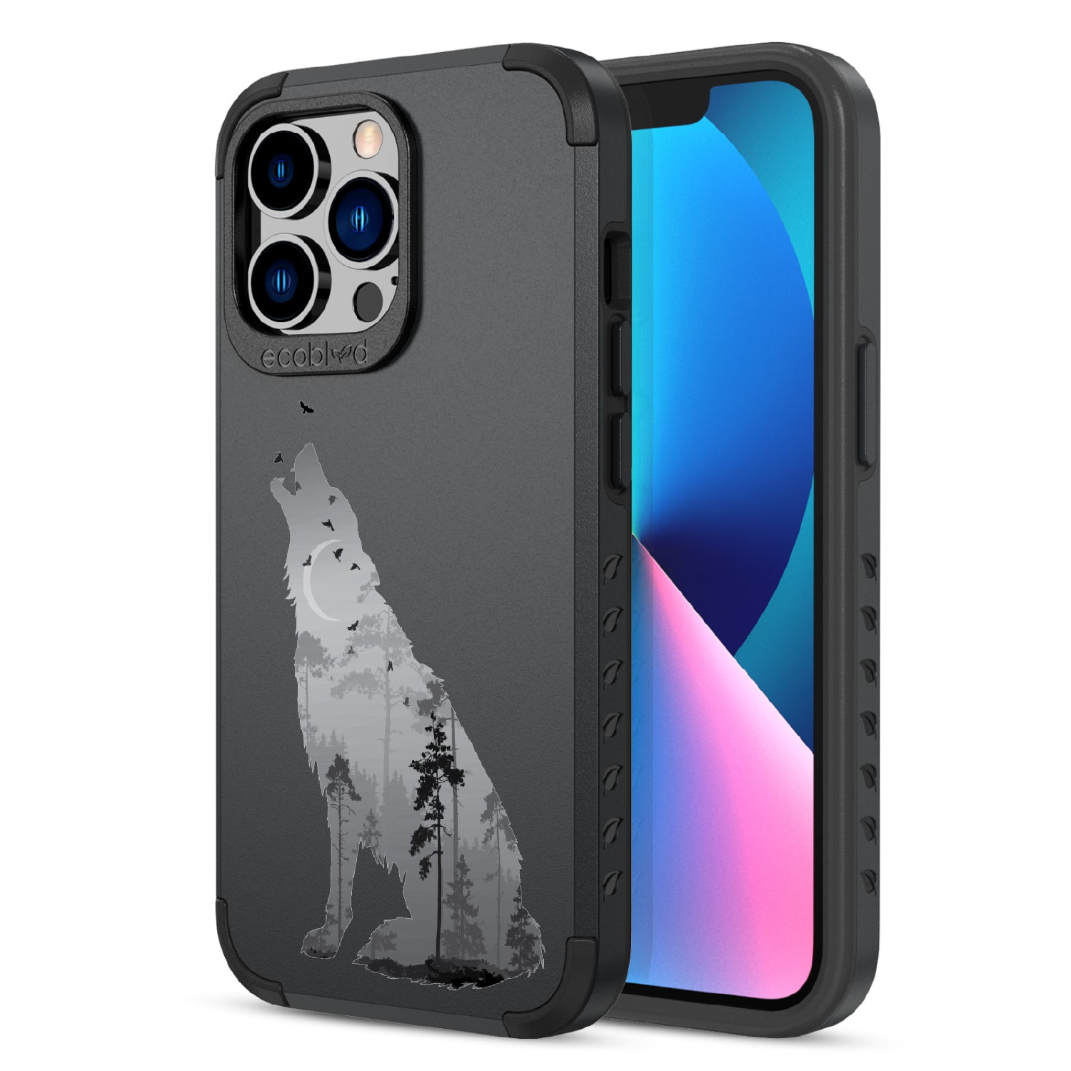 Embrace your wild side as the Howl At The Moon design on our Mojave rugged and compostable iPhone 12 Pro Max phone case & iPhone 13 Pro Max phone case transforms your iPhone into an enchanting moonlit woodland with a howling wolf prowling through the darkness. Choose from five vibrant color options: Midnight Black, Cascade Blue, Foliage Green, Illuminating Yellow, and Wildflower Pink.