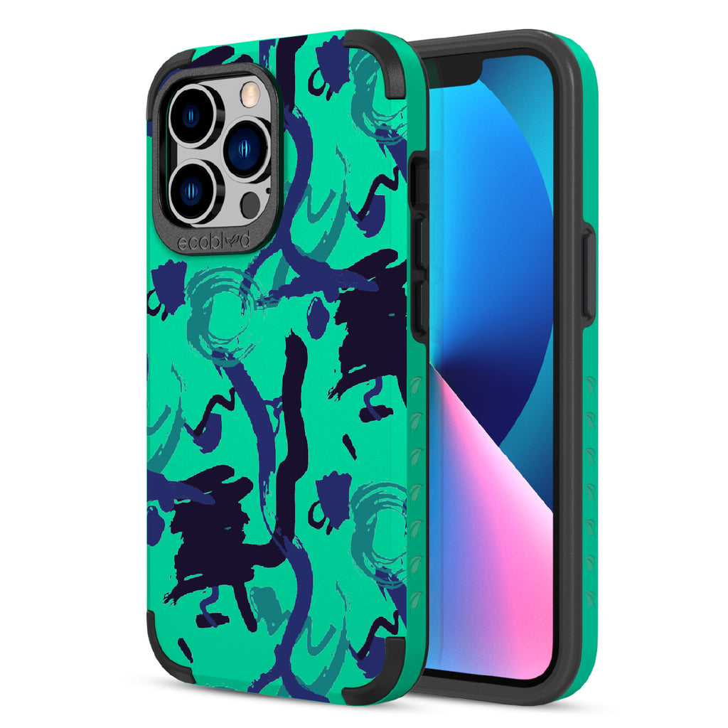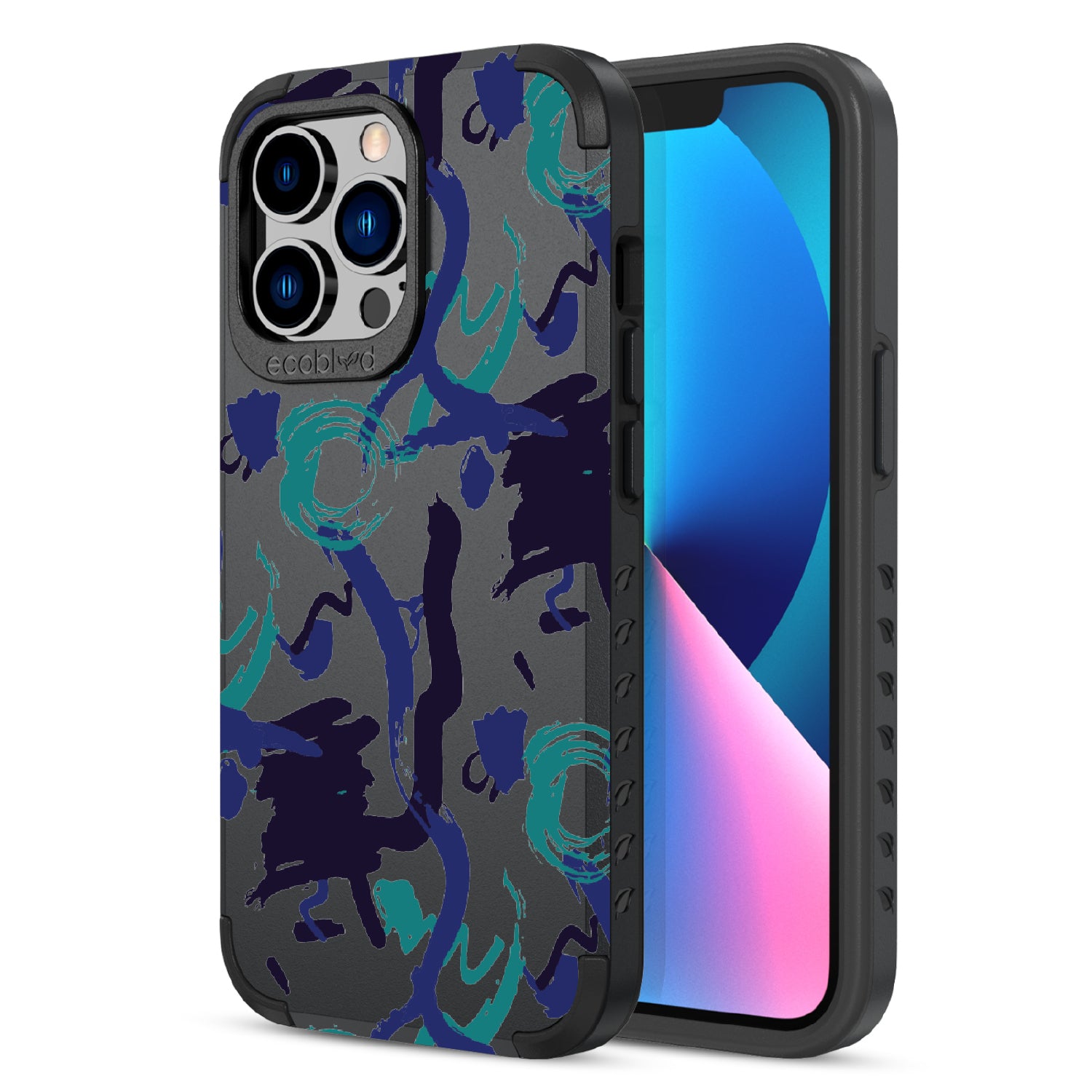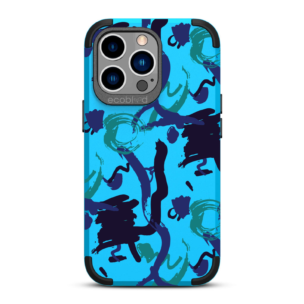 The swirling brushwork of the Out Of The Blue design on our Mojave rugged and compostable iPhone 12 Pro Max case & iPhone 13 Pro Max case is a testament to the power of creative inspiration striking at any moment - it's an ode to those moments when something extraordinary is conjured seemingly out of nowhere, much like this unique and captivating design. Available in three colorways: Midnight Black, Cascade Blue, and Foliage Green.