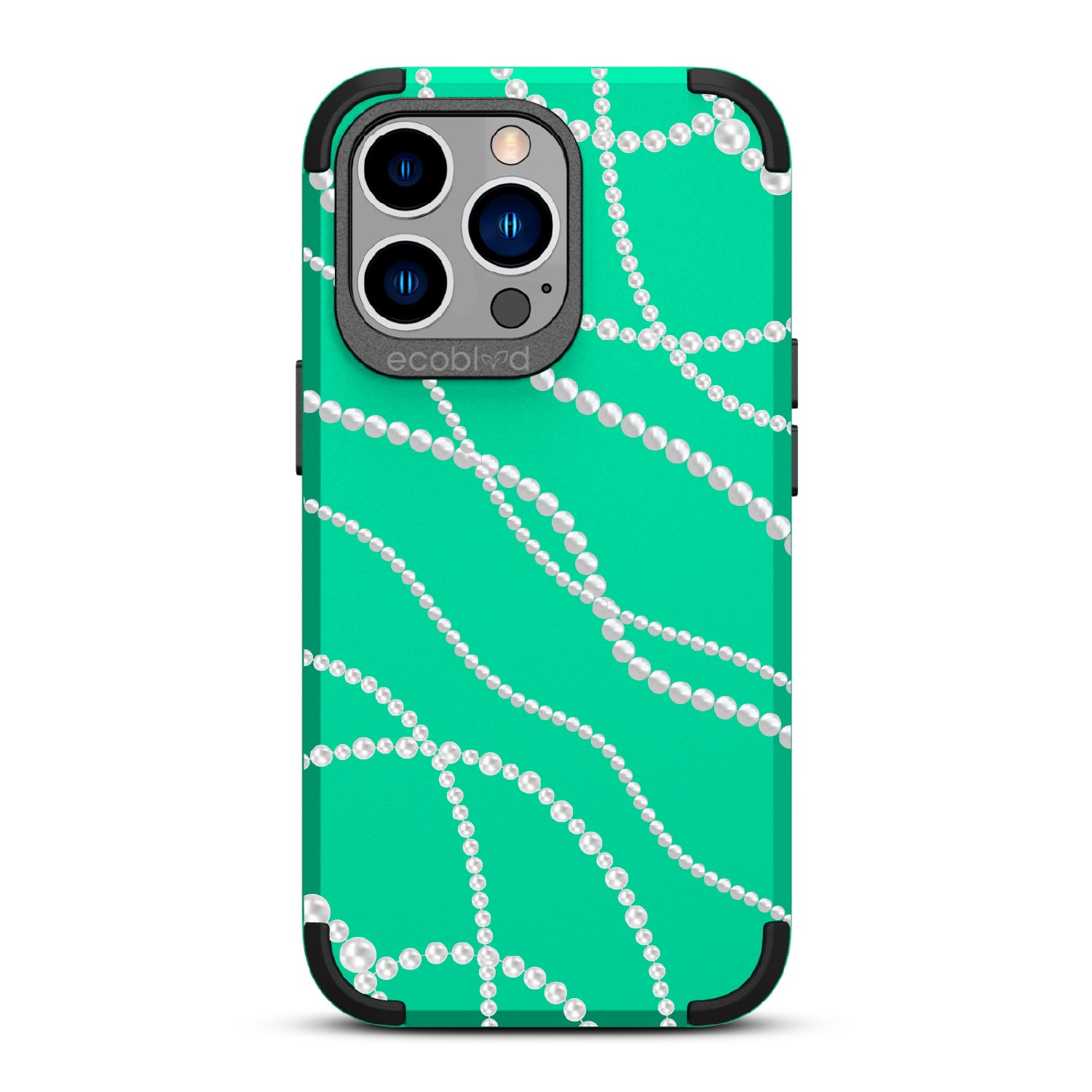 Pearls are the ocean’s way of saying “good things take time.” The Precious Pearls design on our Mojave rugged and compostable iPhone 12 Pro Max phone case & iPhone 13 Pro Max phone case captures this sentiment perfectly, with intricate strands of pearls that ripple across your phone like waves in the sea. It’s a design that celebrates patience, beauty, and the rewards that come with both.