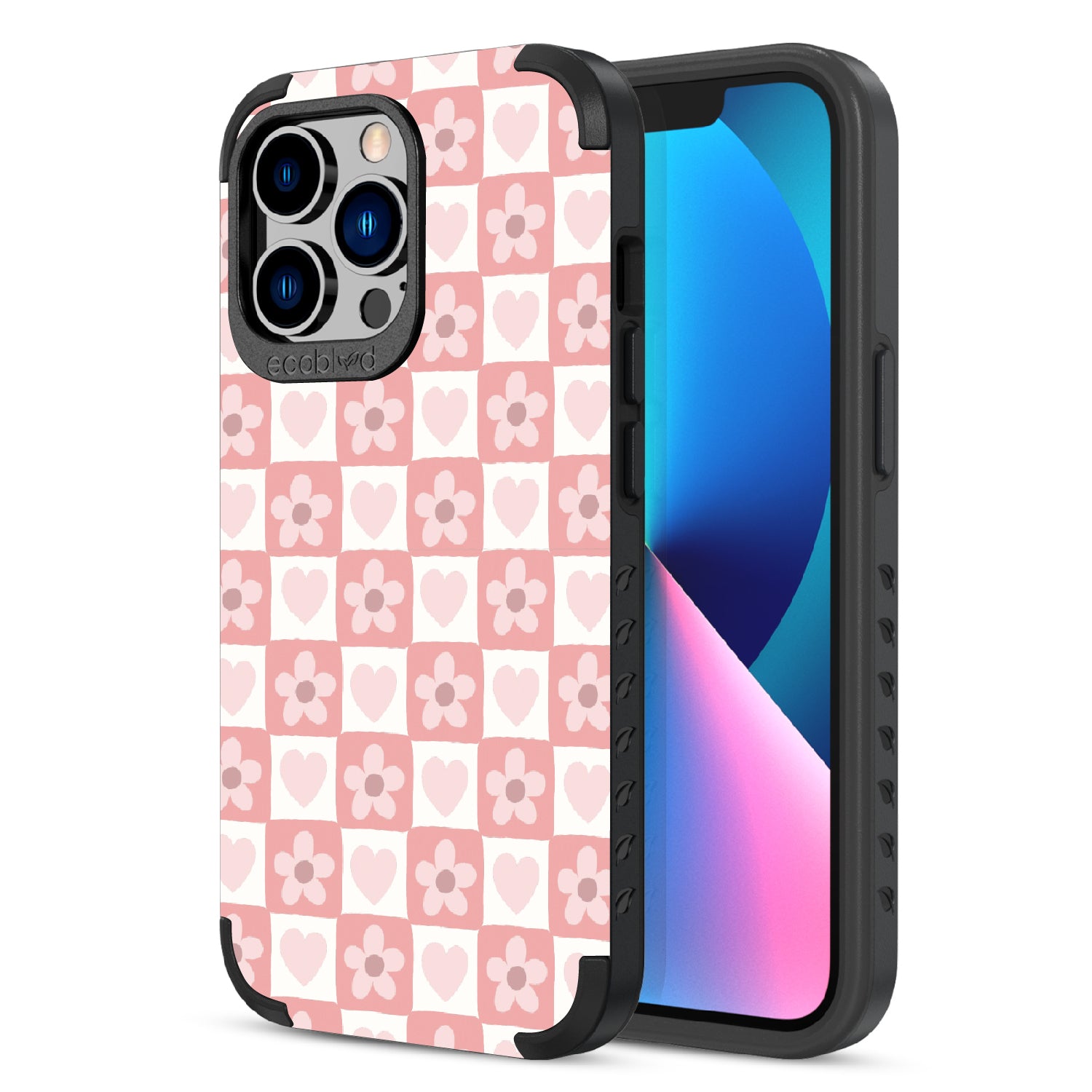 iPhone 12 Pro Max phone case & iPhone 13 Pro Max phone case. Adorned with hearts and flowers, this girly checker print pattern brings a sweet yet strategic flair to your phone. Each piece is a step towards fashion wins.