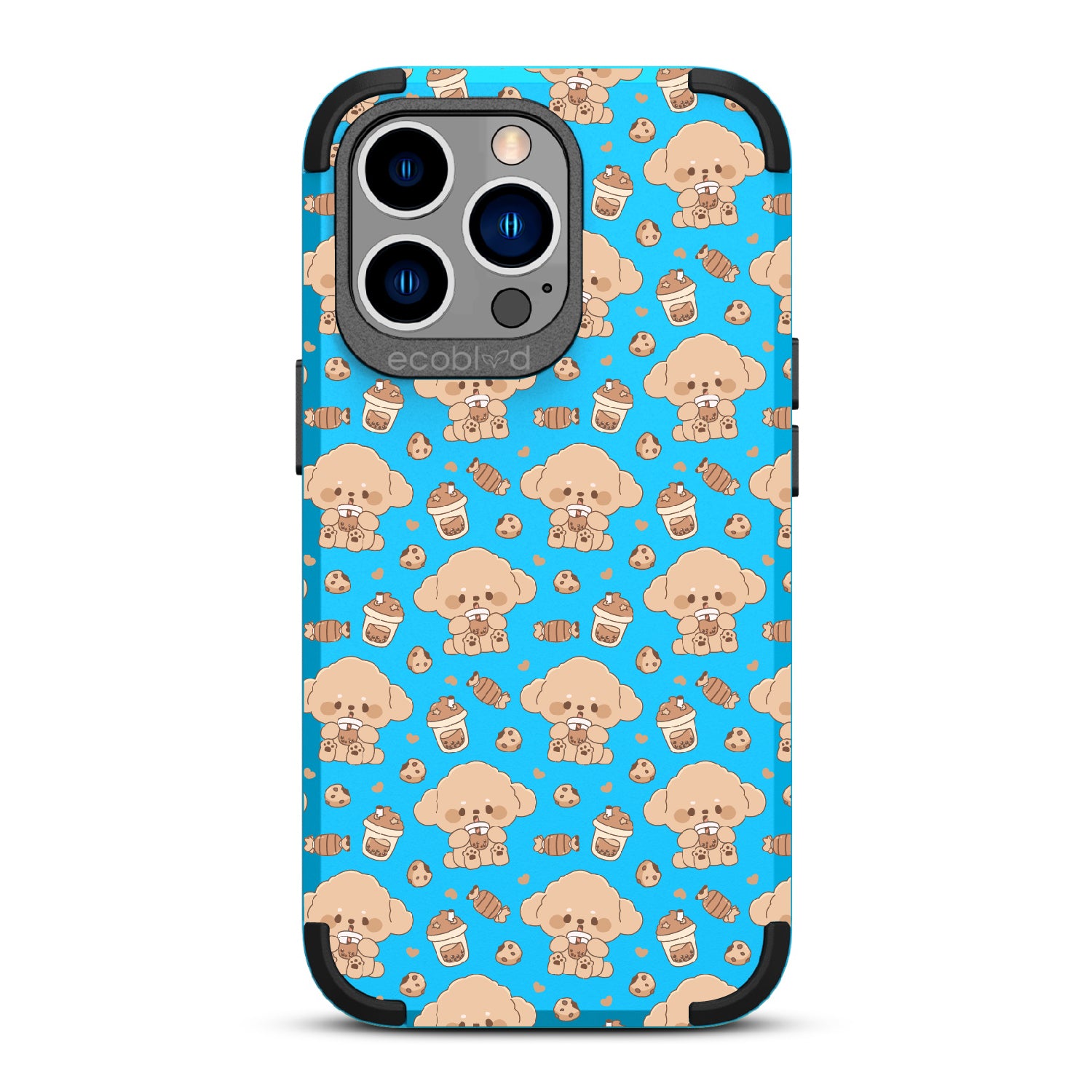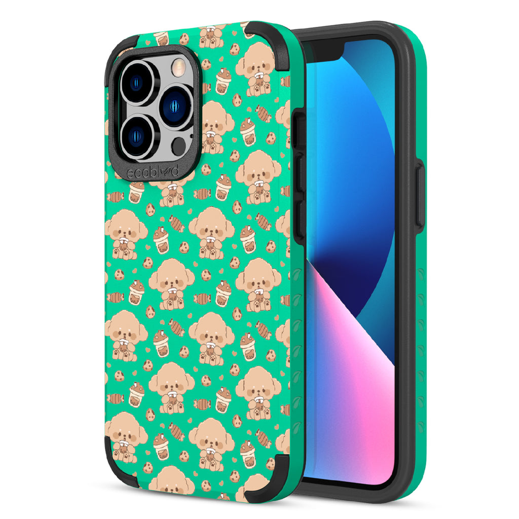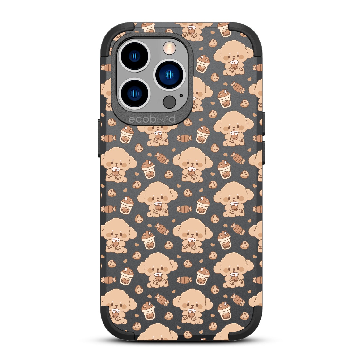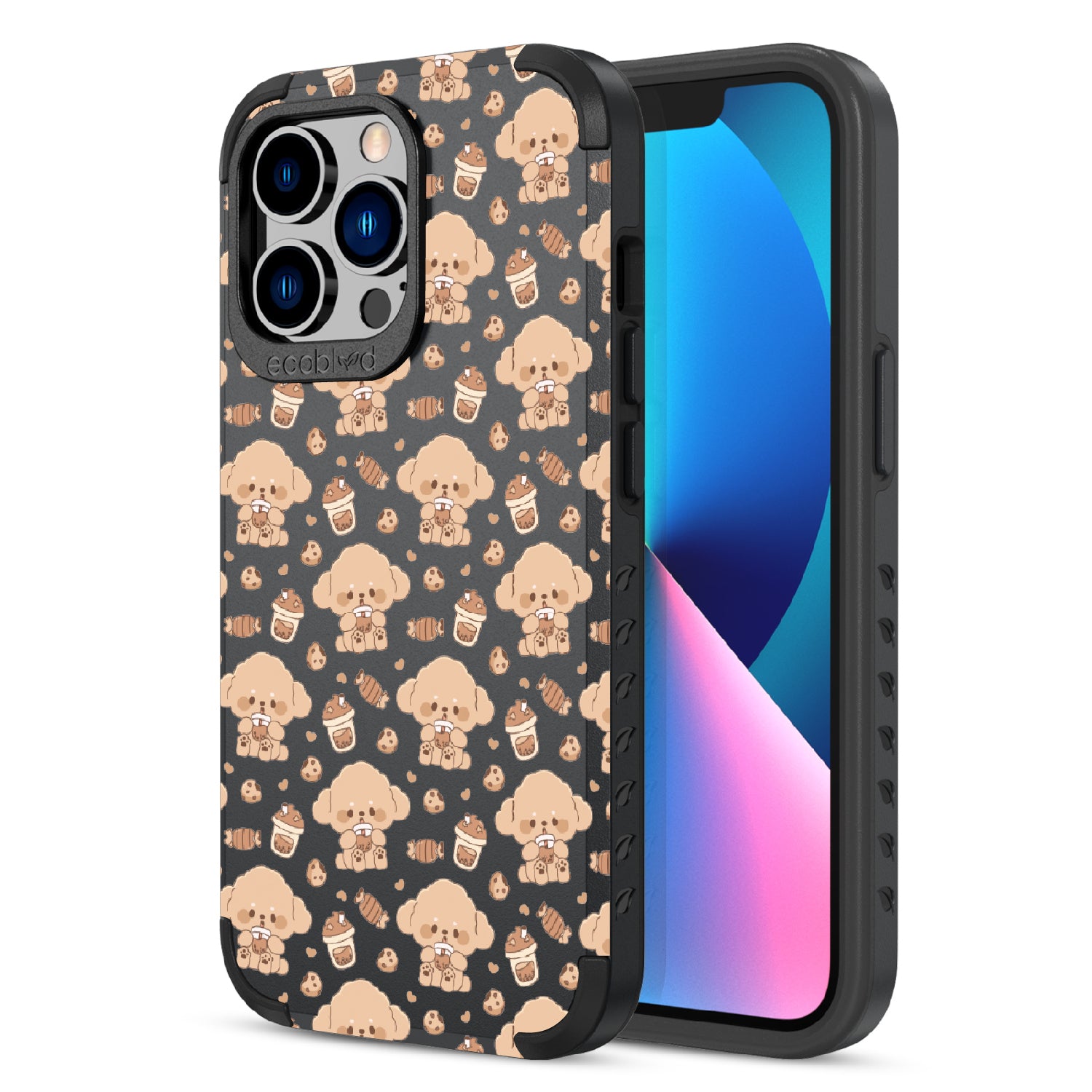 A pup cup for them, a coffee for you. The Pupaccino design on our Mojave rugged and compostable iPhone 13 Pro Max case and iPhone 12 Pro Max case captures the joy of coffee runs with your furry best friend, blending happy pups, frothy drinks, and pastries into one delightful look. Perfect for dog lovers who never skip a treat.