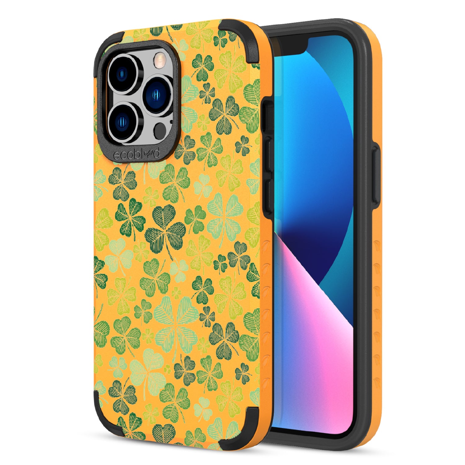Turn your luck around with the vibrant Shamrock design on our Mojave rugged and compostable iPhone 12 Pro Max case & iPhone 13 Pro Max case, where every leaf whispers tales of fortune and fate. Adorned with a sea of green four-leaf clovers, this design is a true emblem of luck, designed to bring a touch of charm.