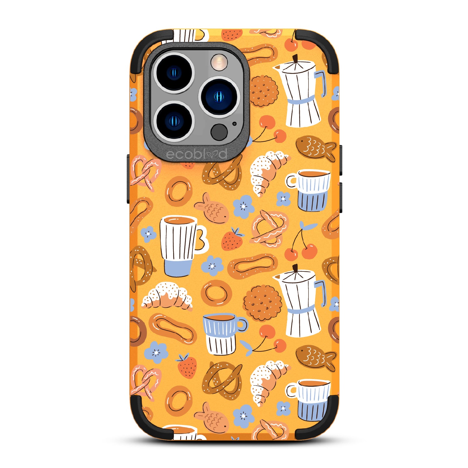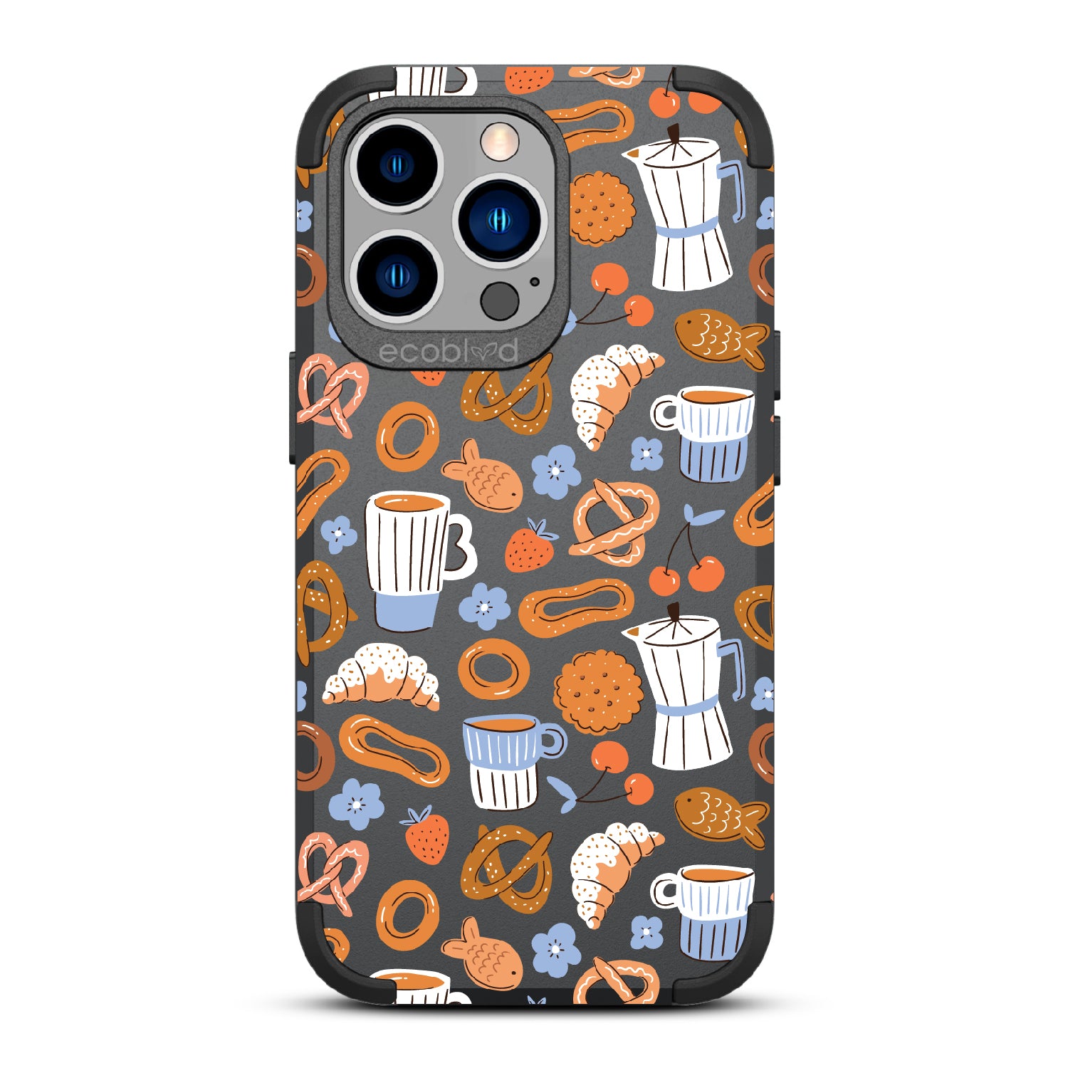 Welcome to The Breakfast Club, where looks are served. This design on our Mojave rugged and compostable iPhone 13 Pro Max case and iPhone 12 Pro Max case brings together all your favorite brunch essentials—croissants, coffee, and pretzels. It’s the perfect club to kickstart your day, full of flavor, fun, and flair.
