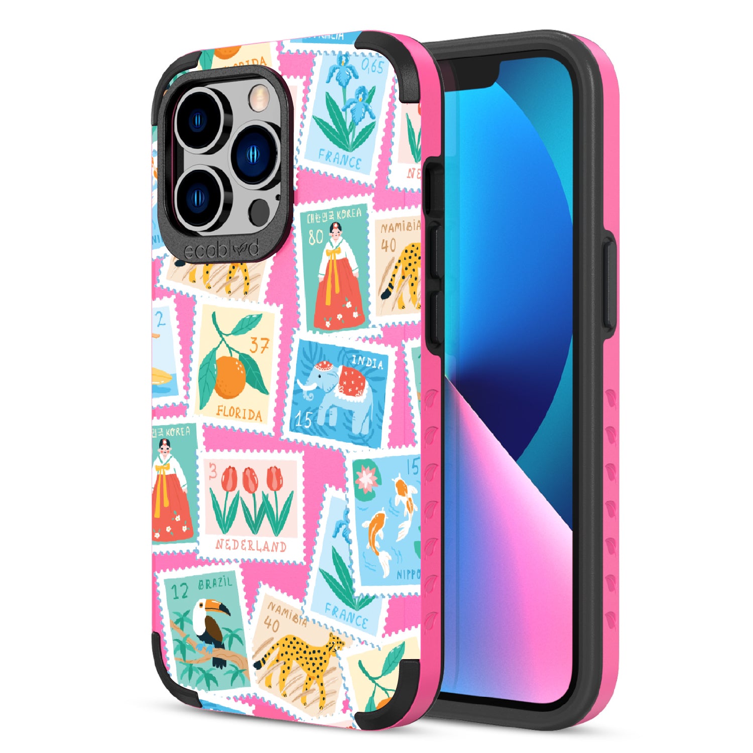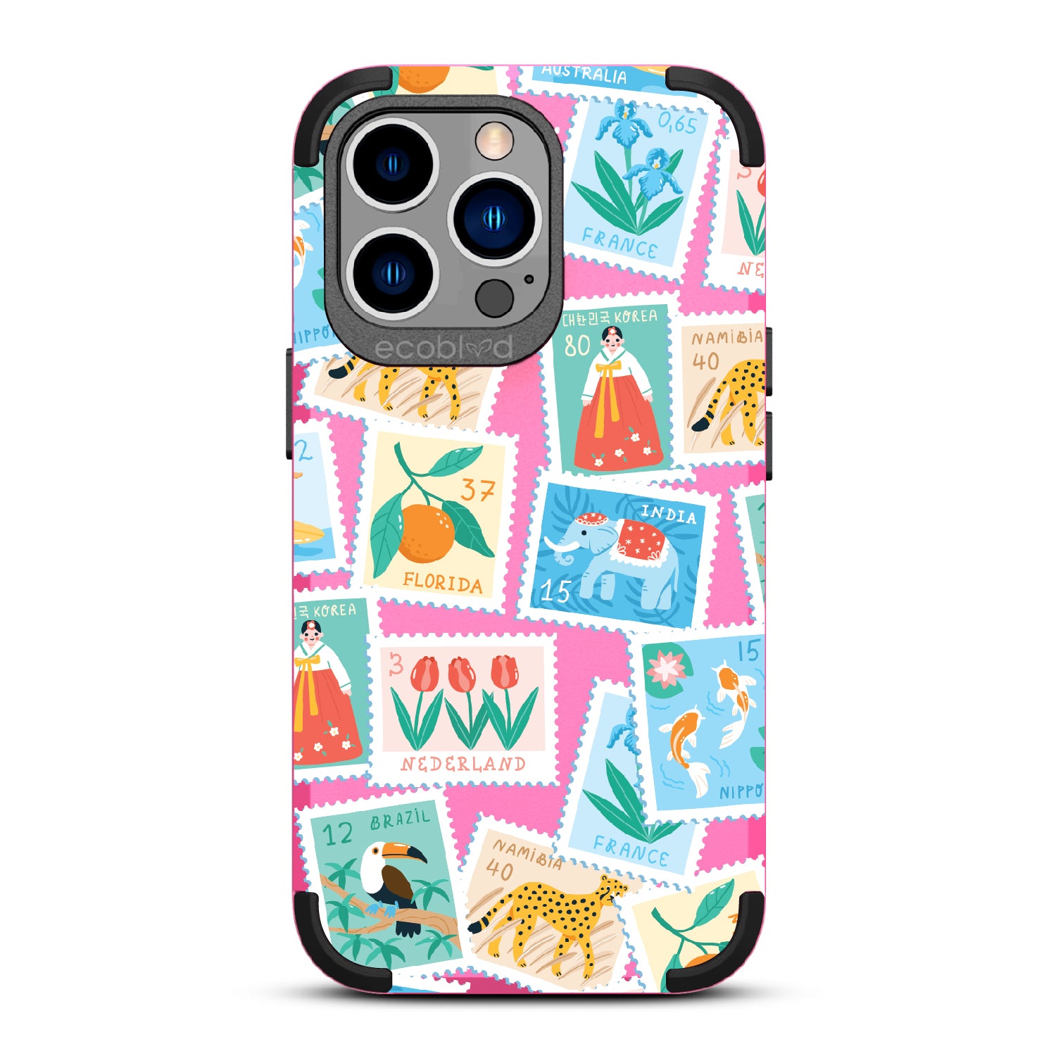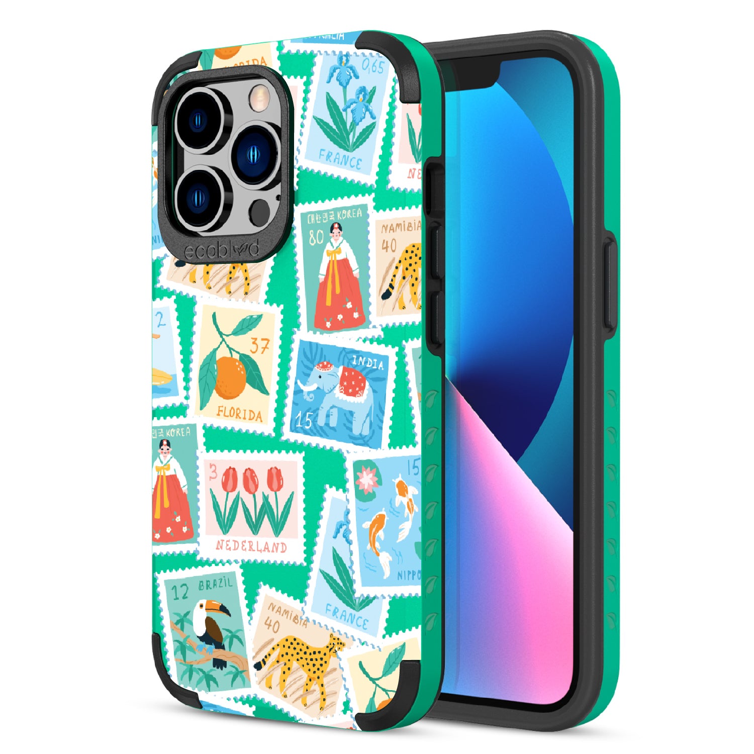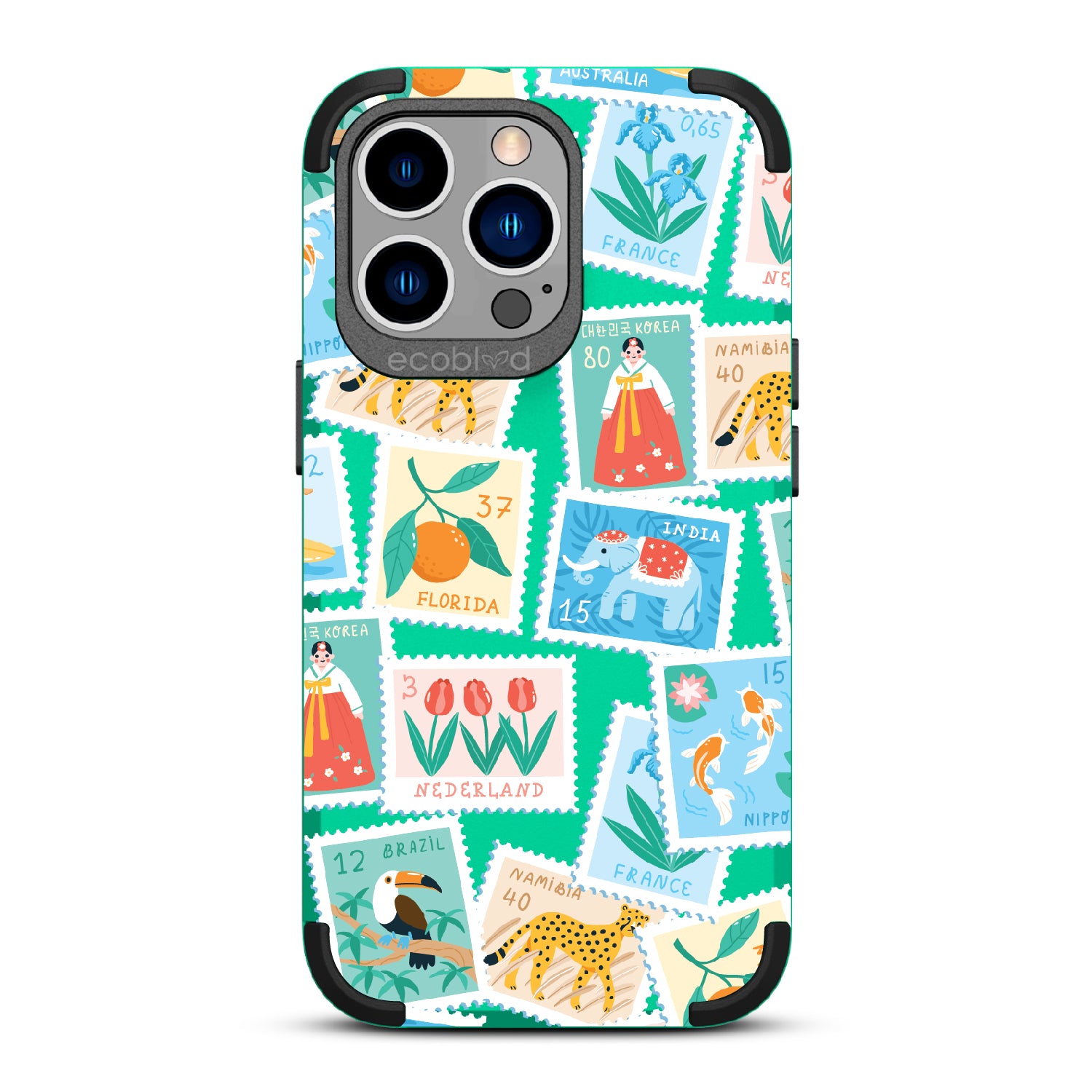 Collect a world of memories with the Wish You Were Here design on our Mojave rugged iPhone 12 Pro Max case and iPhone 13 Pro Max case, a patchwork of postcard-perfect stamps from Florida to France. Each stamp is a window into a new world, an invitation to gather stories from far and wide. Decorate your phone with this mosaic of travel logs, and let it be a colorful collage of all the places that whisper, 'Wish you were here.'