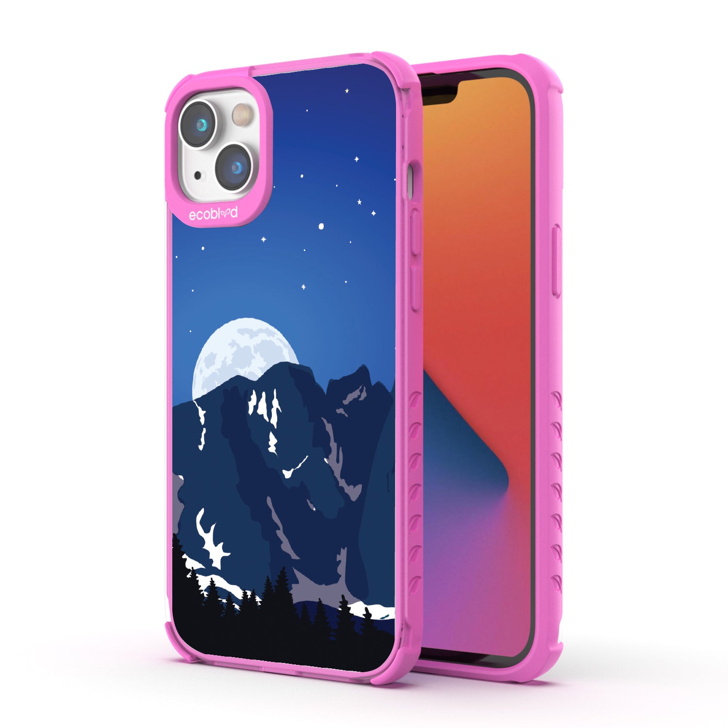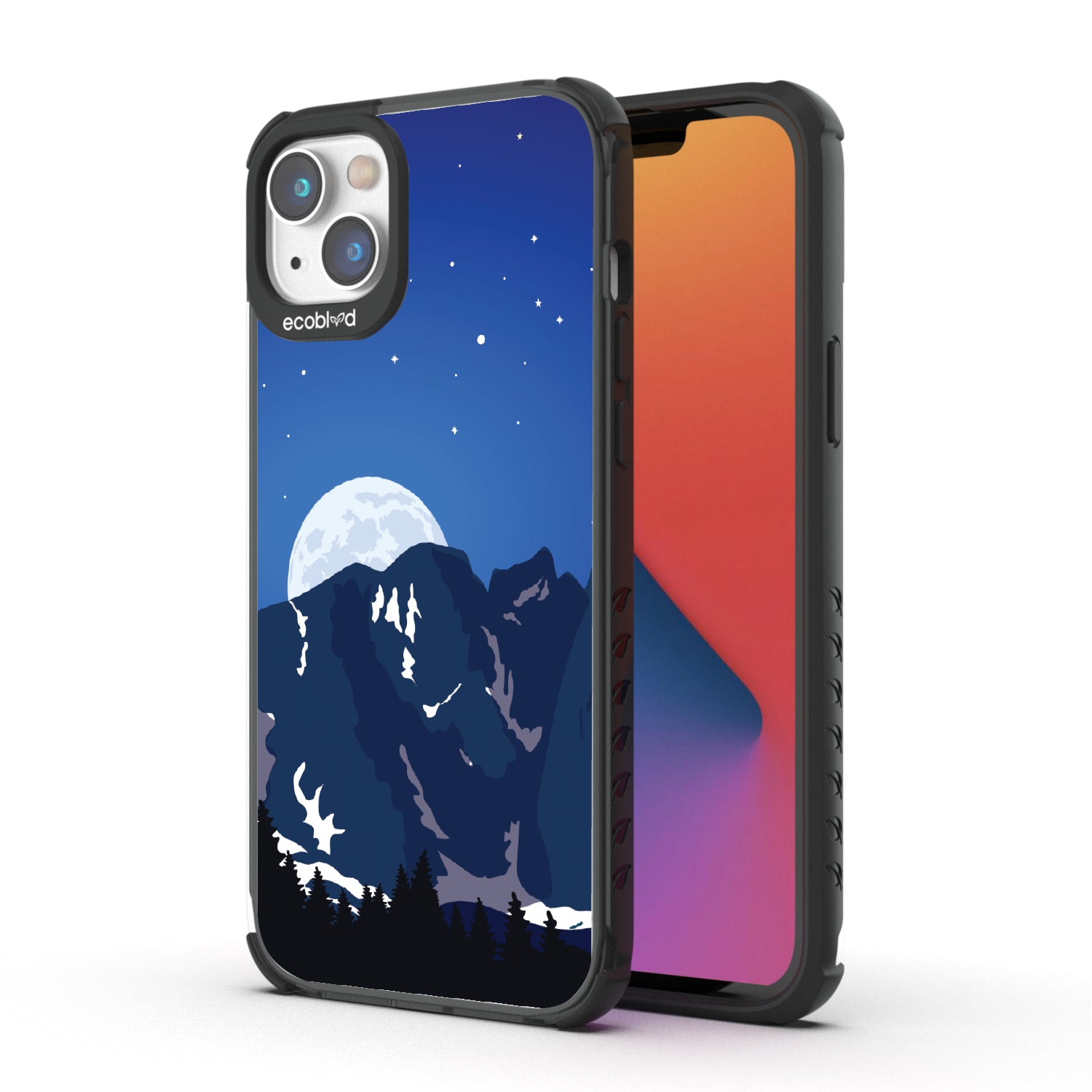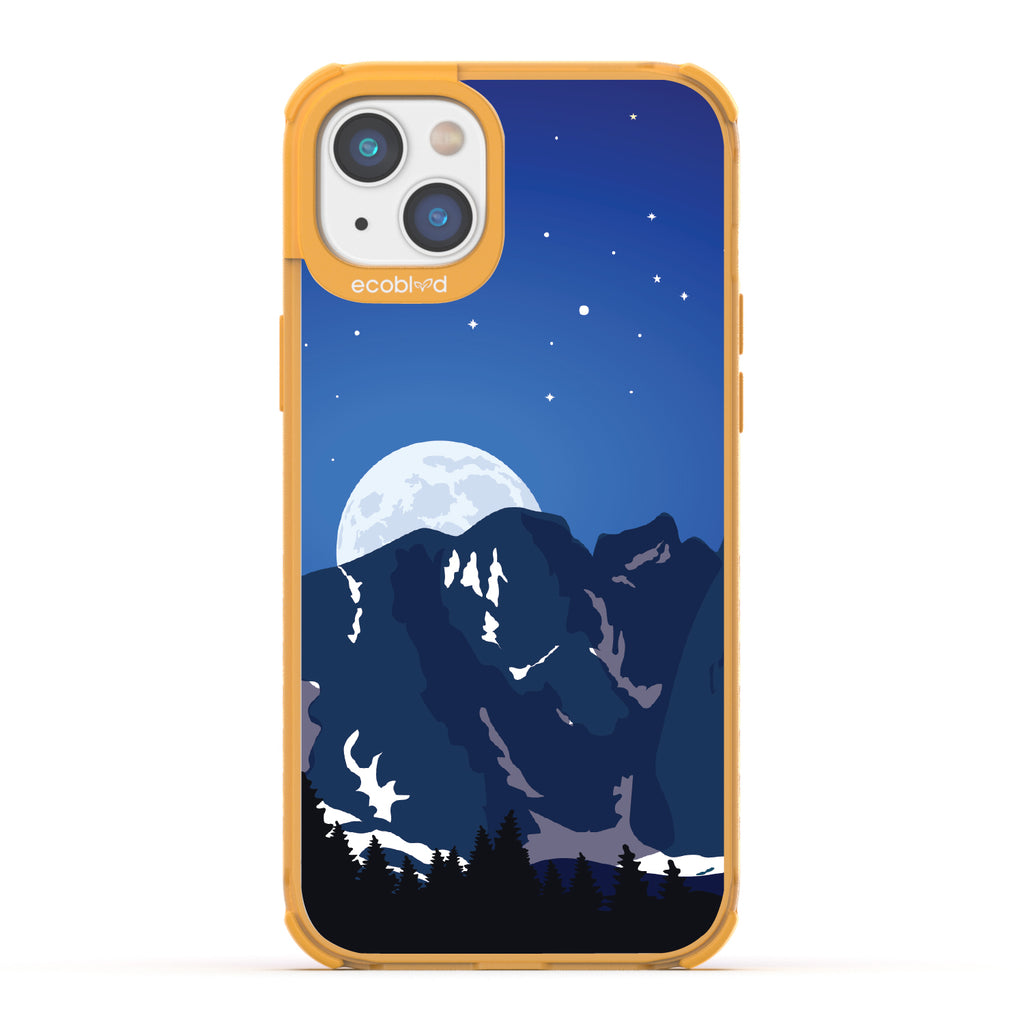 Bask in the ethereal glow of our Alpine Moon design on our Laguna clear iPhone 14 Plus case, where the moon hangs like a luminous pearl against the velvet canvas of the night sky, casting its soft radiance upon the rugged terrain below.