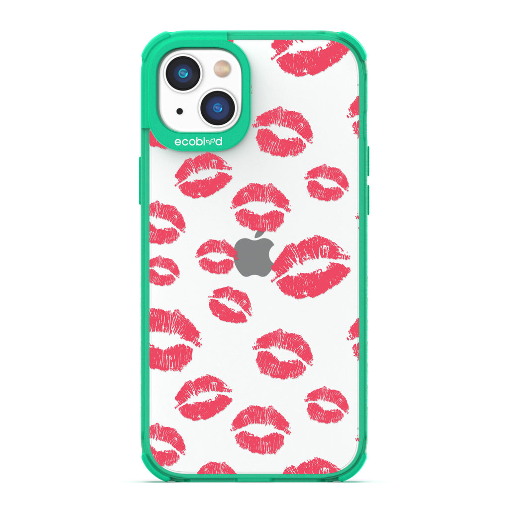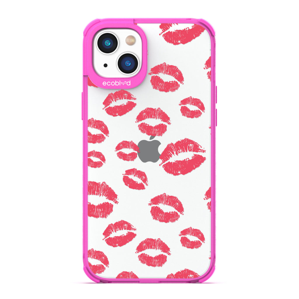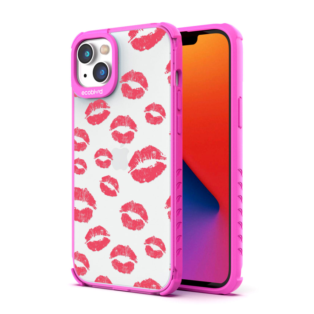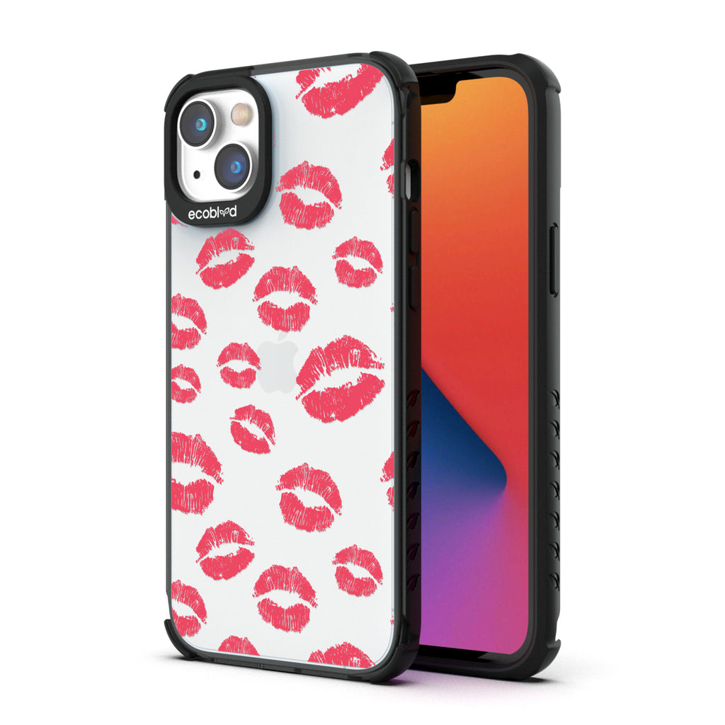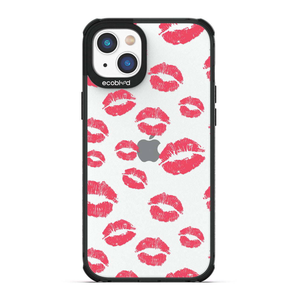Put on your best flirt with our Bisou design on our Laguna clear compostable iPhone 14 Plus case, featuring an array of playful red lipstick kisses that are sure to make any head turn and a touch of je ne sais quoi to your phone on five fierce colorways: Midnight Black, Cascade Blue, Foliage Green, Illuminating Yellow, and Wildflower Pink.