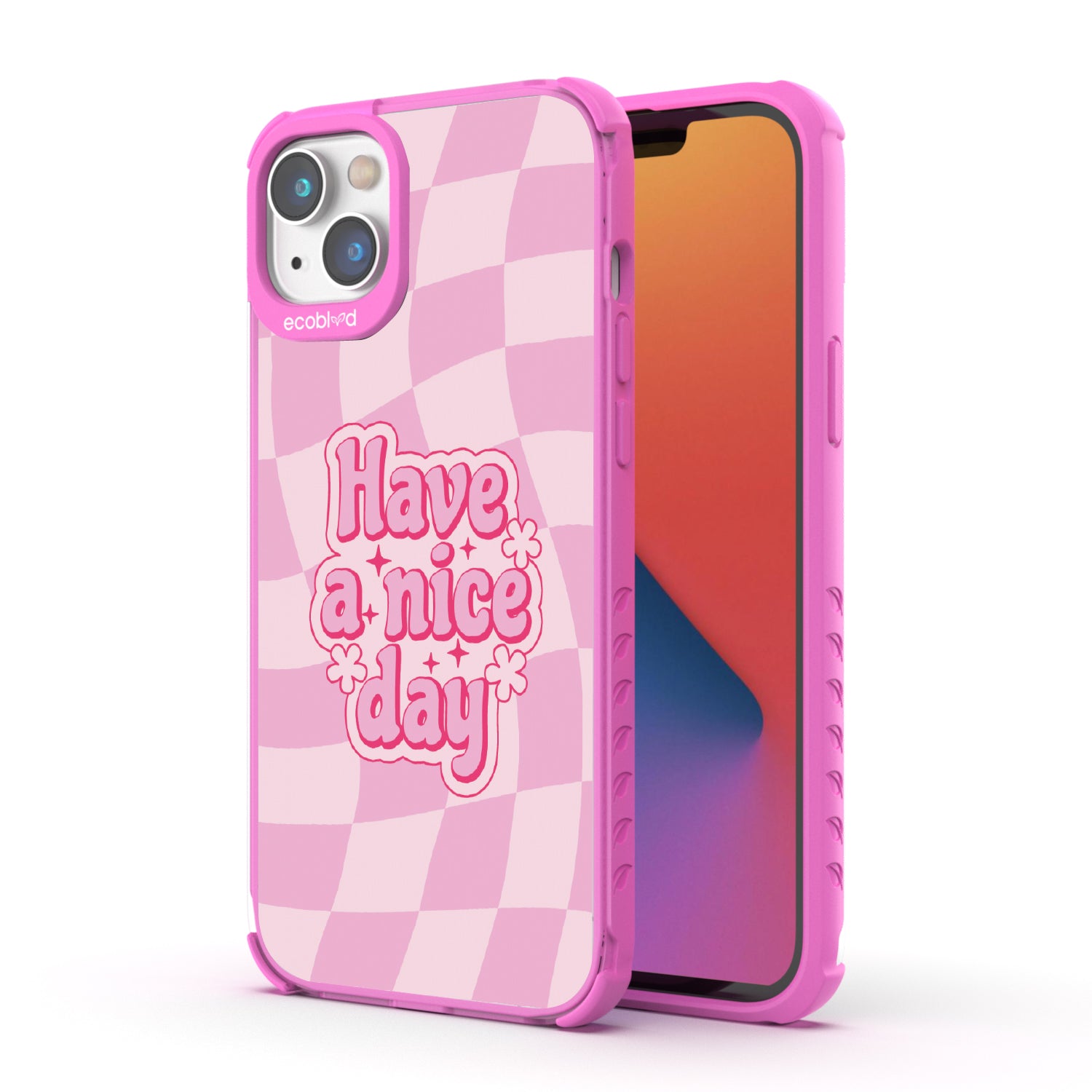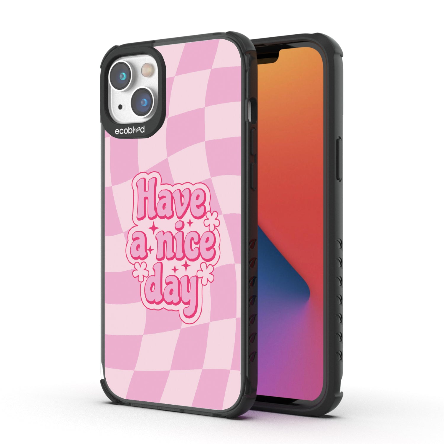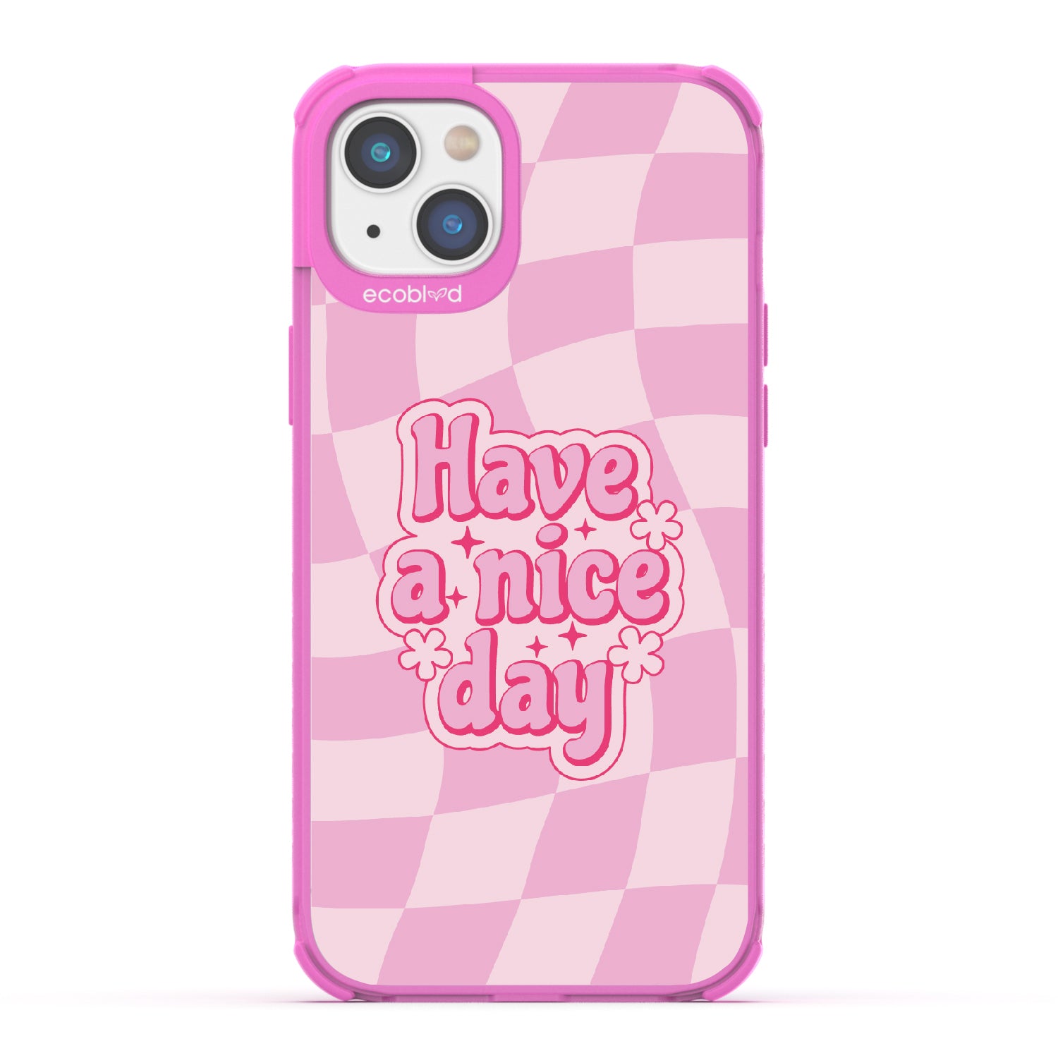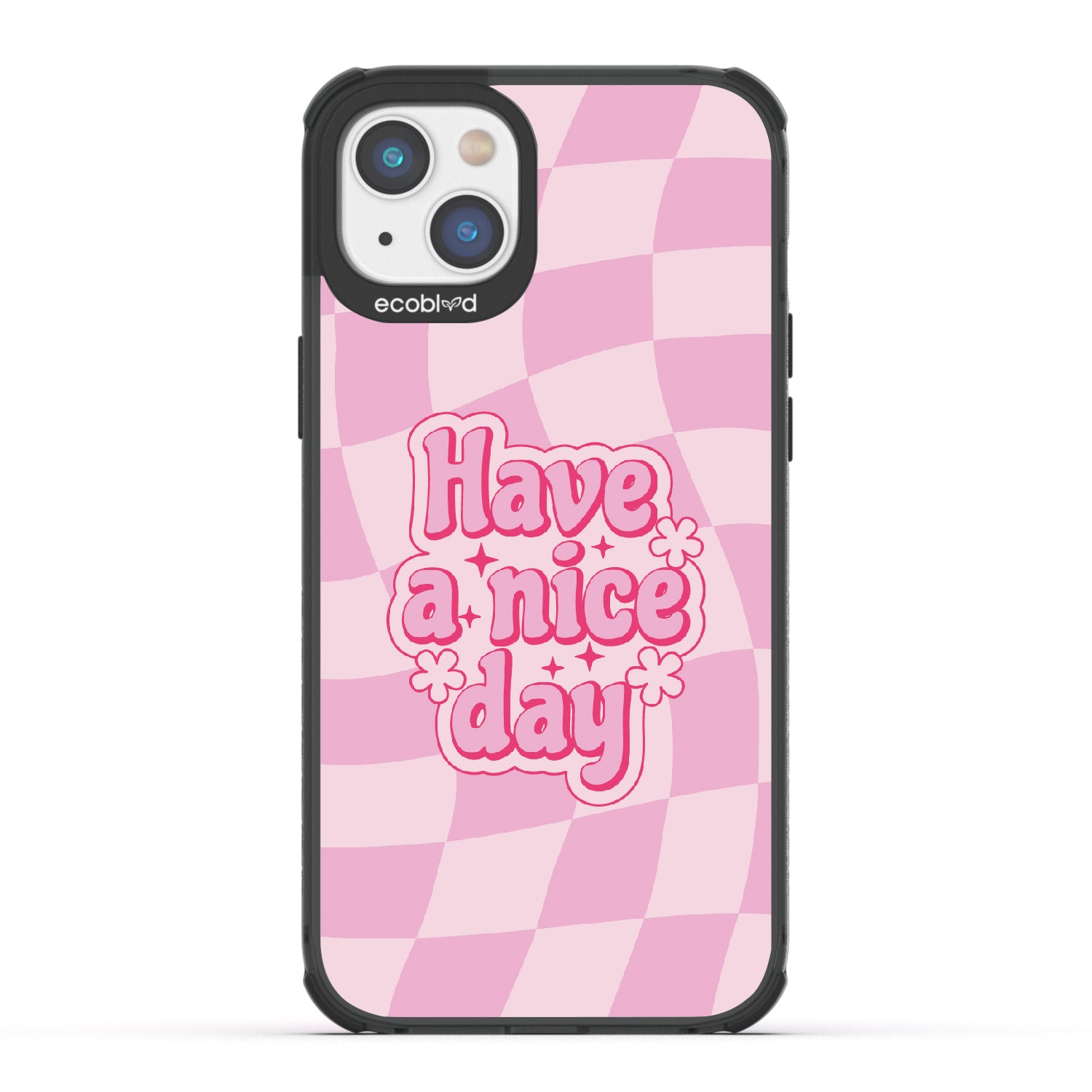 Set the stage for a brighter day with the Have A Nice Day design on our Laguna clear iPhone 14 Plus phone case, featuring an eye-catching wavy checker print pattern. This daily reminder gives an uplifting atmosphere your phone needs, making every day a nice day filled with positivity.