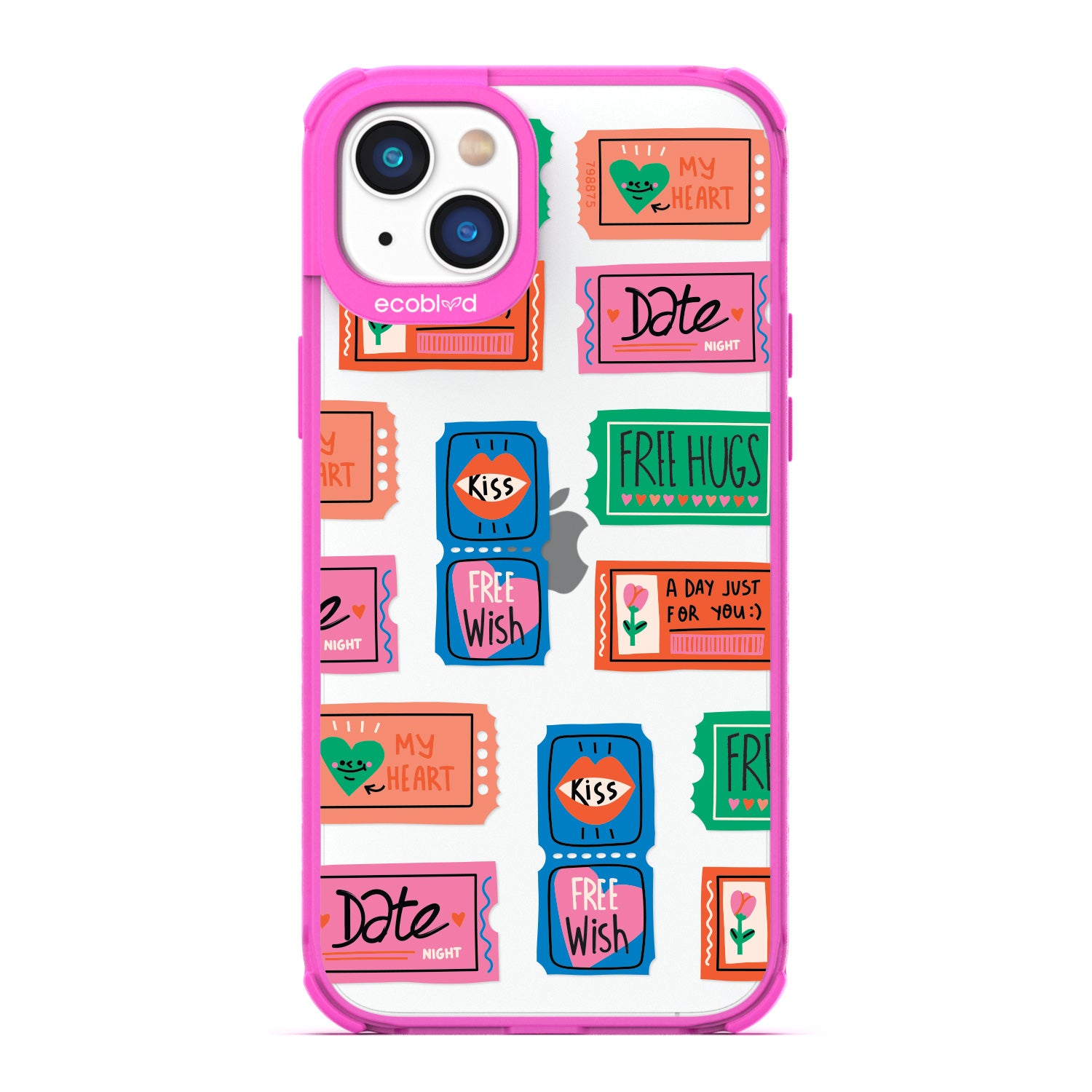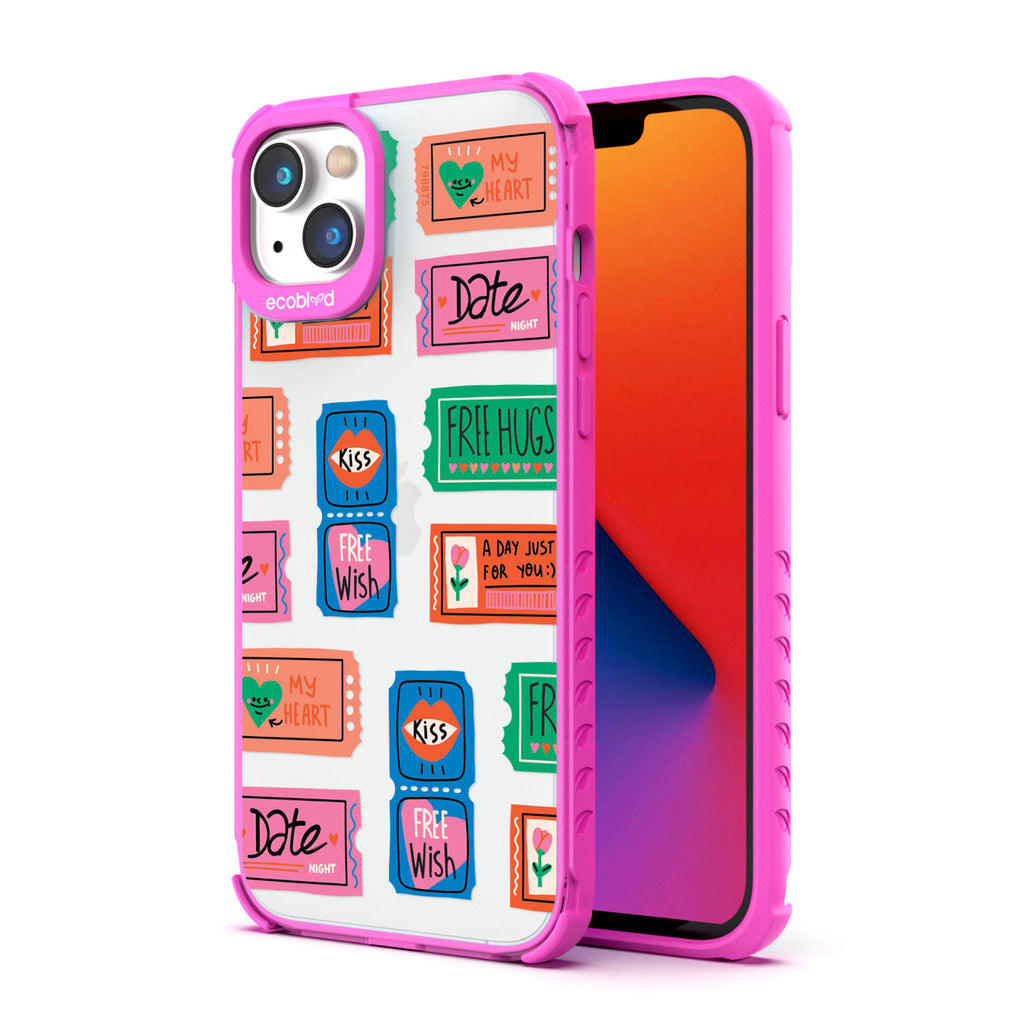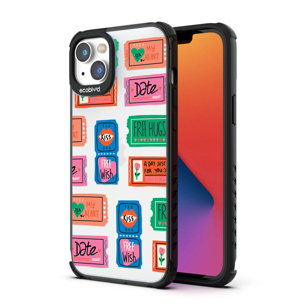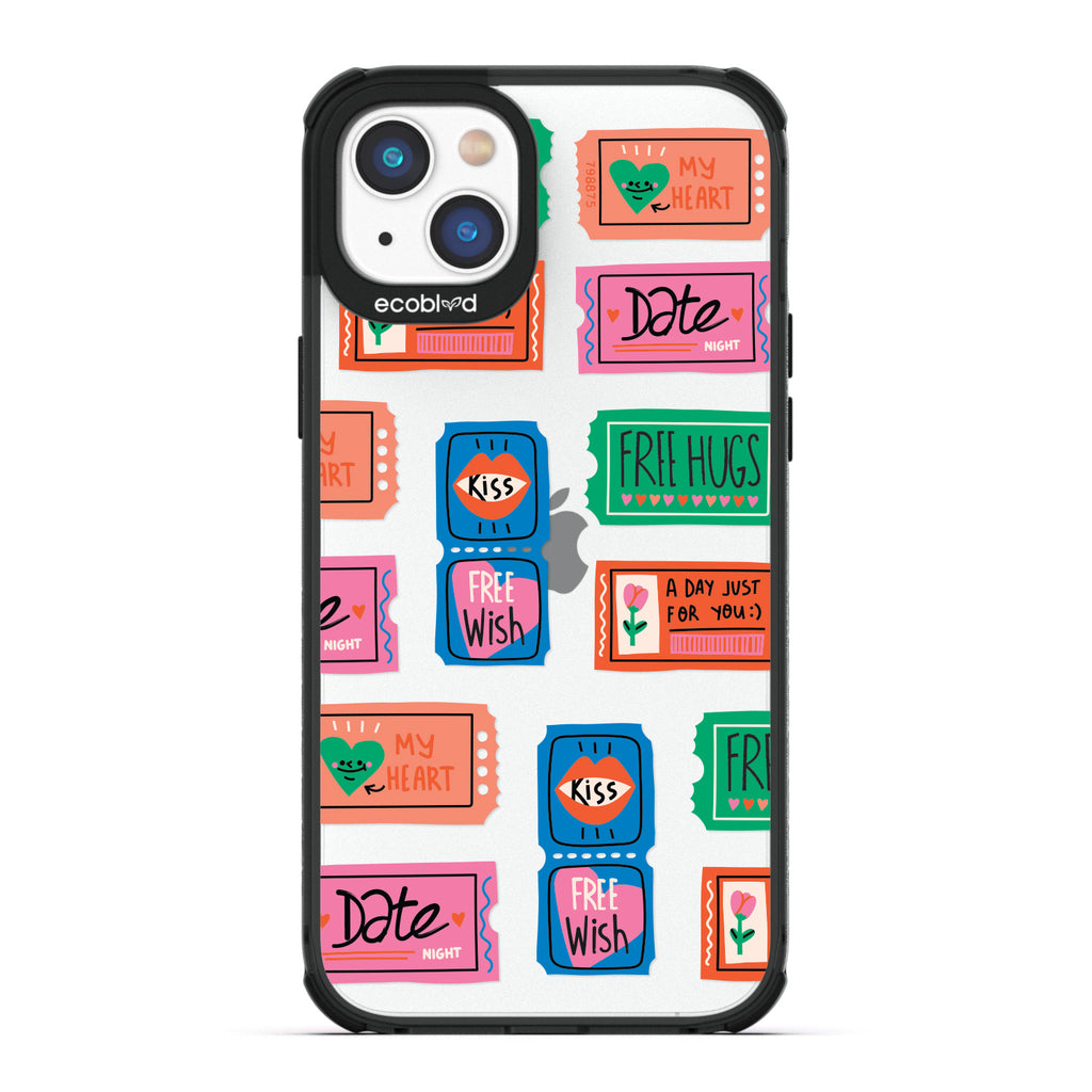 The Love Coupons design on our Laguna clear iPhone 14 Plus phone case will make every day feel like a celebration with its playful vouchers that you can use for free hugs, date nights, kisses, and wishes from your special someone wherever and whenever you want and in five fun colorways: Midnight Black, Cascade Blue, Foliage Green, Illuminating Yellow, and Wildflower Pink.