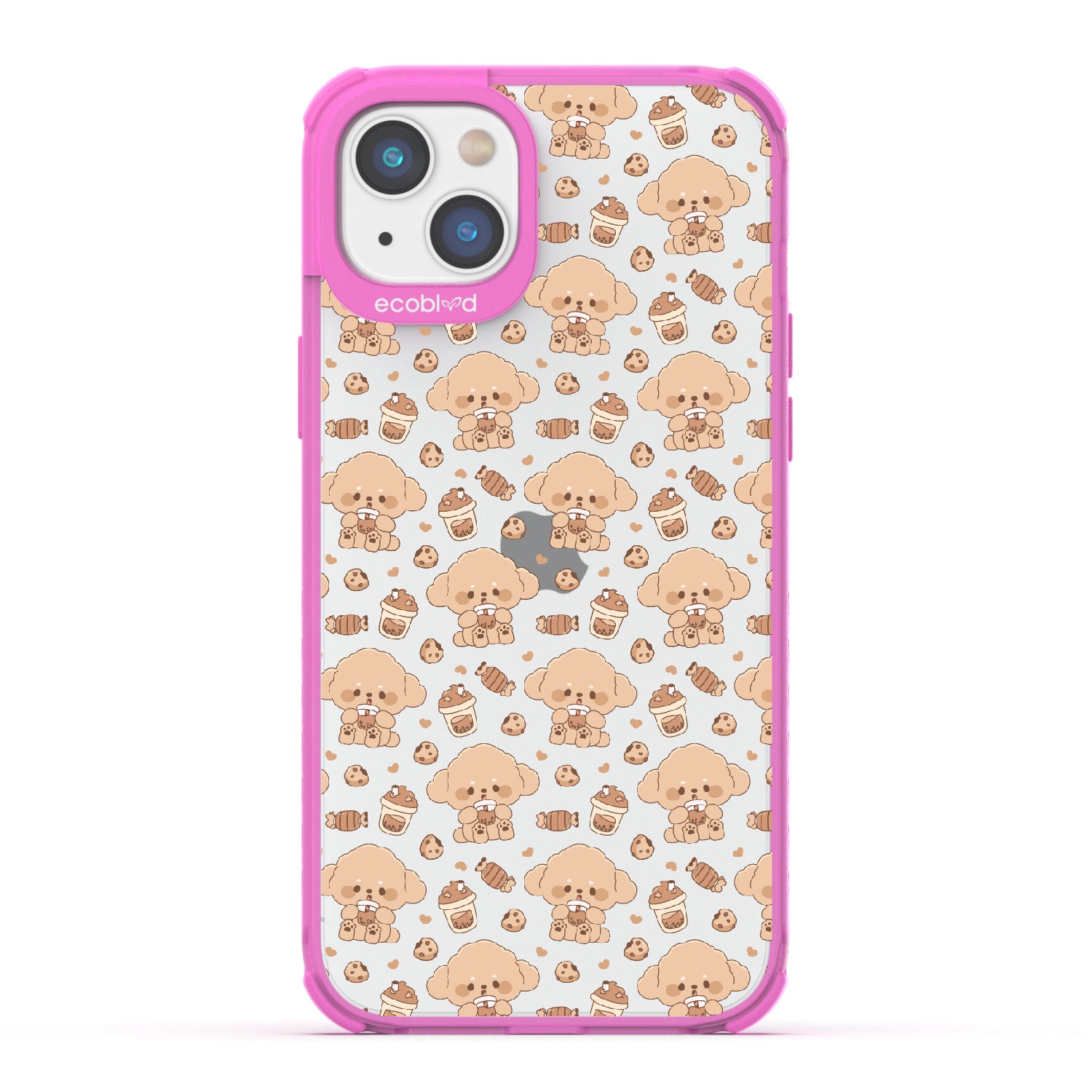 A pup cup for them, a coffee for you. The Pupaccino design on our Laguna clear iPhone 14 Plus case captures the joy of coffee runs with your furry best friend, blending happy pups, frothy drinks, and pastries into one delightful look. Perfect for dog lovers who never skip a treat.