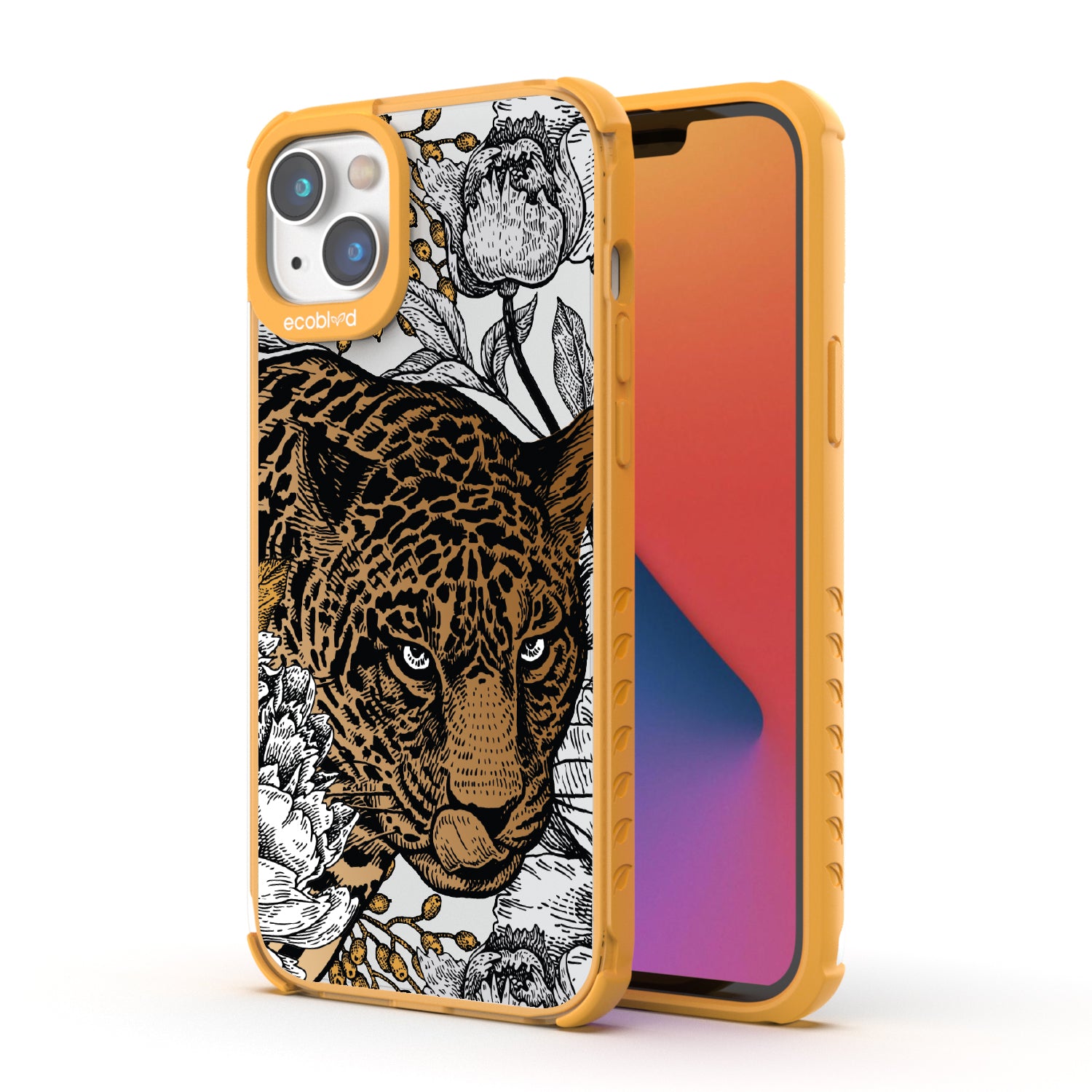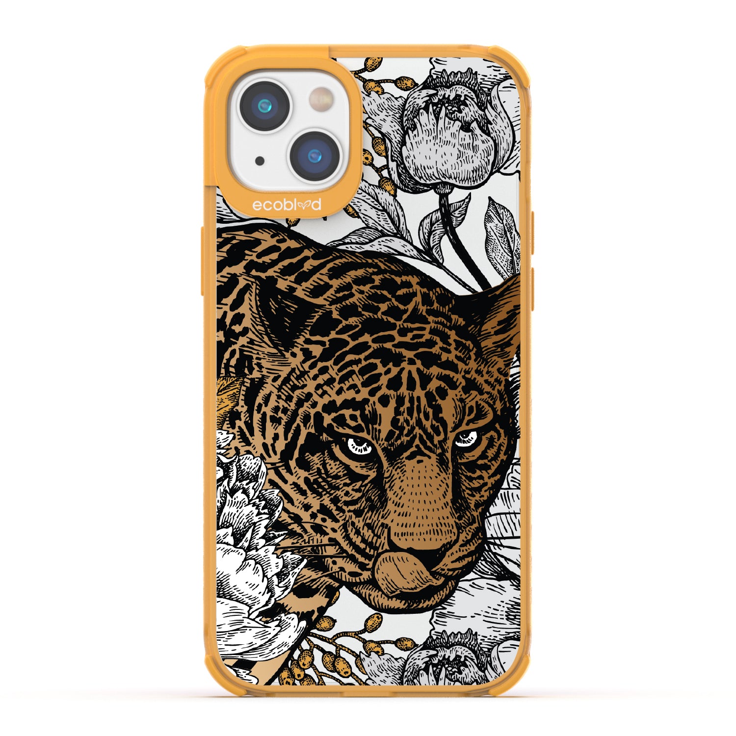 Captivating with its striking rendition of a fierce leopard in action, Purrfectly Striking, an exclusive design crafted for the Laguna clear iPhone 14 Plus case embraces the untamed beauty of this majestic wildcat. Experience the perfect blend of impeccable style and protection while championing ocean conservation efforts. Step out of the ordinary and into the wild with this Purrfectly Striking design! Featuring a fierce leopard on the prowl amidst a sea of grayscale flowers, this phone case roars with confidence thanks to its bold print and striking contrast in two captivating colors: Midnight Black and Illuminating Yellow. Purrfectly Striking is the perfect choice for those who want to unleash their inner wild side and look ferociously cool.
