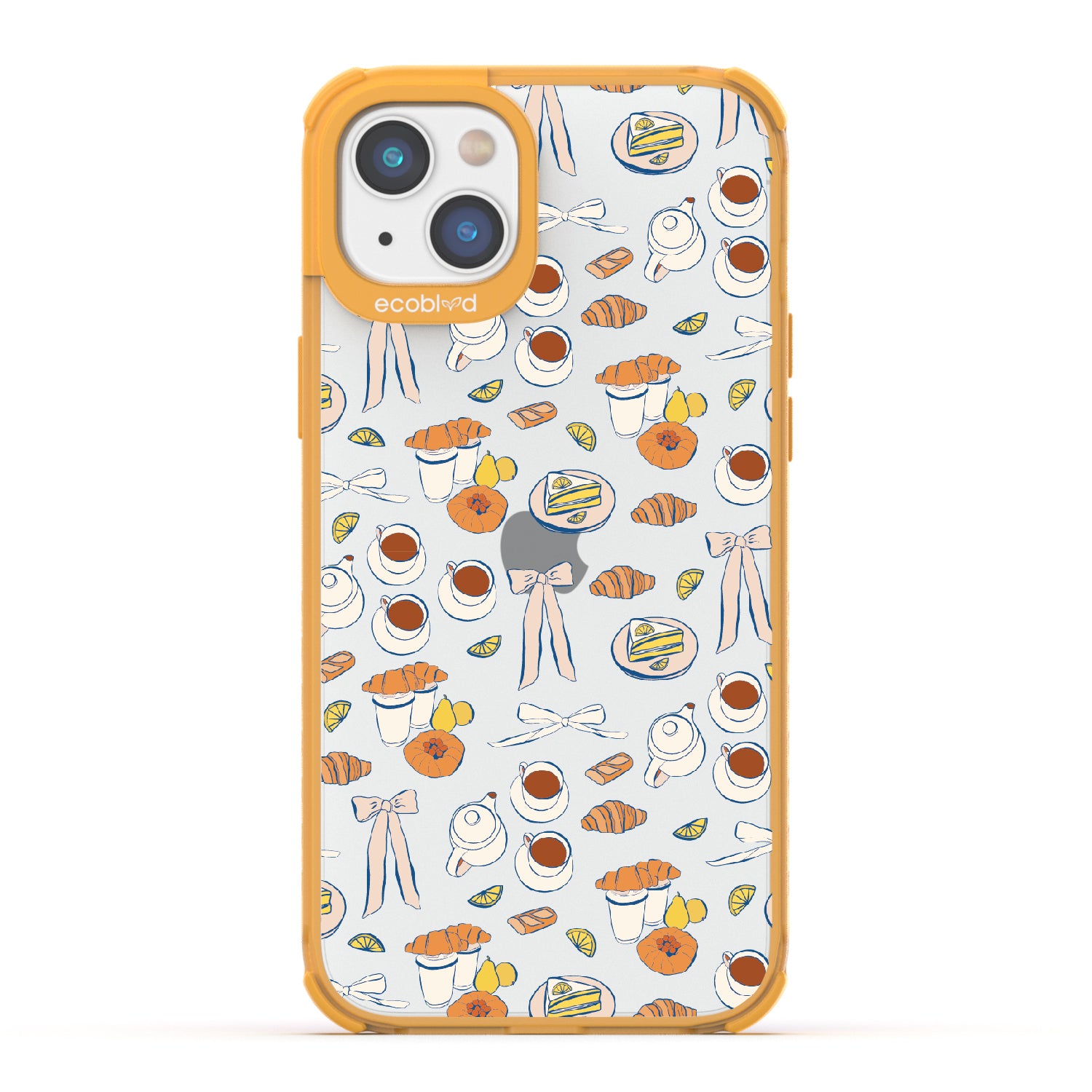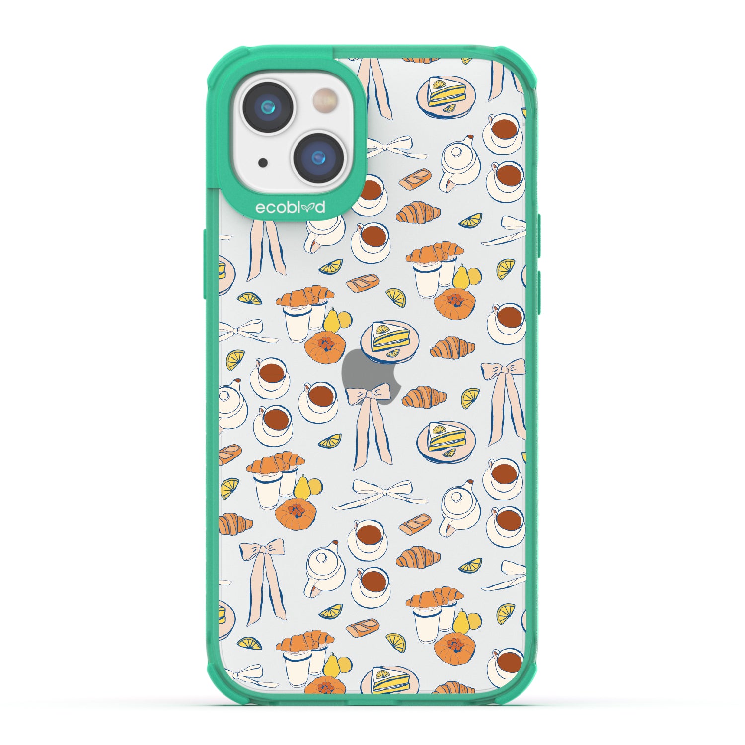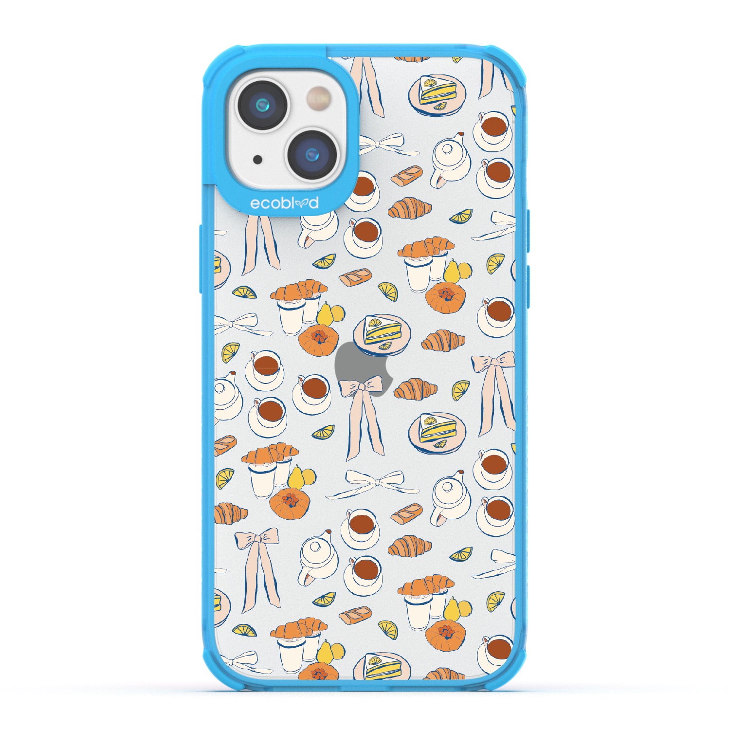 Tea time is the new happy hour. This design on our Laguna clear iPhone 14 Plus case combines whimsical teacups, dainty bows, and sweet pastel pastries in style as delightful as a perfect afternoon break. A tribute to making time for yourself with a touch of elegance.
