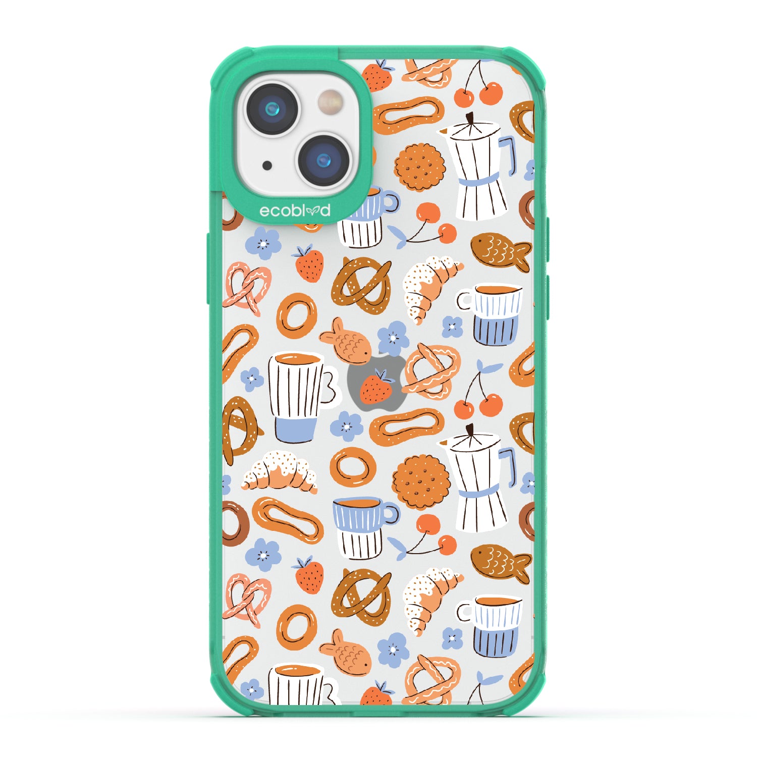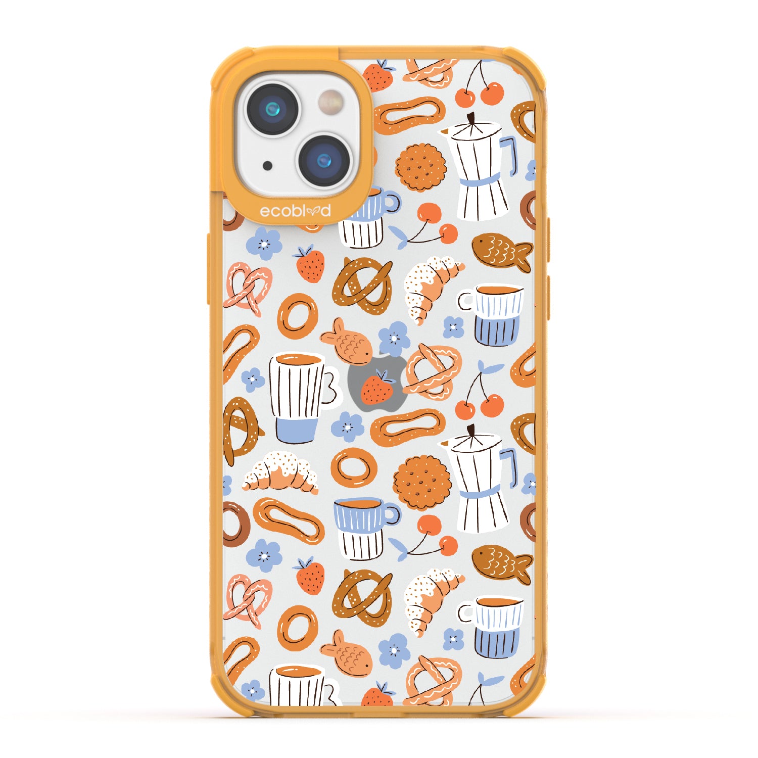 Welcome to The Breakfast Club, where looks are served. This design on our Laguna clear iPhone 14 Plus case brings together all your favorite brunch essentials—croissants, coffee, and pretzels. It’s the perfect club to kickstart your day, full of flavor, fun, and flair.