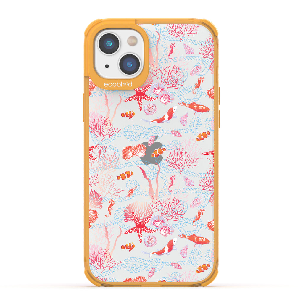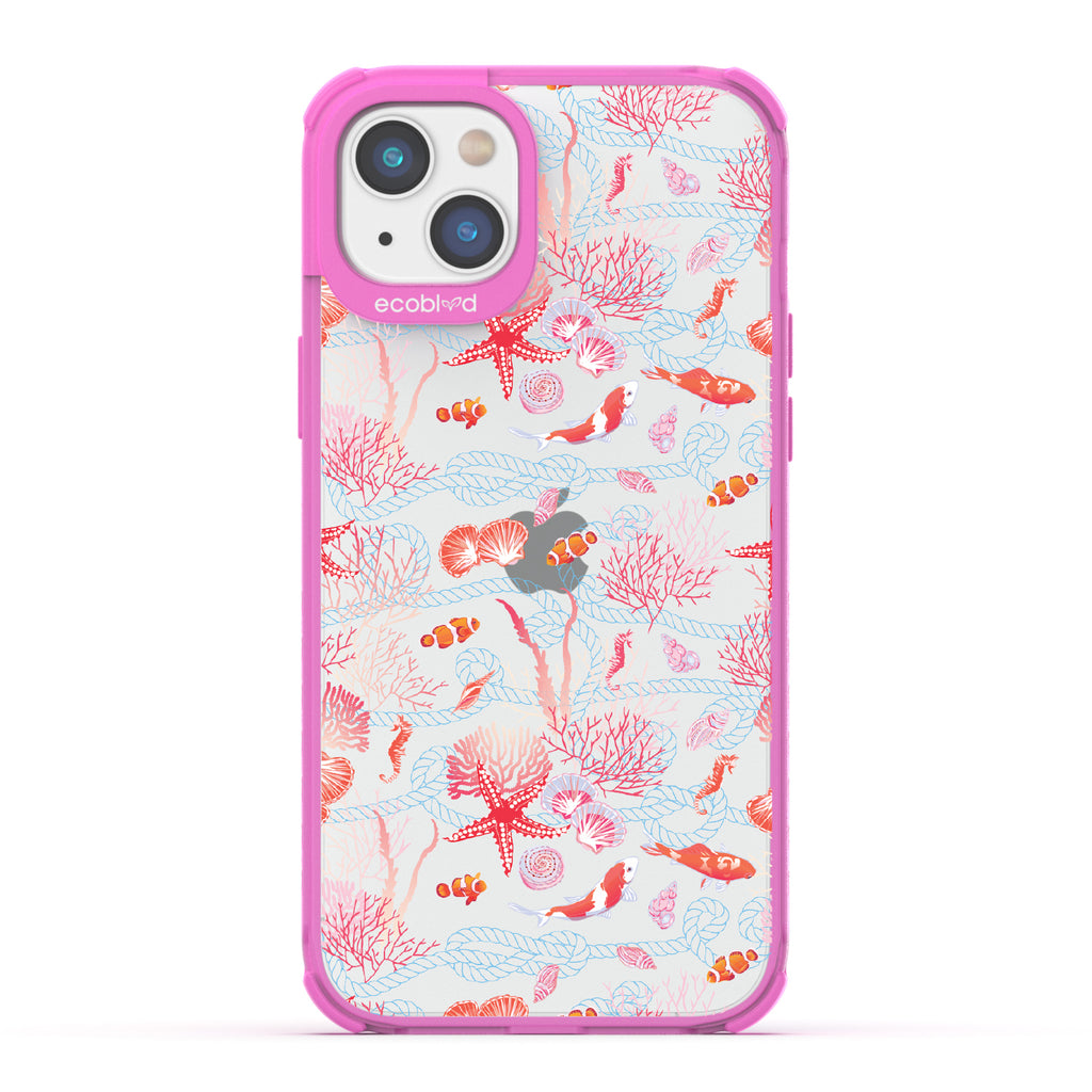 The coral is always brighter, Under the Sea! With this design our Laguna clear iPhone 14 Plus phone case, you'll see, your phone’s full of glee, under the sea! Coral and critters, they all come together, swirling in hues, pinks, and blues, where life’s better wetter, take it from me! Your phone will be dancing, twirling, and prancing, carrying the magic of the ocean so fancy! So let your phone be, full of joy and glee, under the sea.