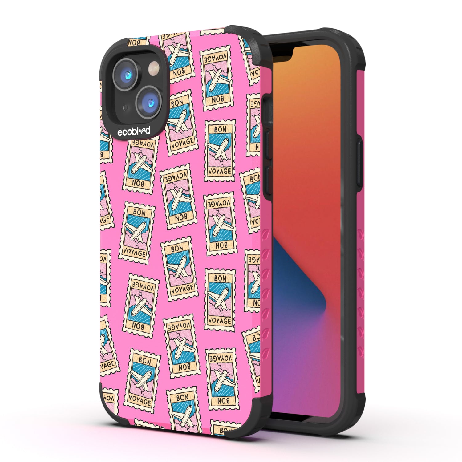 Ready for a stylish departure? The Bon Voyage design on our Mojave rugged iPhone 14 Plus case is your phone's own first-class upgrade, where every 'Bon Voyage' stamp is a nod to your next great getaway. It's like turning on flight mode with a twist of runway—your sidekick dressed for adventure. Snap this case on, and let your phone's wanderlust lead the way. Buckle up, traveler—your pocket-sized co-pilot is about to make every journey fashionably memorable.