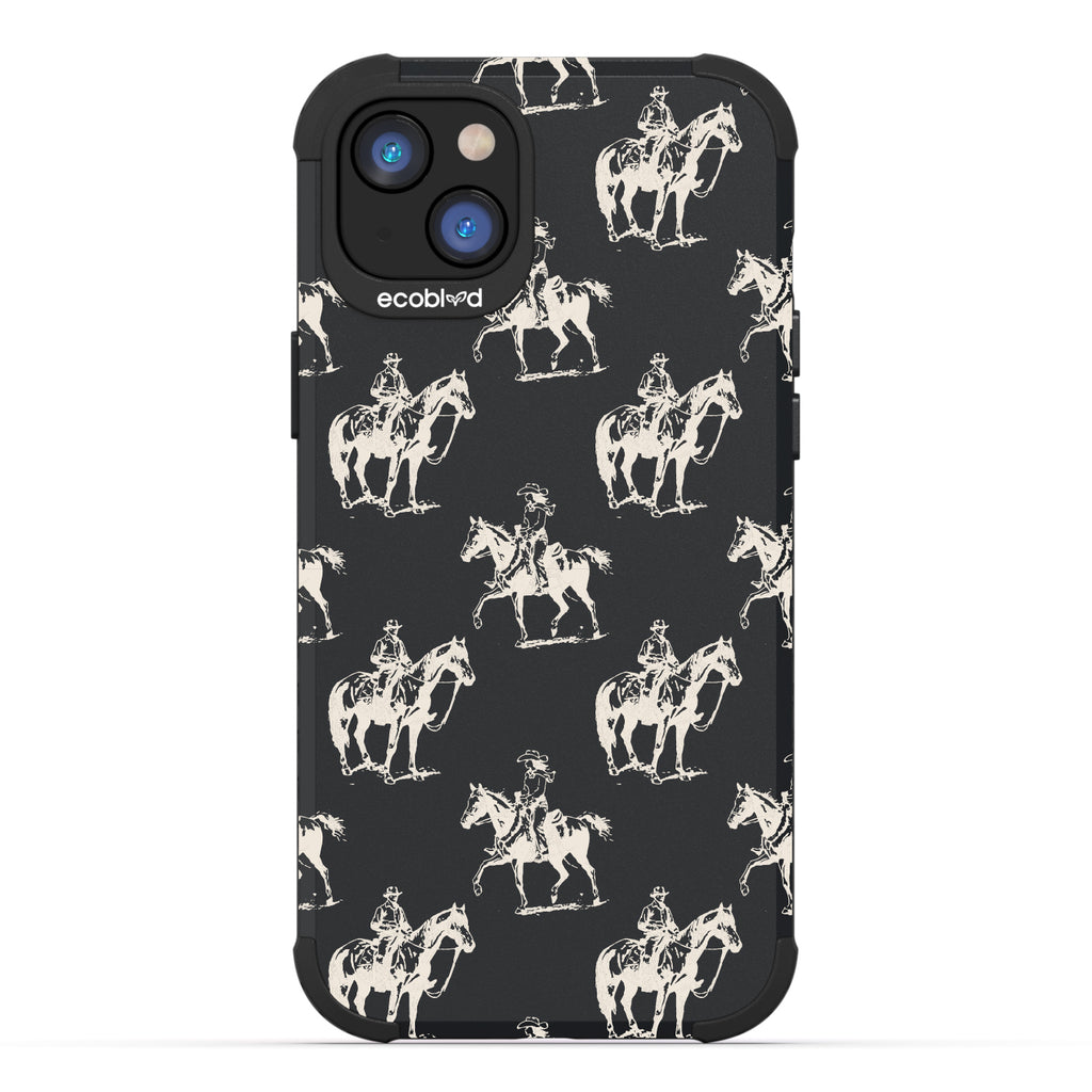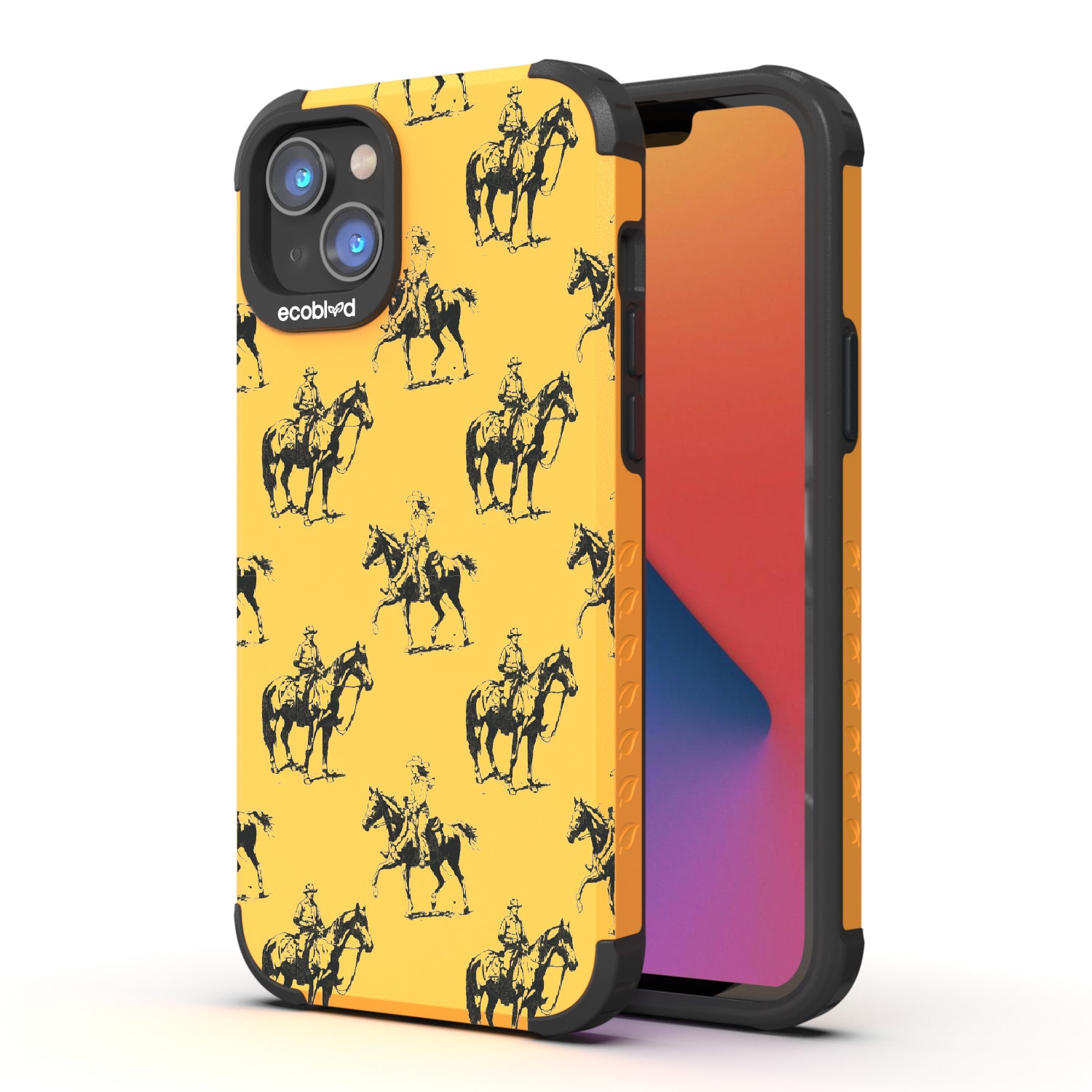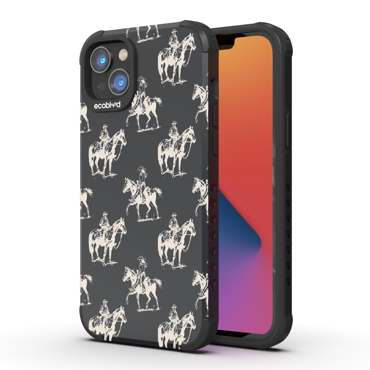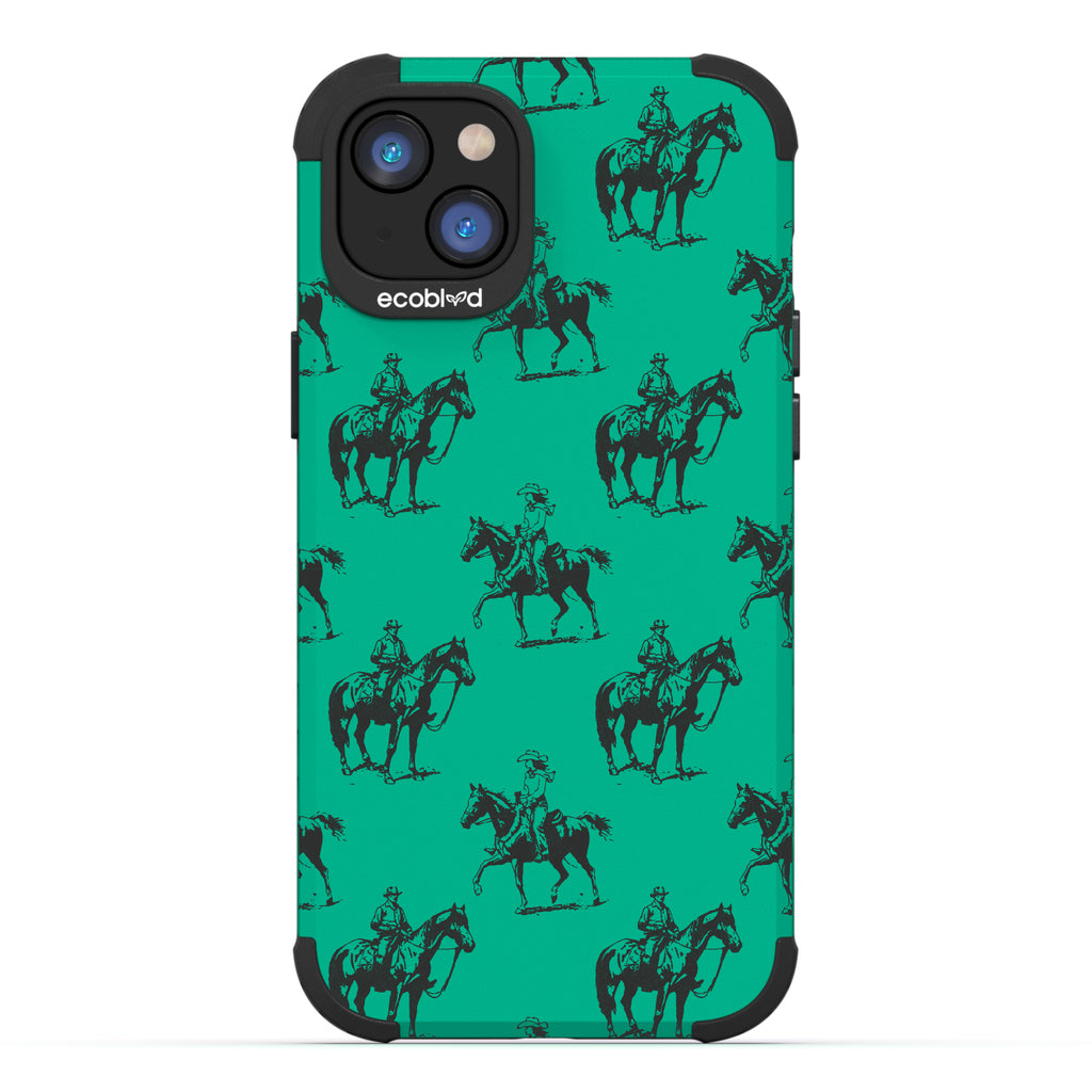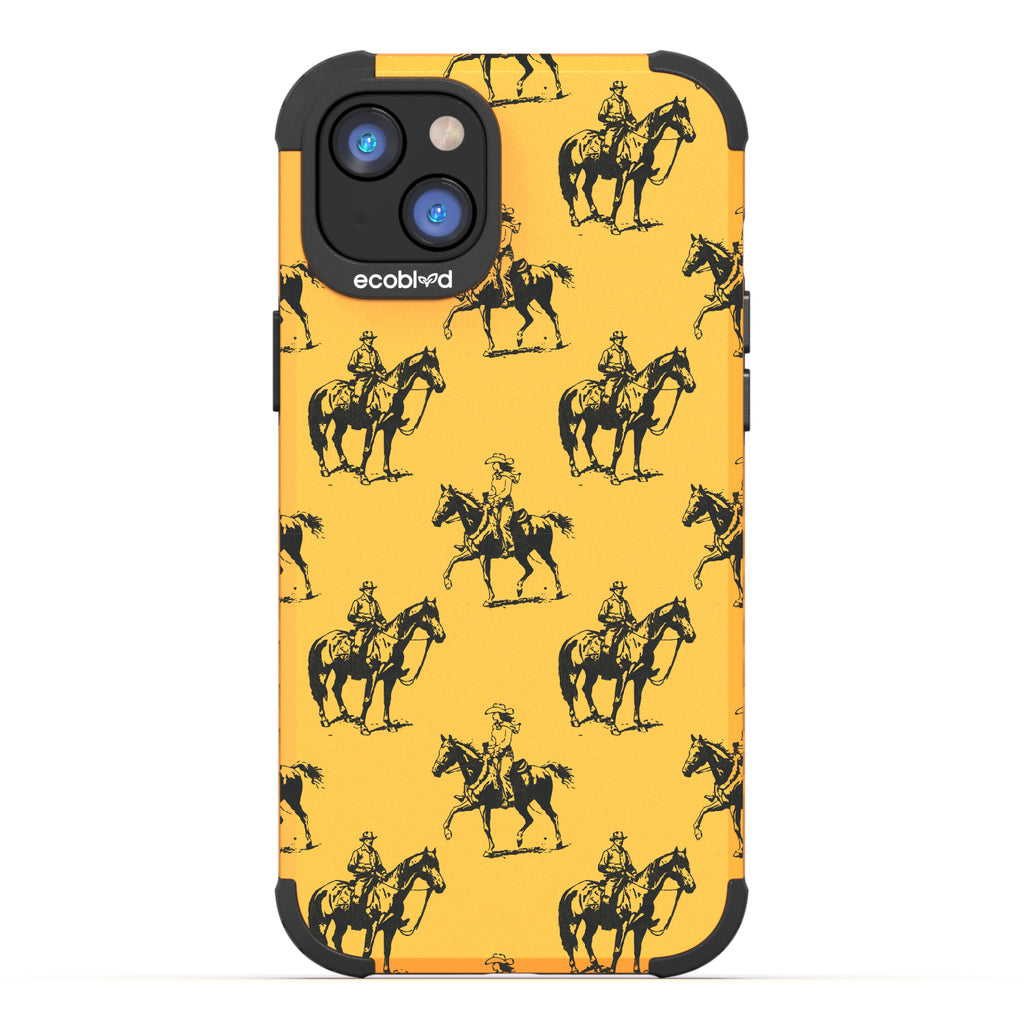 Yeehaw! It's time for an action-packed ride with the Horsin' Around exclusive design on our Mojave rugged and compostable iPhone 14 Plus phone case. See the daring cowboys and cowgirls with their majestic horses ride off into the distance, chasing dreams and forging unforgettable memories. Put this design on your phone and let every call echo the playful spirit of cowboys horsin' around in the free-ridin' time.