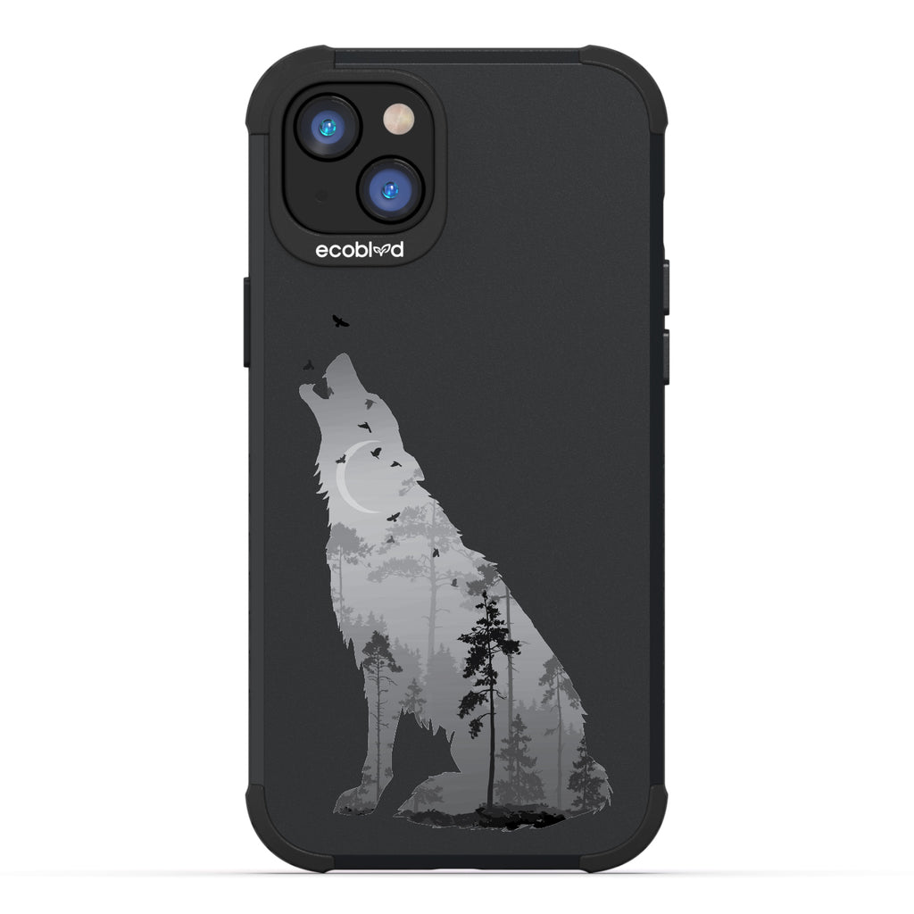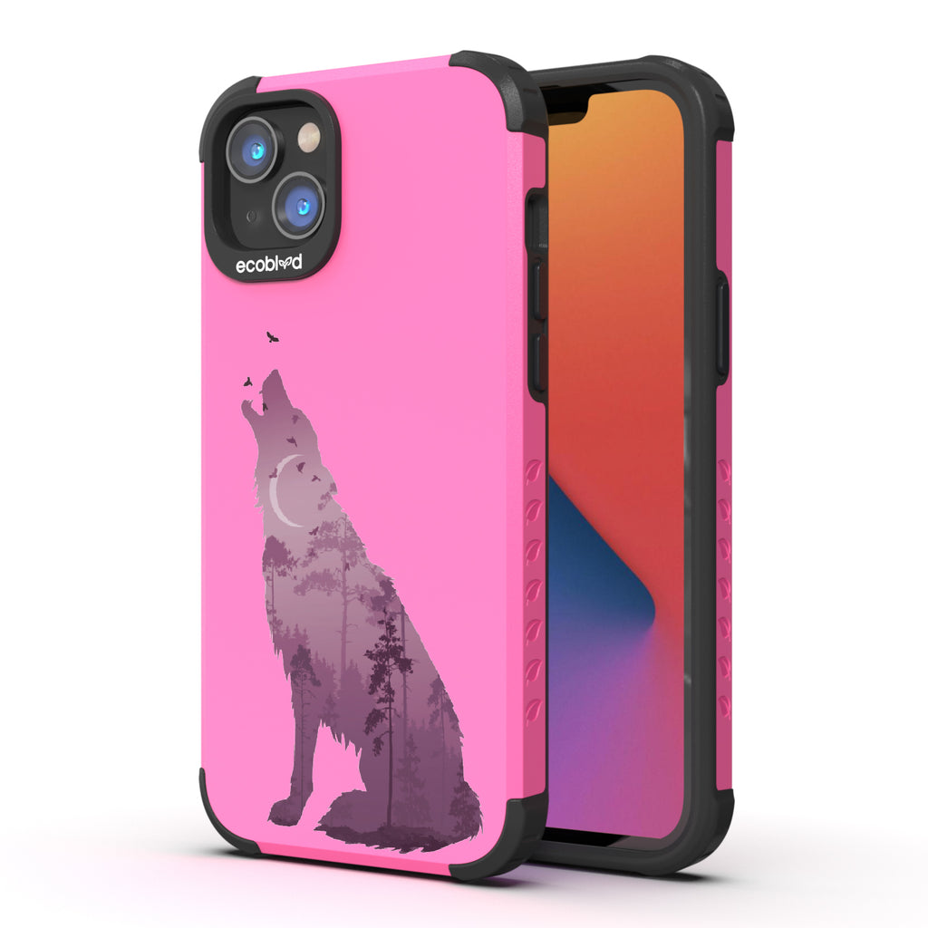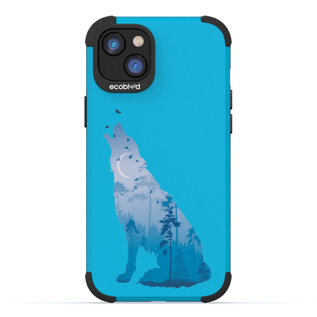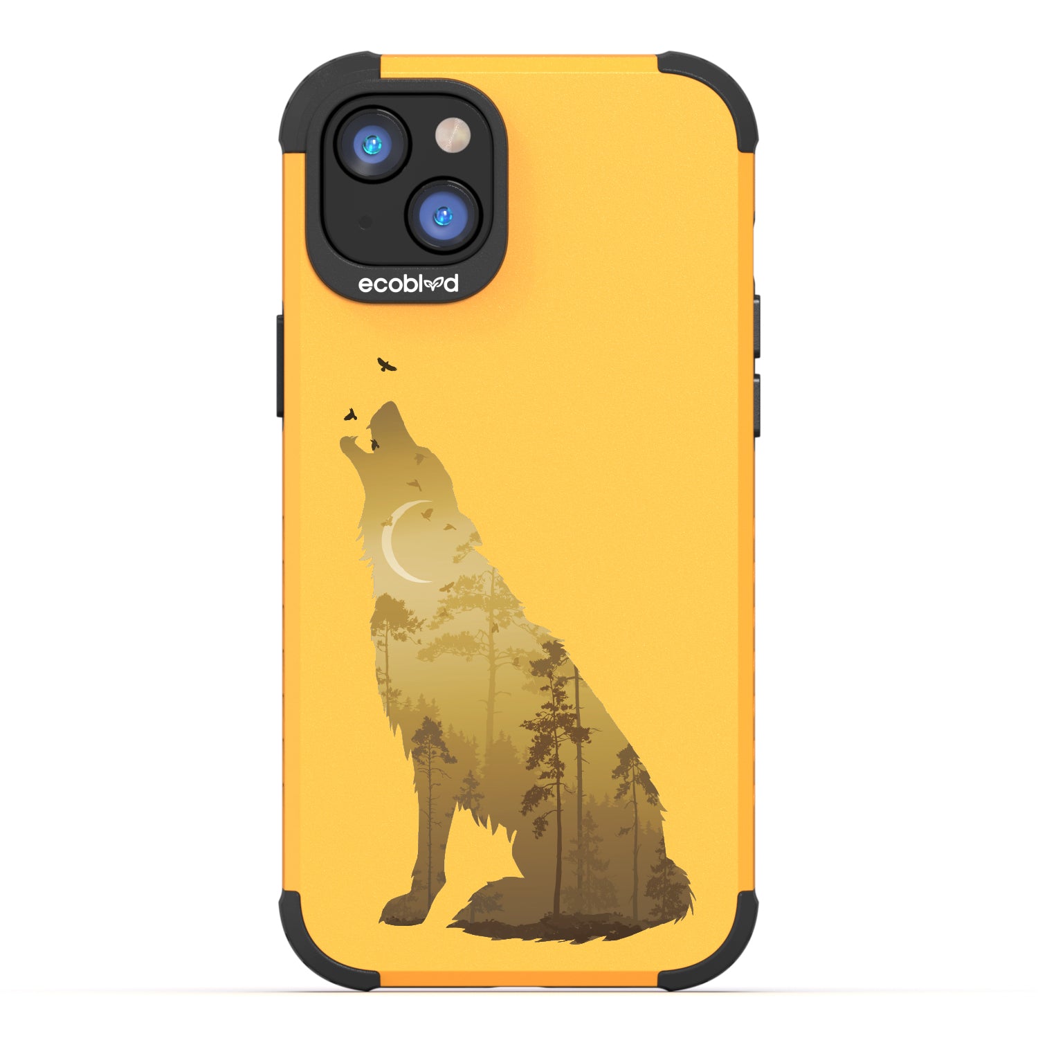 Embrace your wild side as the Howl At The Moon design on our Mojave rugged and compostable iPhone 14 Plus phone case transforms your iPhone into an enchanting moonlit woodland with a howling wolf prowling through the darkness. Choose from five vibrant color options: Midnight Black, Cascade Blue, Foliage Green, Illuminating Yellow, and Wildflower Pink.