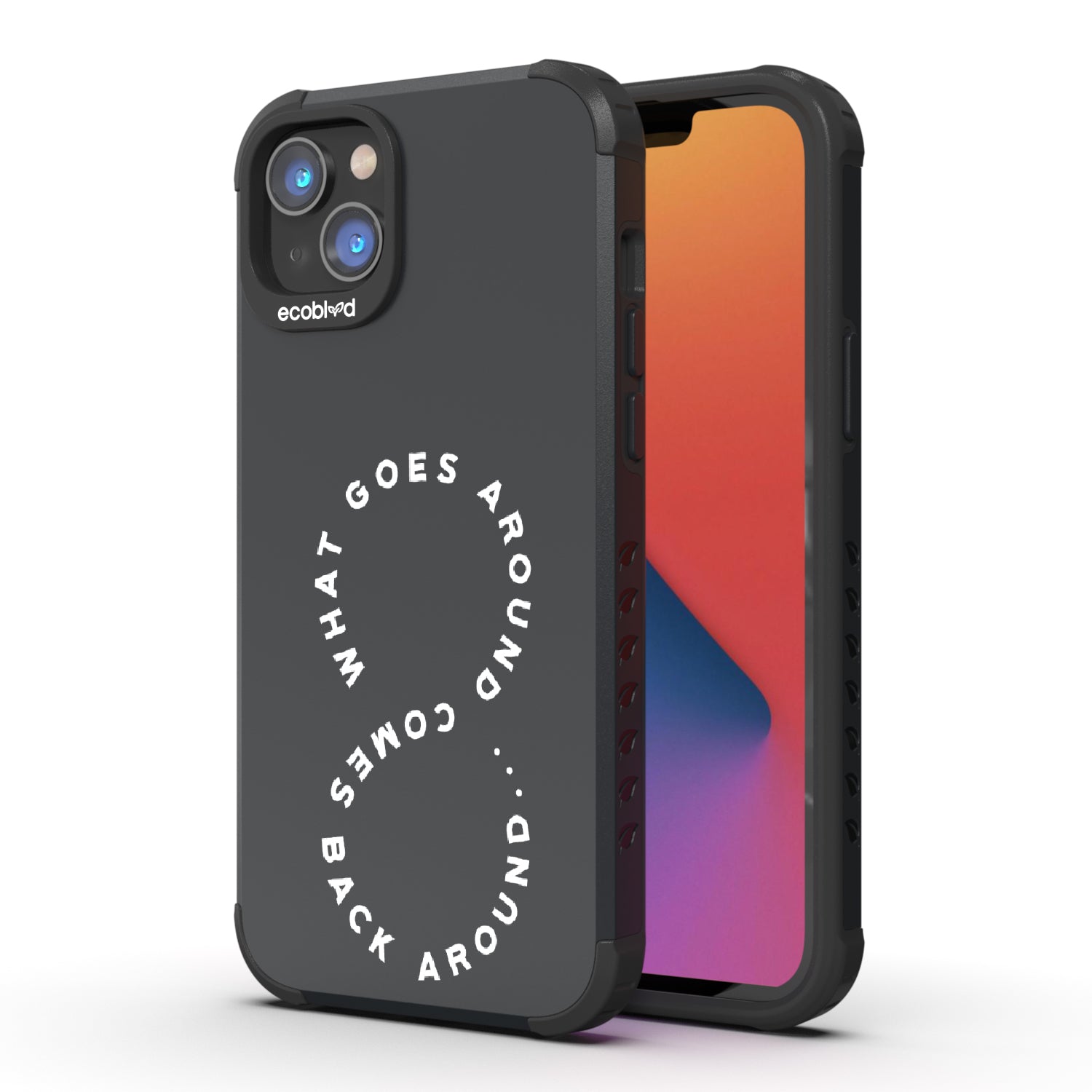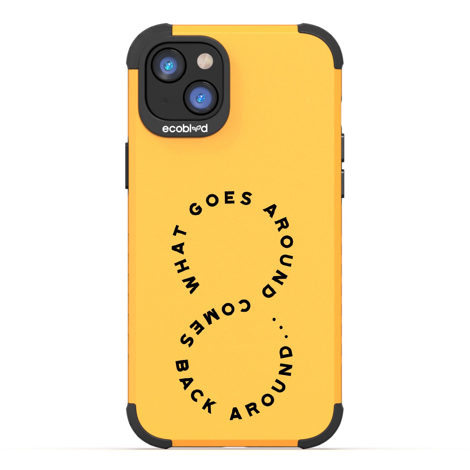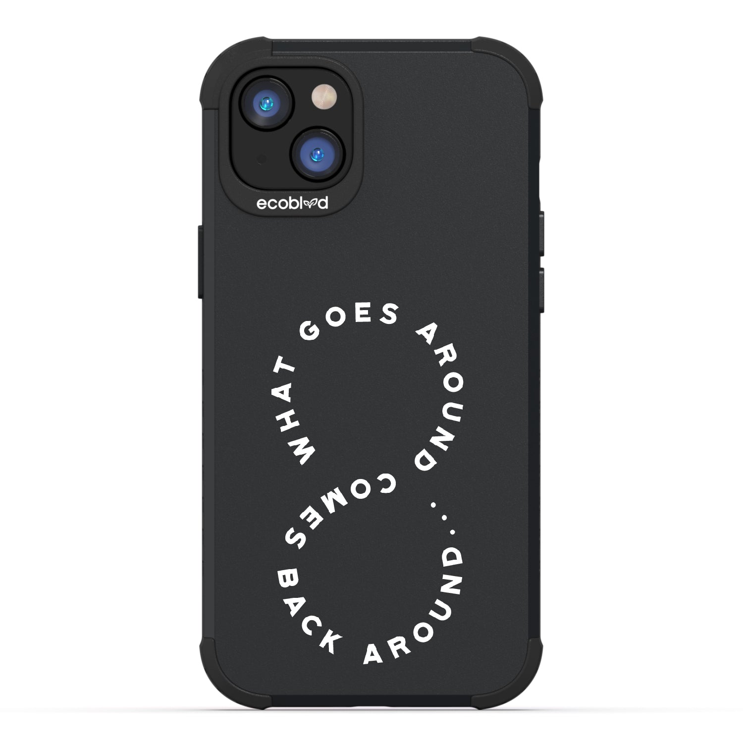 Everything inevitably comes full circle with the What Goes Around Comes Around design on our Mojave rugged and compostable iPhone 14 Plus case as its infinity symbol loops back to our karma. A reminder that every action has its place and that all we do creates ripples that echo our energy out into the world and back to us.