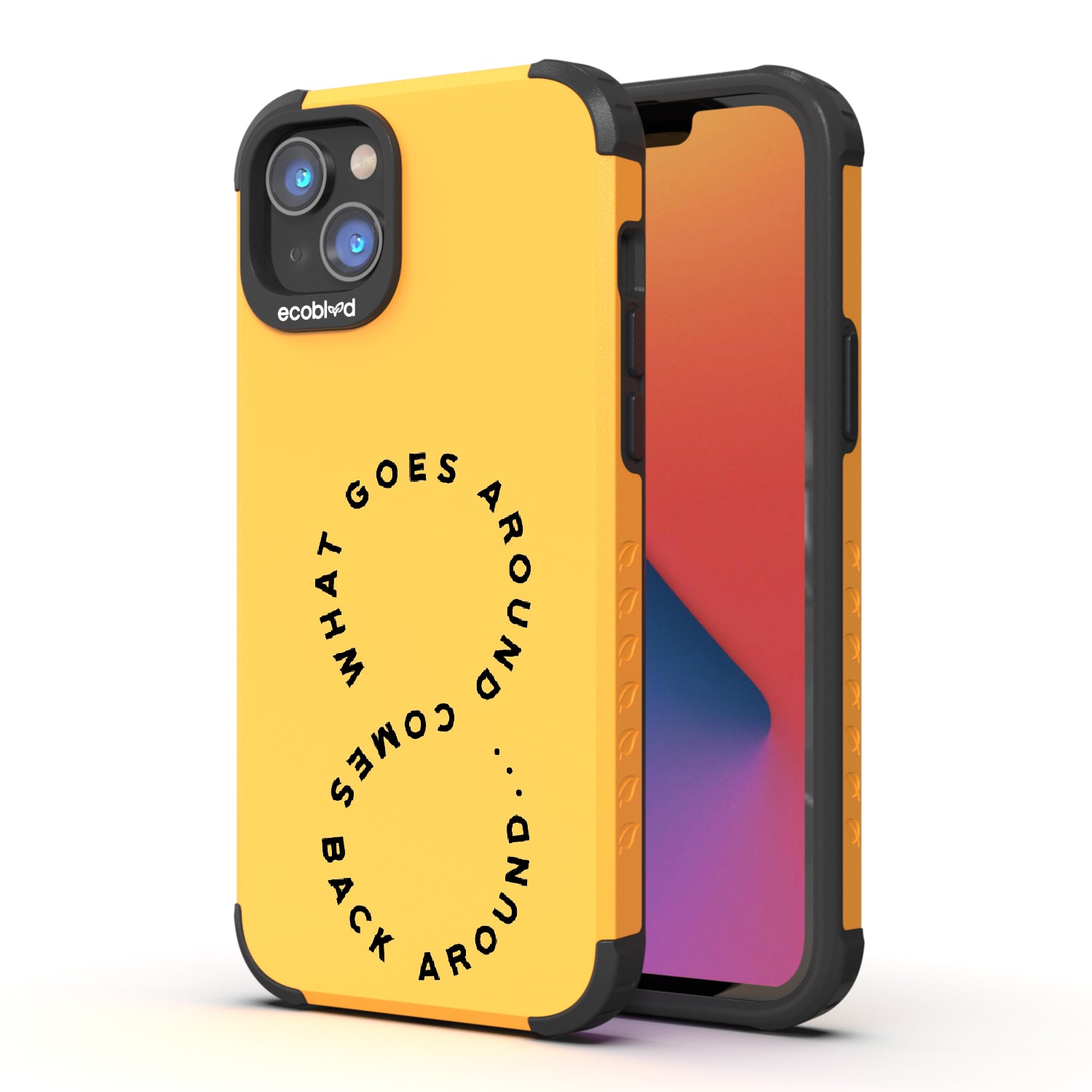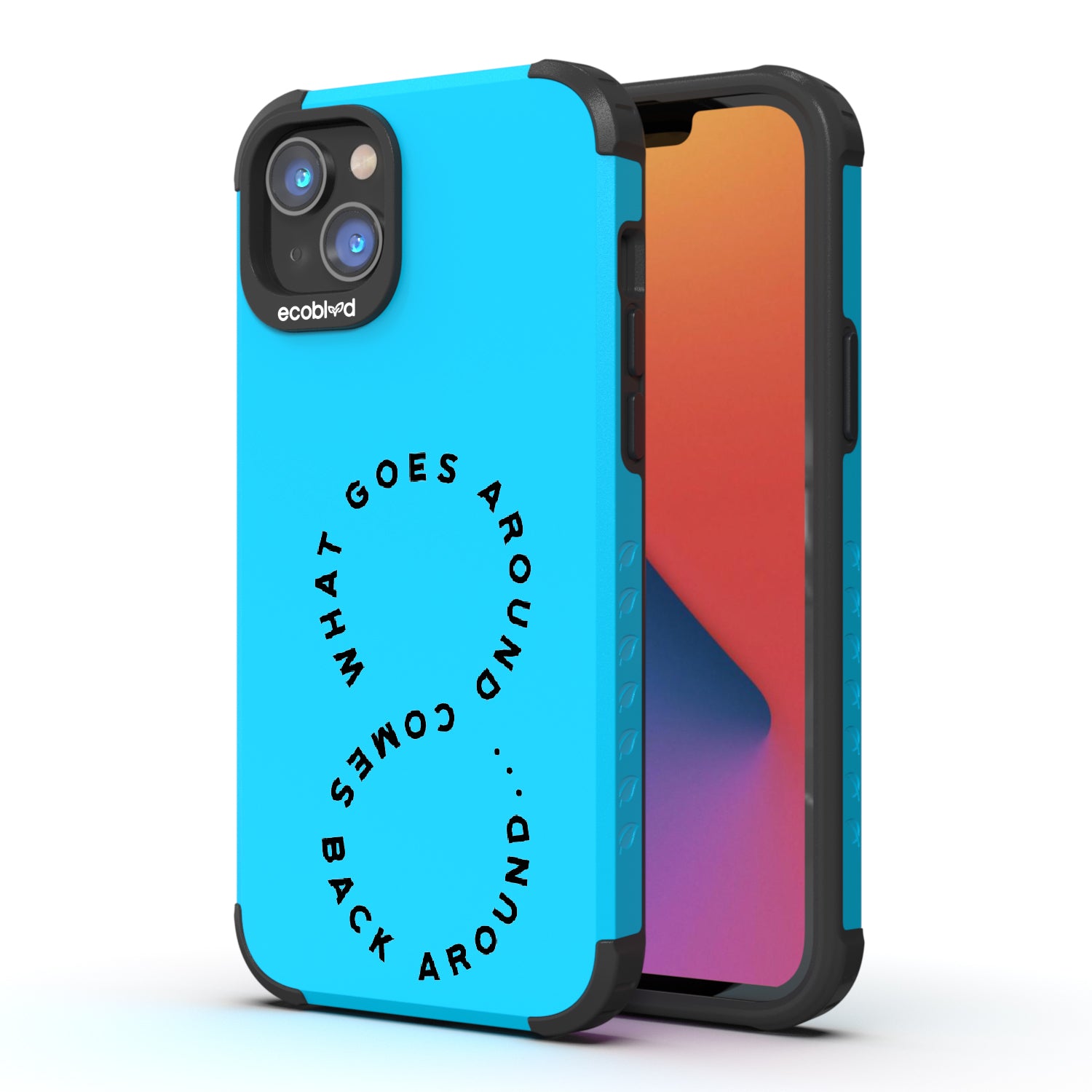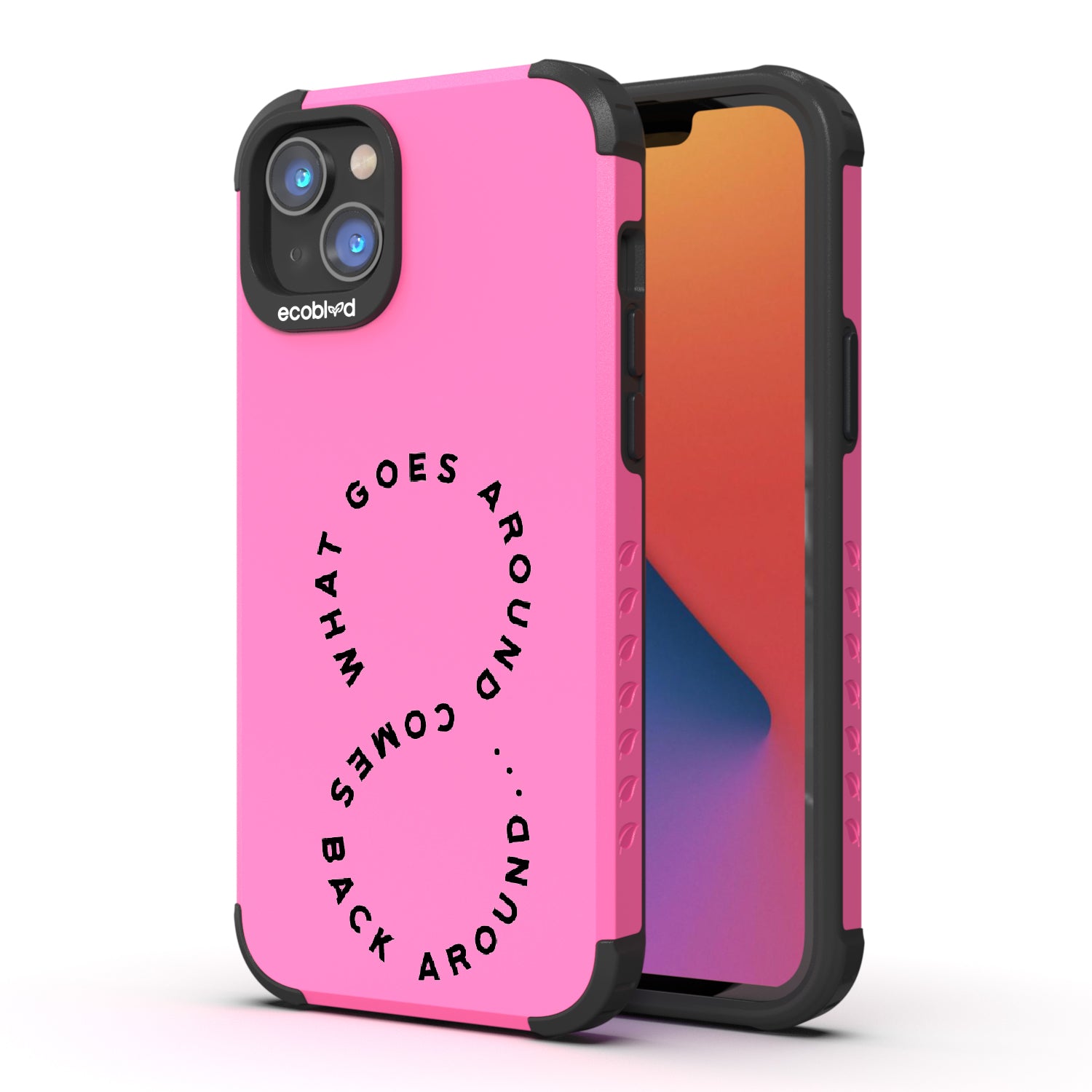 Everything inevitably comes full circle with the What Goes Around Comes Around design on our Mojave rugged and compostable iPhone 14 Plus case as its infinity symbol loops back to our karma. A reminder that every action has its place and that all we do creates ripples that echo our energy out into the world and back to us.