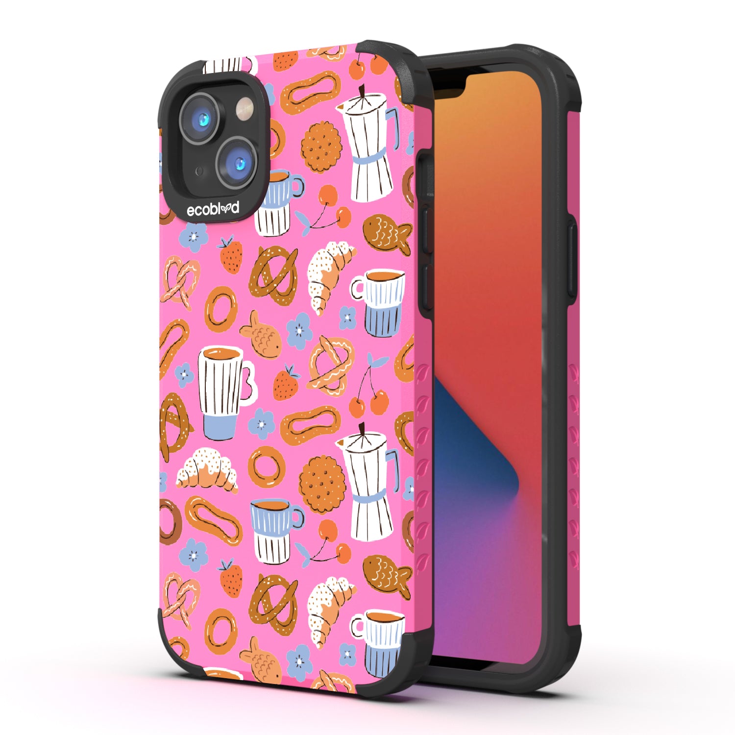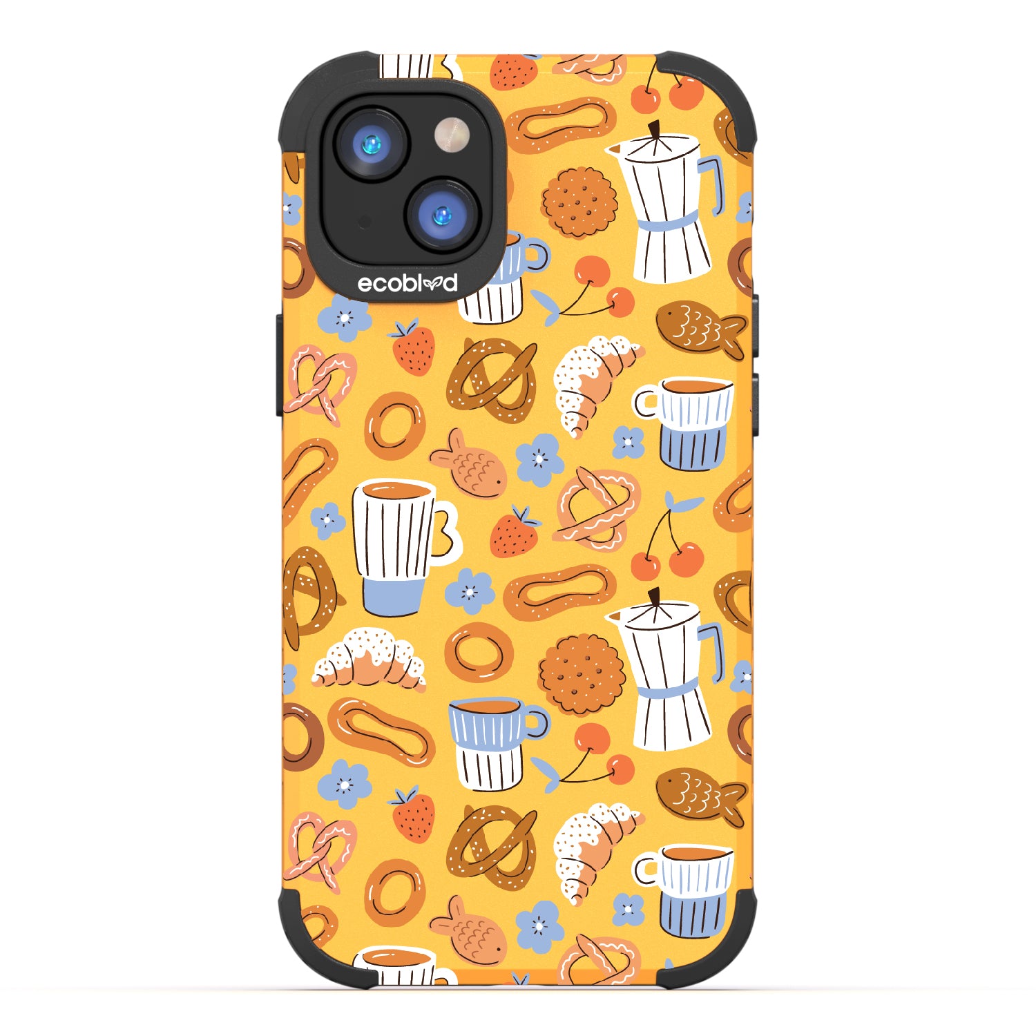 Welcome to The Breakfast Club, where looks are served. This design on our Mojave rugged and compostable iPhone 14 Plus case brings together all your favorite brunch essentials—croissants, coffee, and pretzels. It’s the perfect club to kickstart your day, full of flavor, fun, and flair.