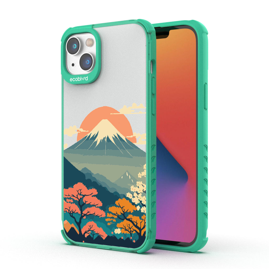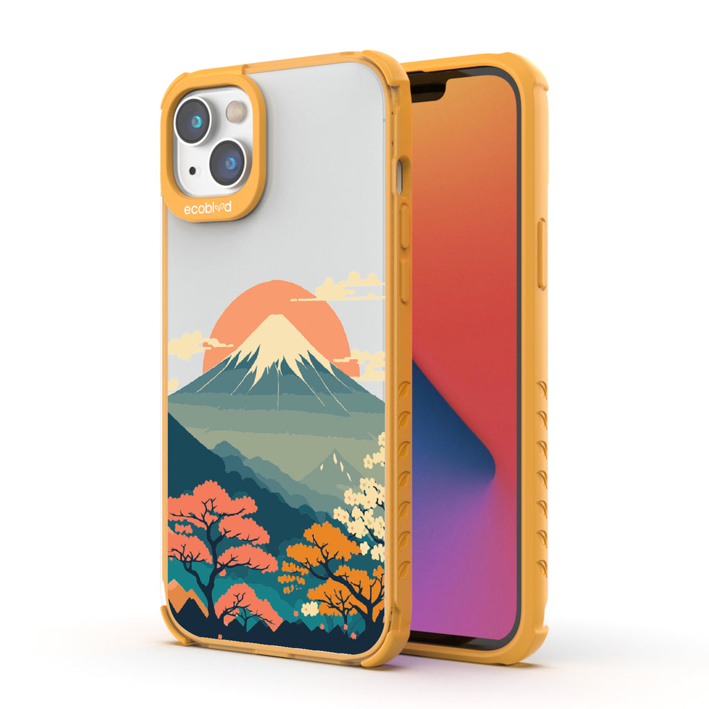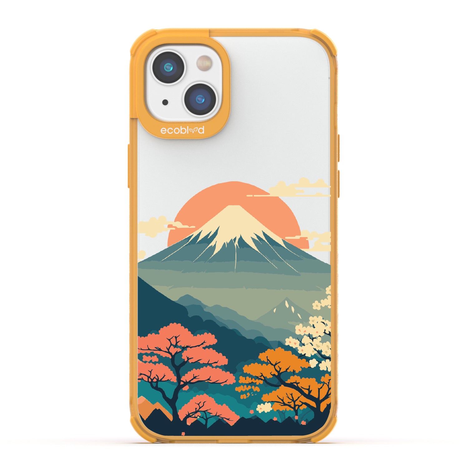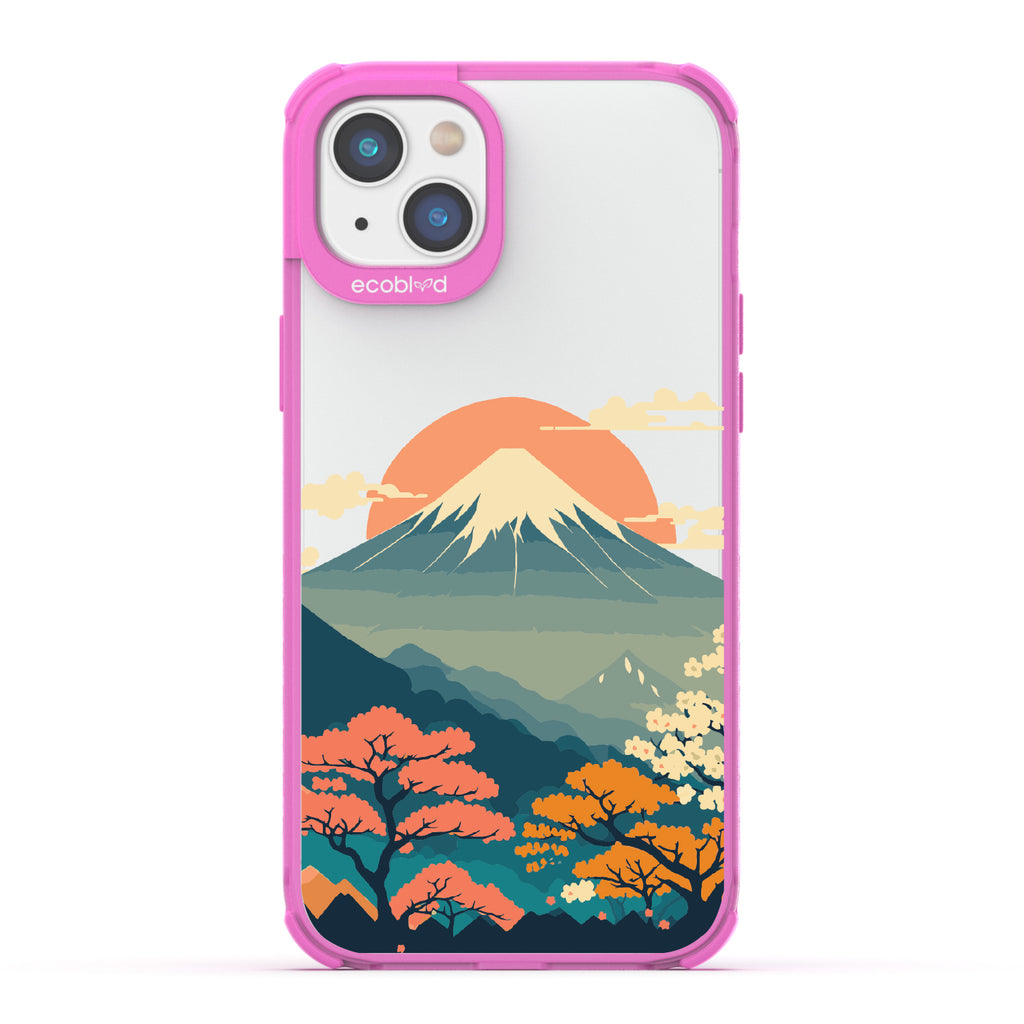 Witness the mesmerizing sunrise over Mt. Fuji with this captivating design on our Laguna clear iPhone 14 Plus phone case. As dawn breaks over Japan's iconic peak, painting the sky in hues of pink and orange, let your phone transport you to the serene beauty of this majestic landmark.