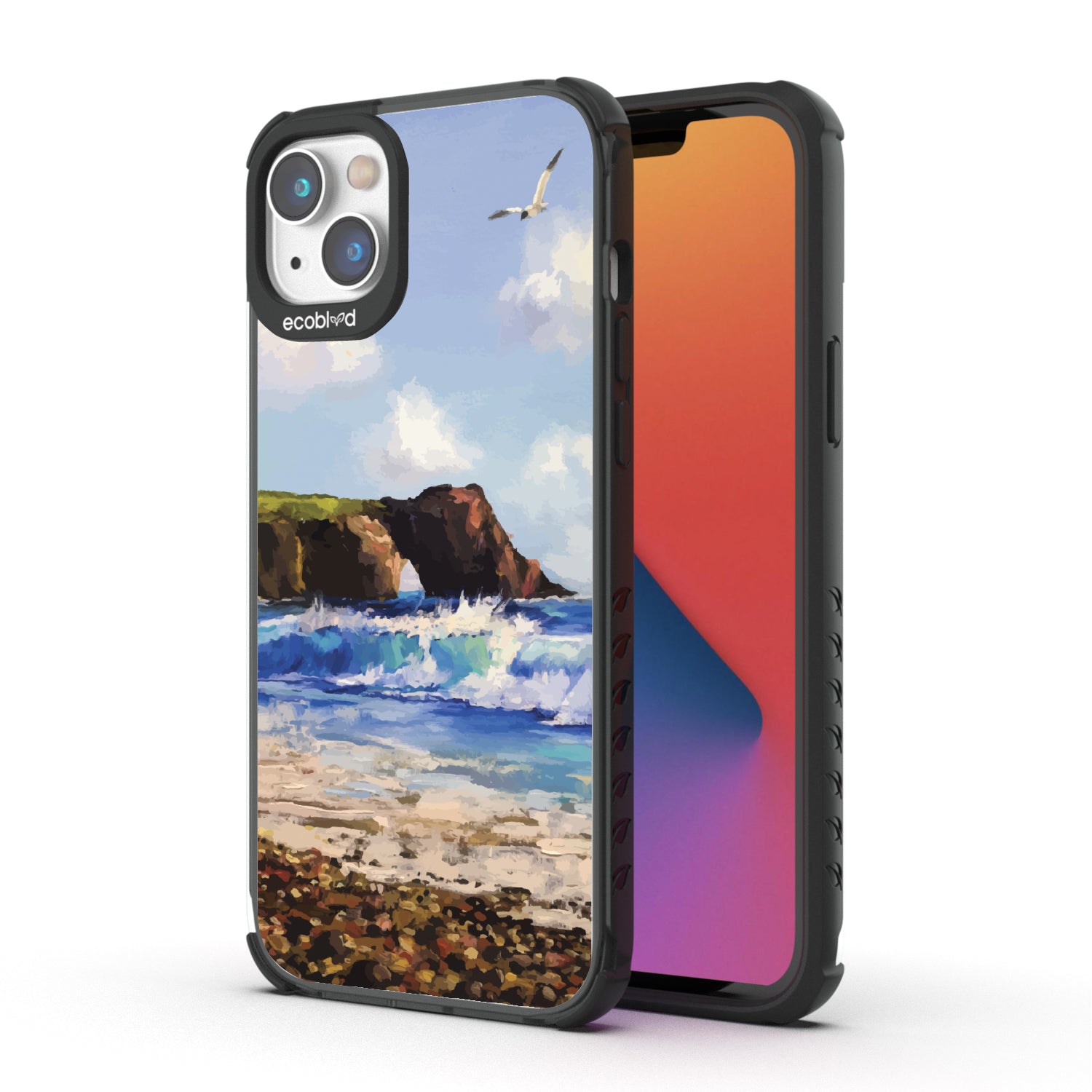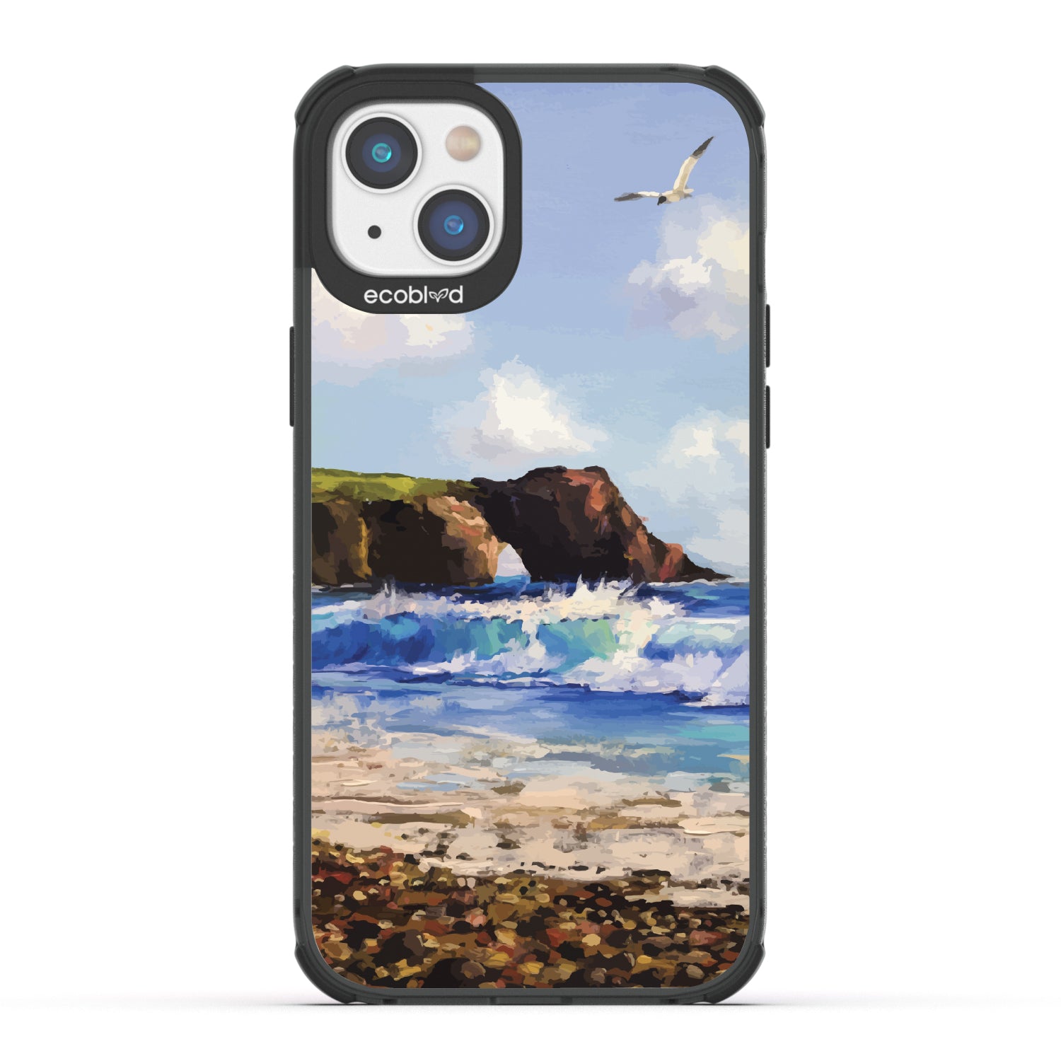 The calm before…. The Cliffhanger design on our Laguna clear iPhone 14 Plus case holds a moment of painted suspense—brushed cliffs, churning tides, and a palette that builds to the brink. A story captured at its turning point.