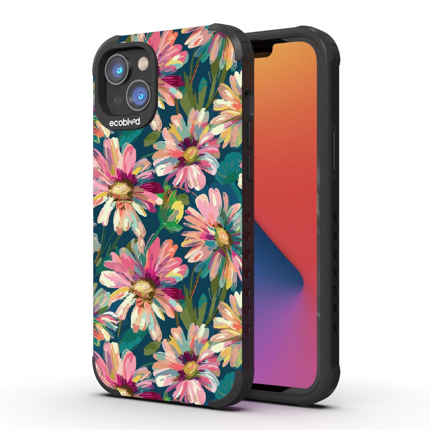 Just before dark, everything glows. The Daisy Dusk design on our Mojave rugged and compostable iPhone 14 Plus case sets vibrant petals against a deep teal horizon, where warm florals bloom loudest in the final stretch of daylight. It’s a pause between boldness and calm—where dusk becomes its own kind of bloom.